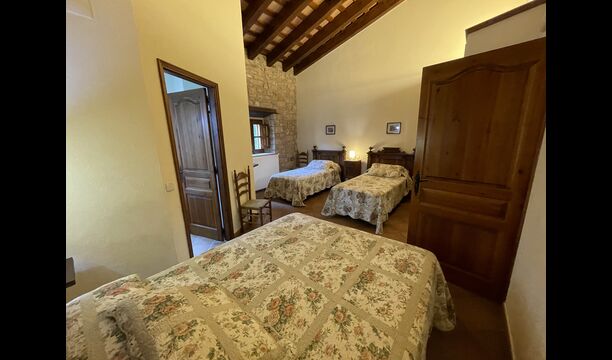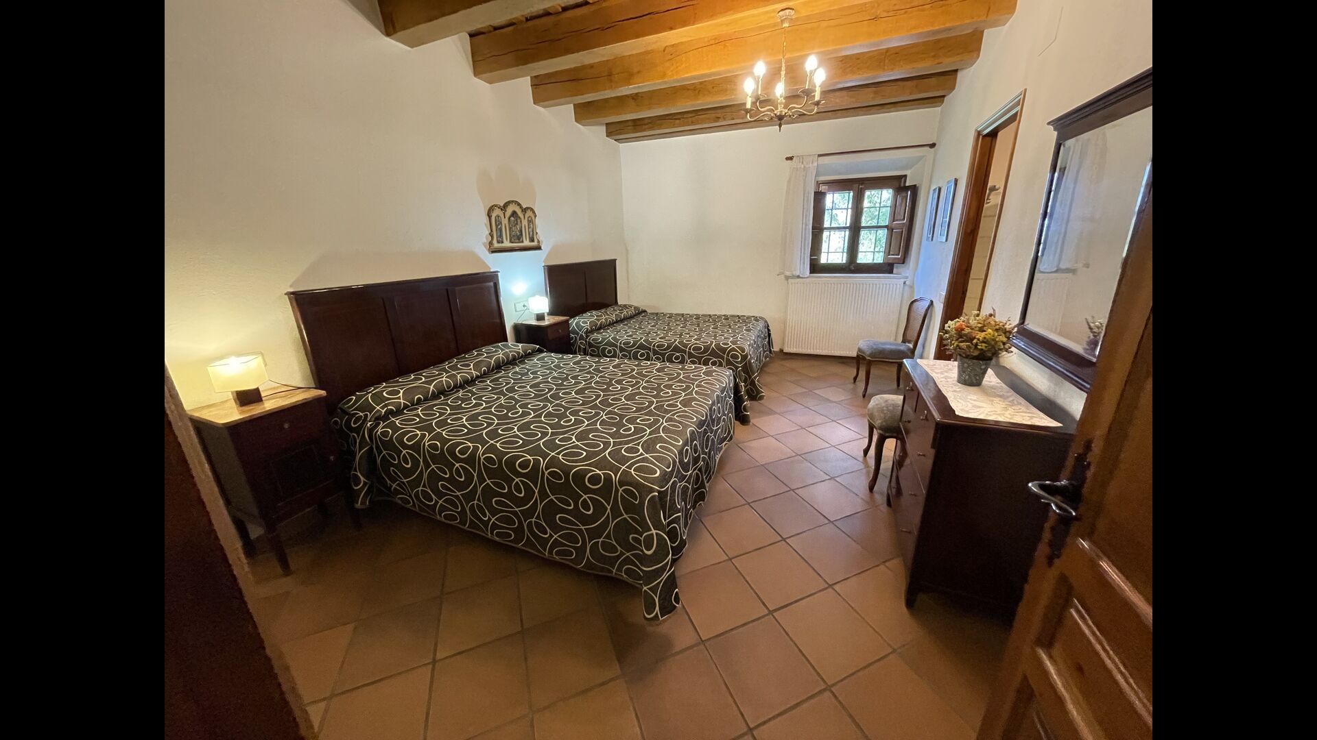Masia Tapire consists of three separate apartments: “Exida” with 5 bedrooms, “Truit” and “Mirador” both with three bedrooms. Each apartment has its own dining-room, kitchen and living-room. There are high ceilings in Masia Tapir - making you feel that you are in an old castle or mansion. The big beautiful dining rooms and living rooms, all furnished with respect for the traditional architecture. Masia Tapir has no less than 12 rooms and can accommodate 25 guests +6. There are 12 bathrooms, nine of which are ensuite. The rooms are decorated in beautiful traditional Catalan style and the bathrooms are large.