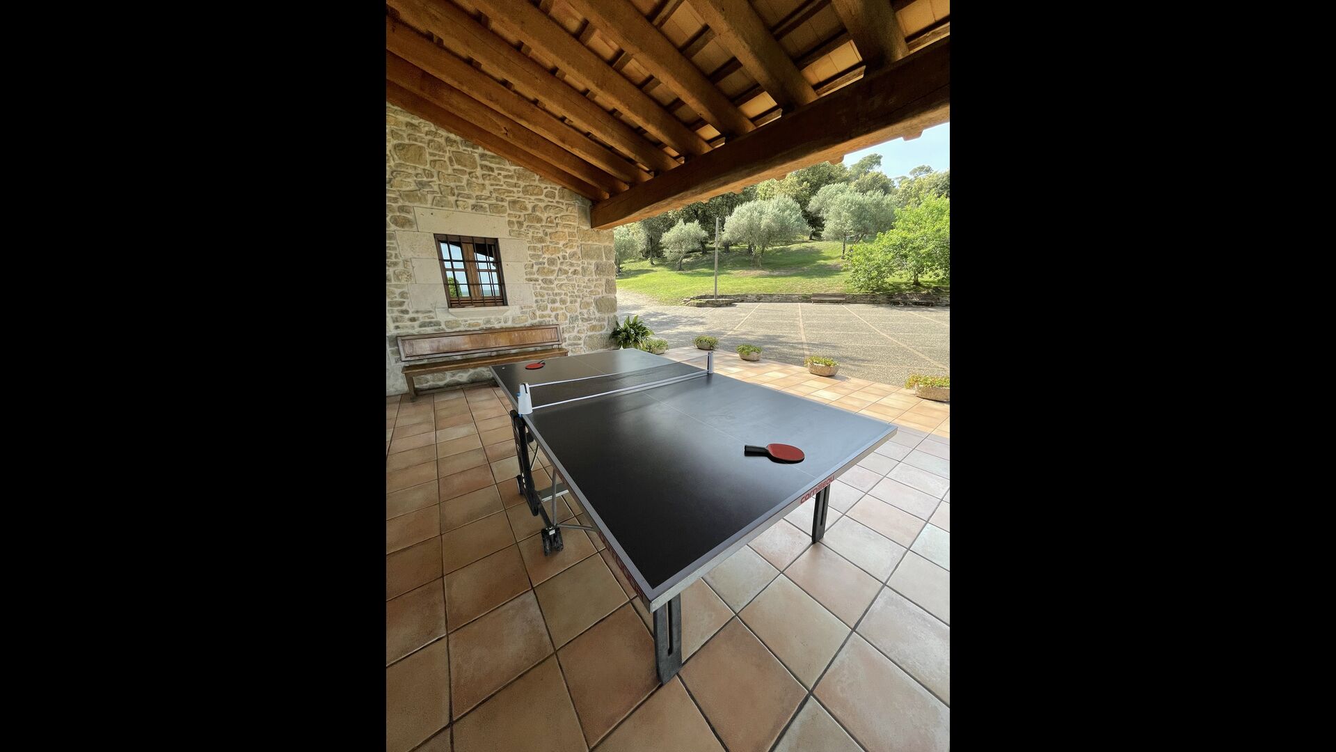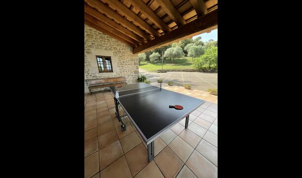From this part of the house, you can enter another very cosy terrace area with olive trees and a very nice view. There is also a barbecue. The house has plenty of activities for instance there is a football field, table tennis and WiFi-intenet.