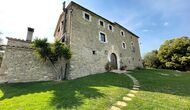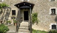 The main building has three connected parts. The first part has a cosy court yard with flowers and a terrace table and chairs. From the small hall you enter a common room with a fireplace in one corner and kitchen with many antique details for instance the stone sink and antique fridge still functioning, and modern comforts, for instance dishwasher and microwave. The entire house is of high standard but very historical and authentic.