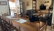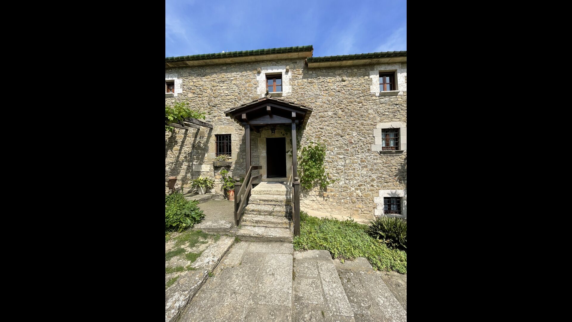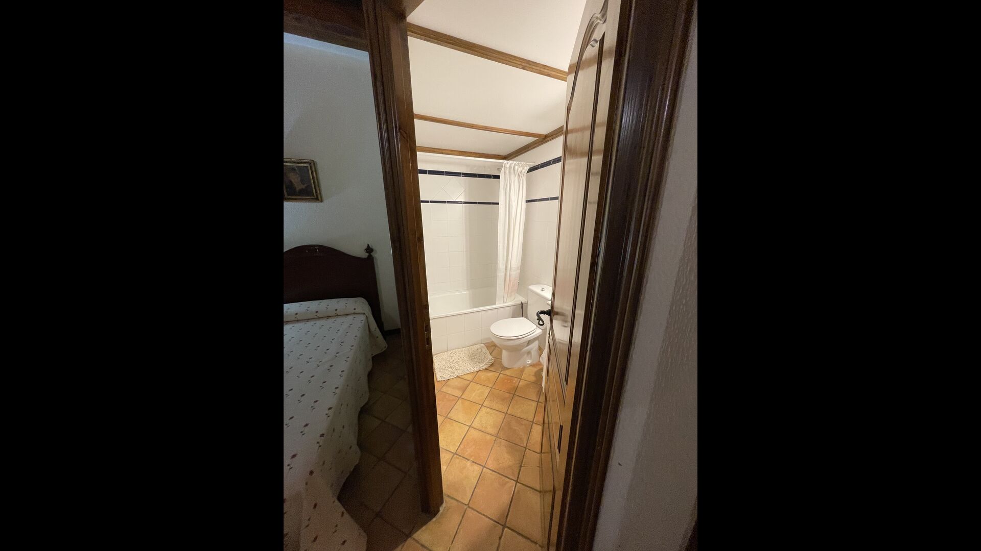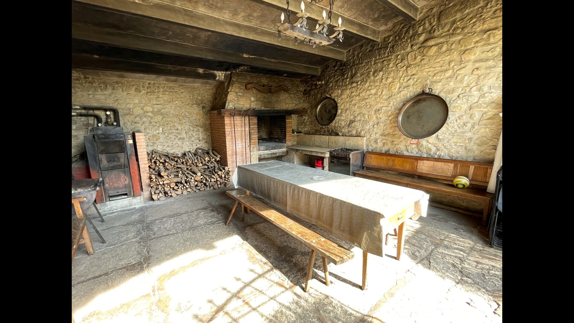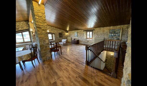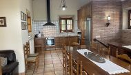 You have access to the Masover-building directly from the terrace to a big common room with dining area with a big dining table, open kitchen with hotplates, oven, microwave, dishwasher, fridge and freezer. Then there is a sitting room with TV and fireplace, and there is a toilet to be used upstairs and from the terrace.