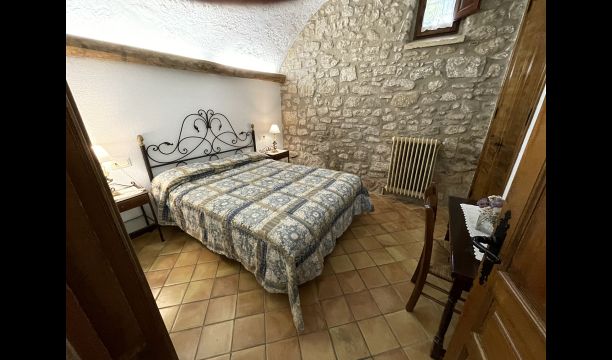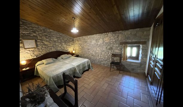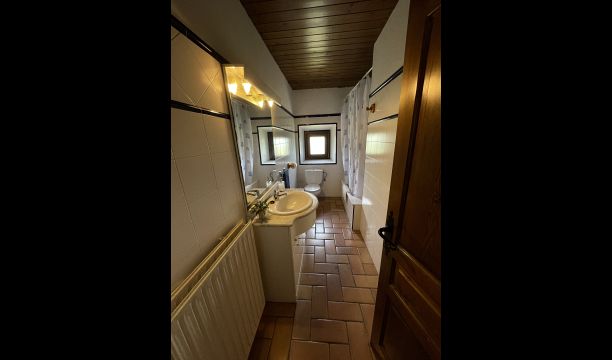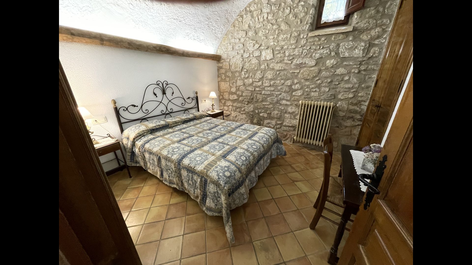 From the kitchen, you have access to a big dining room, and from here three steps up, you find three double rooms, one with many authentic details and double bed, one with two single beds and finally one with double bed and a balcony with a fantastic view. There is one bathroom. In the other direction from the dining room, there is a living room with a toilet and also an extra fridge with freezer. Additionally there is access to a very big double room with two double beds and a bathroom ensuite, another double room with bathroom and third double room with double bed.