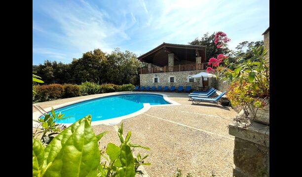 The whole property includes 15.000 m2 so you have a very high level of privacy. The house is surrounded by olive- and fruit trees, there are a lot of cosy retreats for relaxation either in the sun and the shadow, as one prefer, and the pool and terrace area is perfect for gathering even very big groups to eat together or relax.