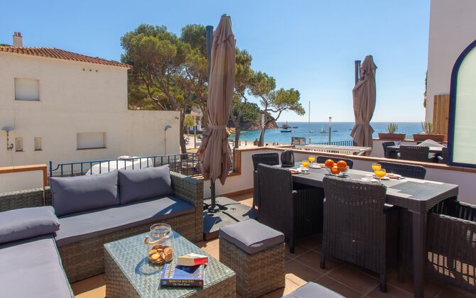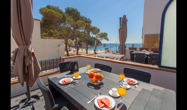 As the photos shows, this apartments has the most lovely and very big terrace with direct sea view. And if you fancy a swim in the morning before the beach is getting more crowded, you can almost jump right into the water, as the beach is only 1 minutes walk away. In addition, you will stay right in the middle of the cosy Tamariu village, which is one of the “white villages of Costa Brava”, where you still find the authentic atmosphere of a “fisherman's village”.