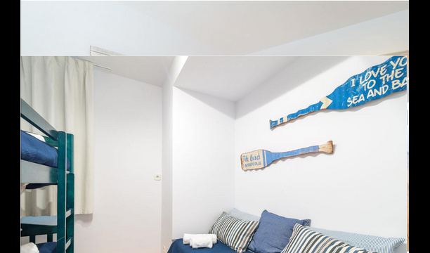 The apartment itself is nicely decorated and has a large master bedroom and then a second bedroom with a bunk bed and a sofa bed, making it possible to stay 4-5 persons in the apartment. It has nice bathroom as well with bath tub.