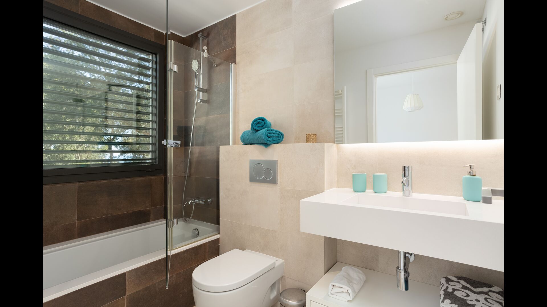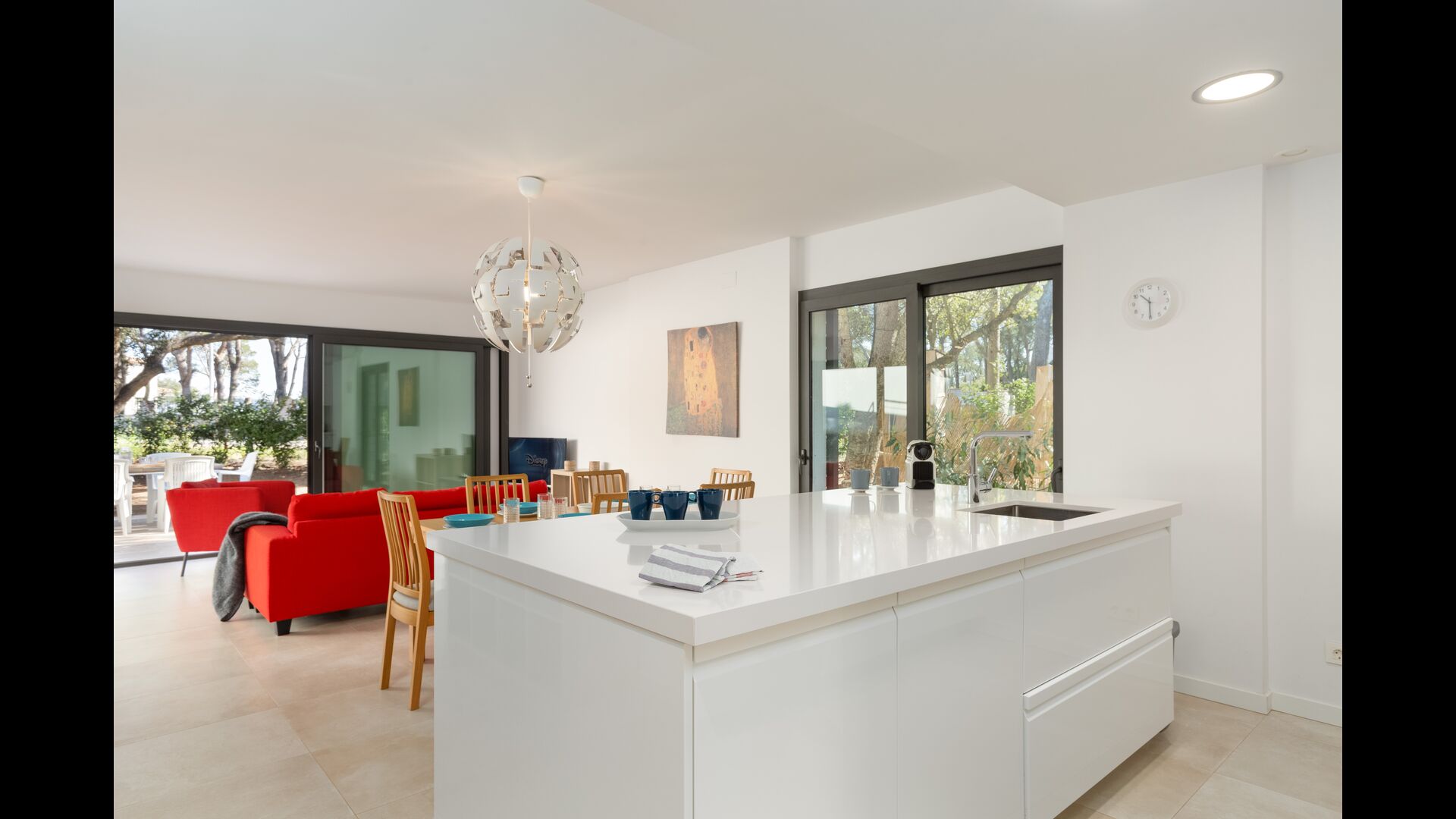 Bresal-moderna is a high standard single-family house designed in contemporary style. The house is distributed on two levels. We enter through the main floor where a hall has a direct access to a bright fully equipped american style kitchen, beautiful dining room and a spacious living room from where there is an exit to a pleasant terrace and a garden area where you can enjoy the tranquility of the Costa Brava. On this same floor we also find a double room with a private bathroom with shower, courtesy toilet and laundry area.