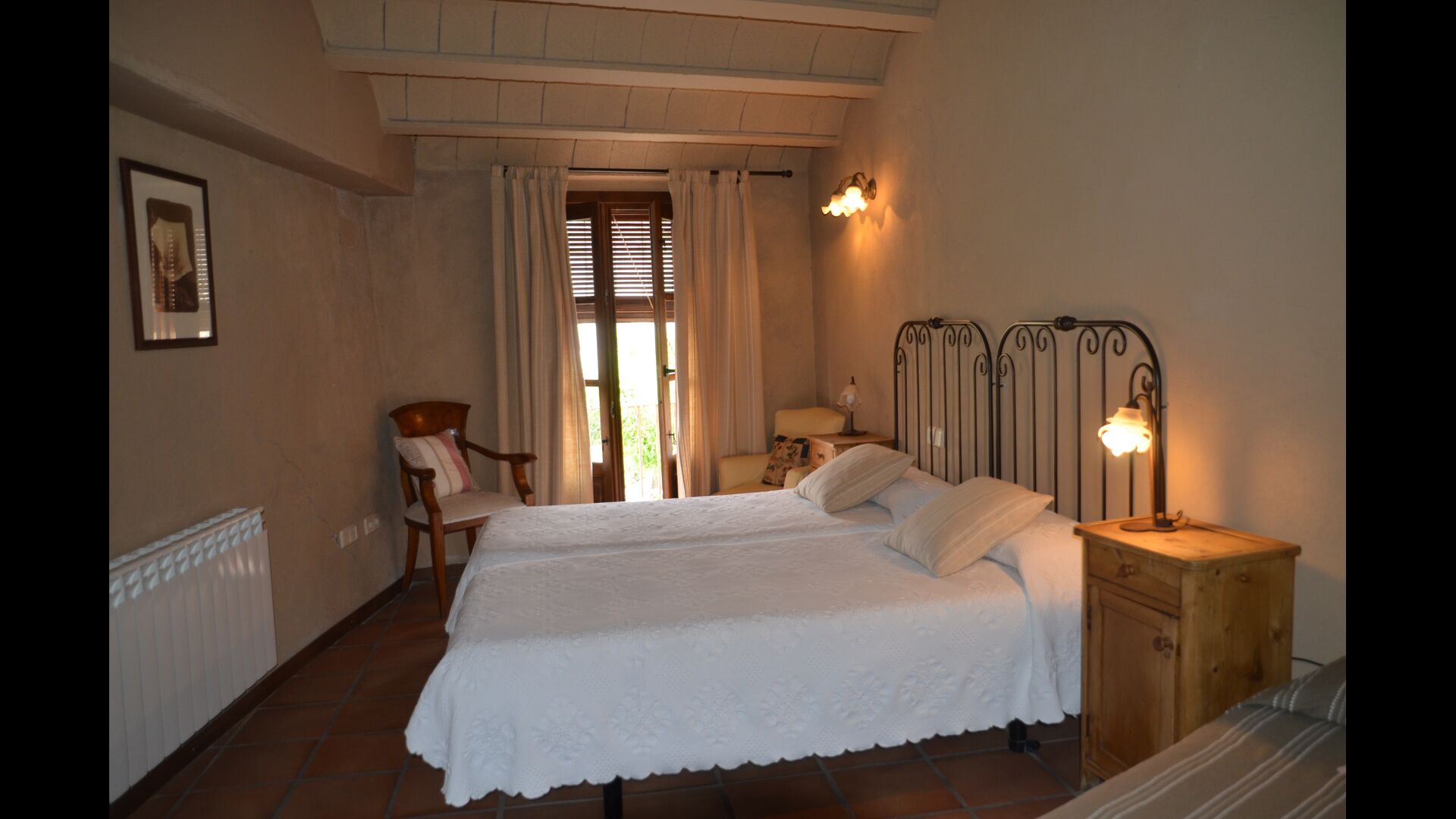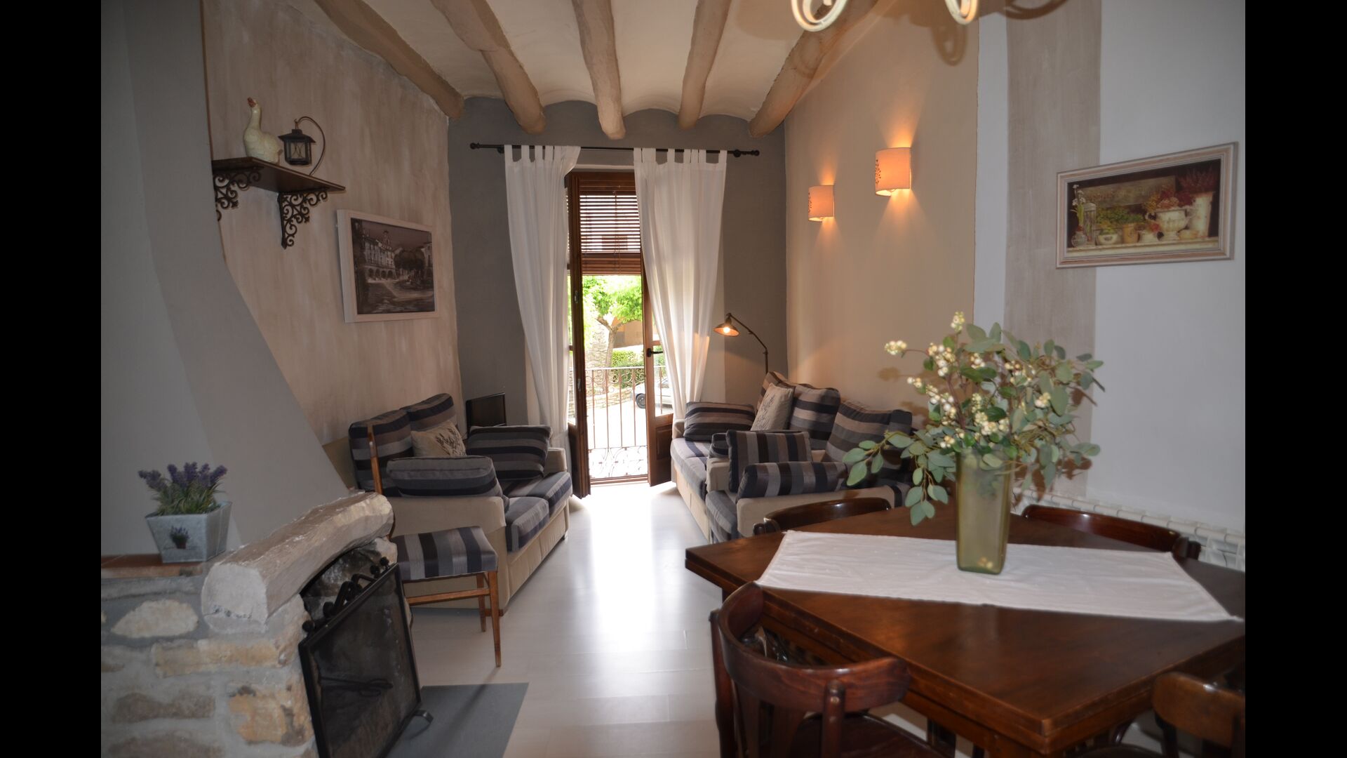 Los Arcos de Lacuna-Espignol is an apartment for 6+3 persons. It is a two-floor duplex apartment with two nice double rooms (1 with space for an extra bed) and then a third double room with a loft, ideal for children (sleeping 2+2 persons). There 3 bathrooms in the apartment. The apartment has a well-equipped kitchen, a dining area and sofa corner with TV and fireplace. If you would like to dine outside, you can use the shared roof terrace with a fantastic view. WIFI is available in the shared area in the ground floor.