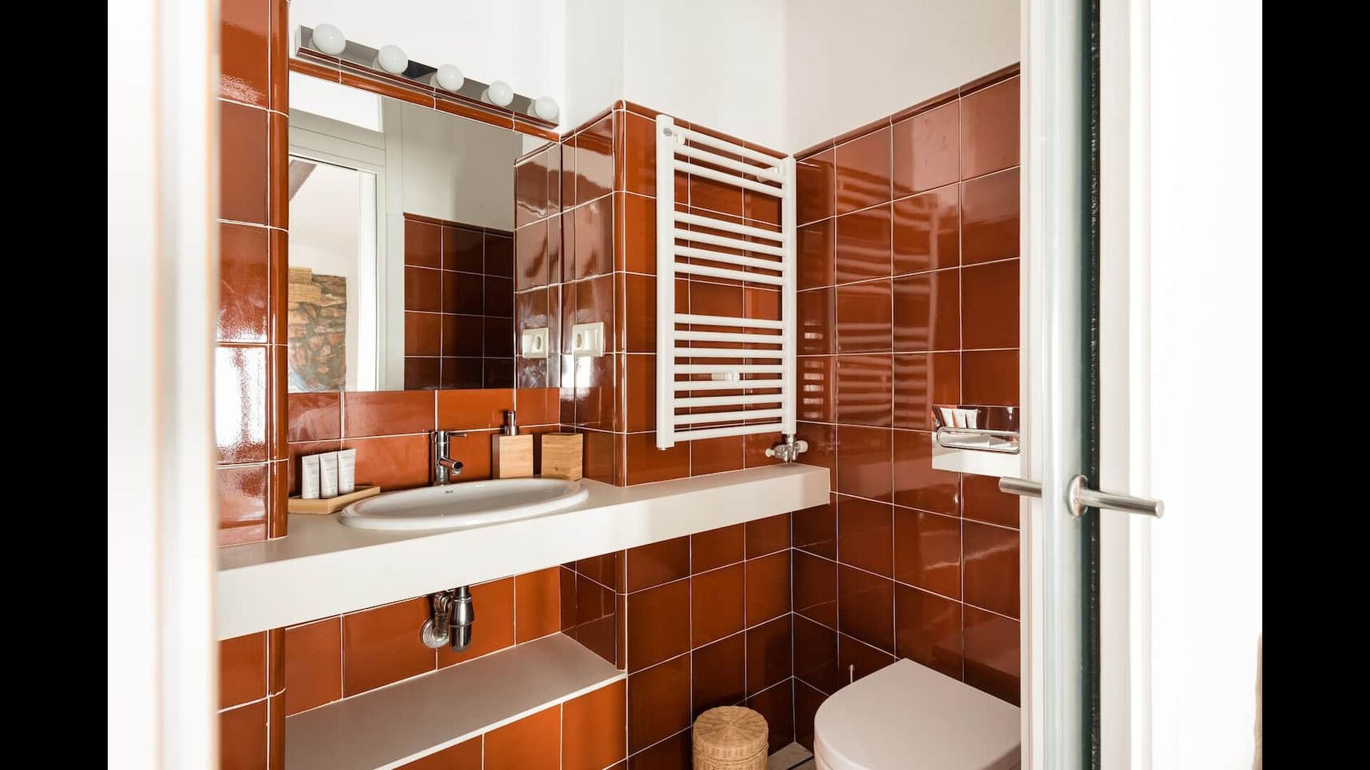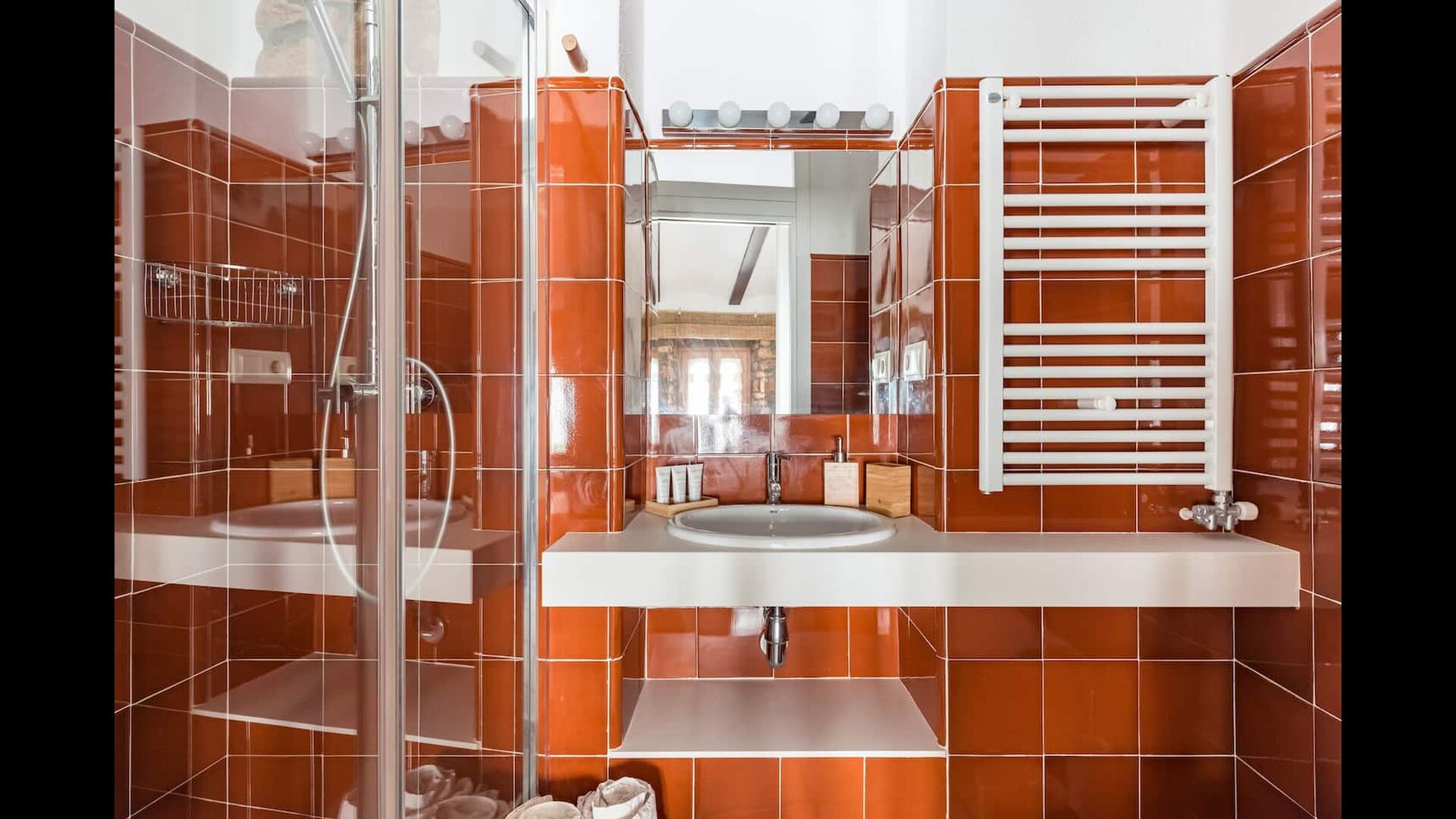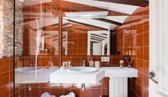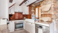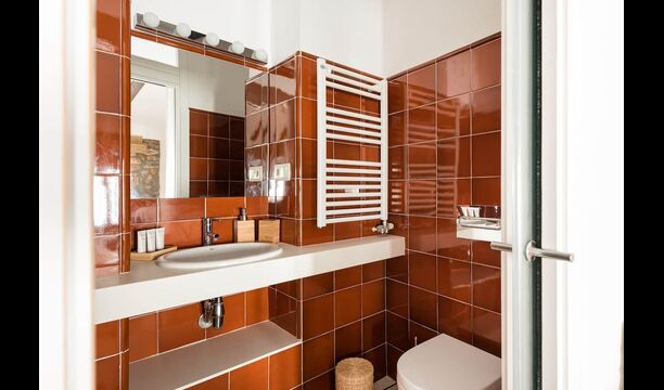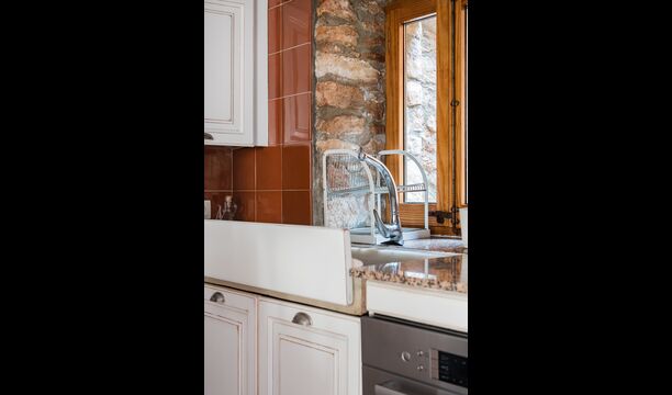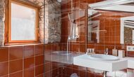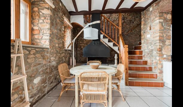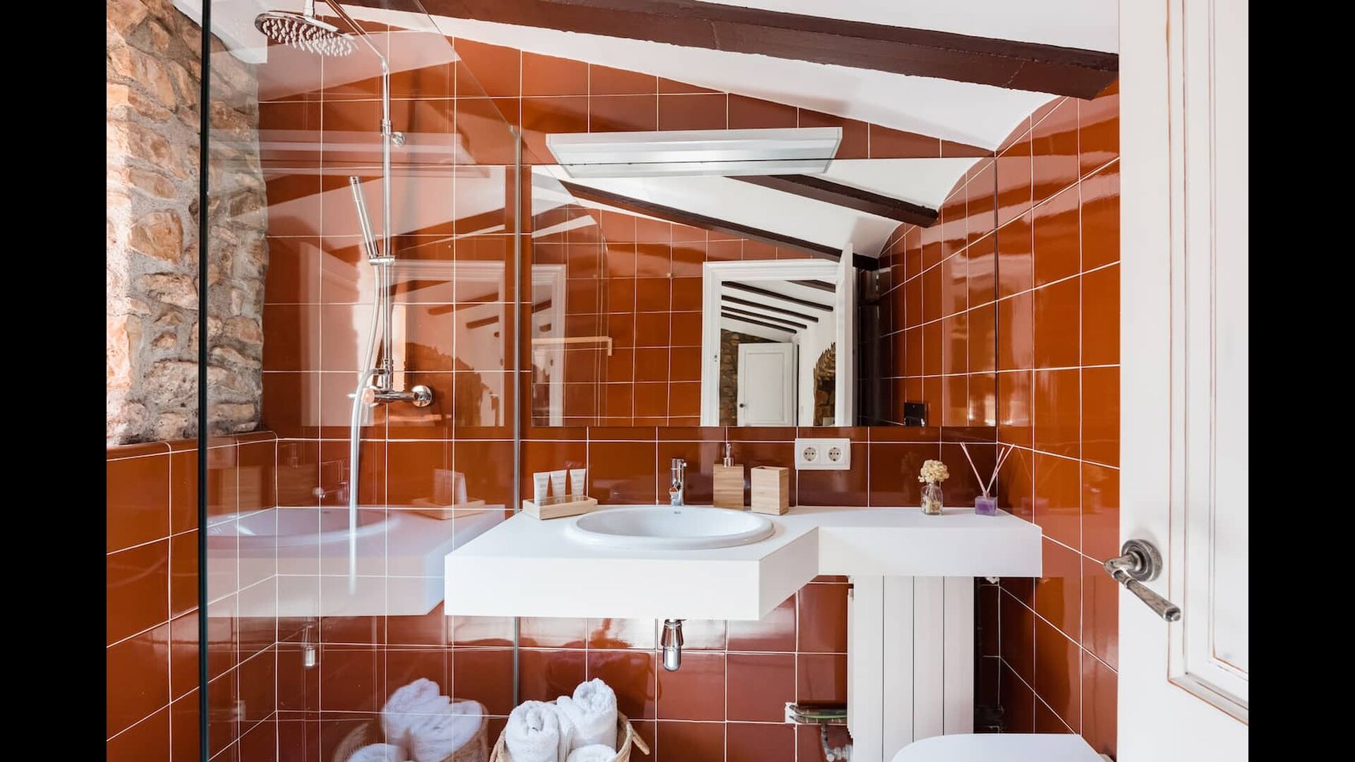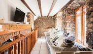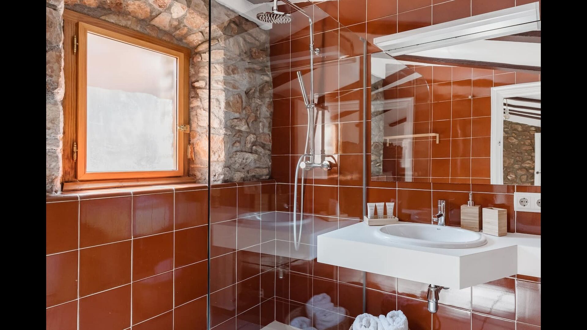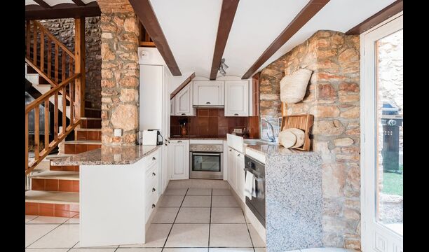 The apartment's walls are built entirely out of stone. On the ground floor is the living room with an open kitchen. From the ground floor, there are doors that lead out onto the apartment's patio. You will also find a small lavatory, and a mezzanine refurbished as a TV room. Upstairs, on the upper floor, there are two double bedrooms; one with a double bed, and another with 1 bunk bed. Both rooms possess their own ensuite bathrooms. Less than 100 meters from the apartment is a parking area for your car.