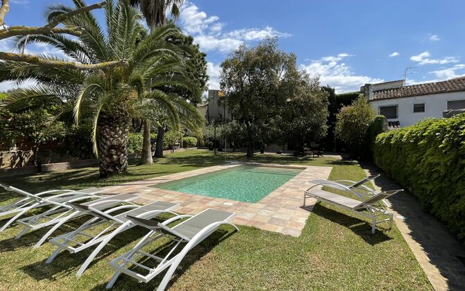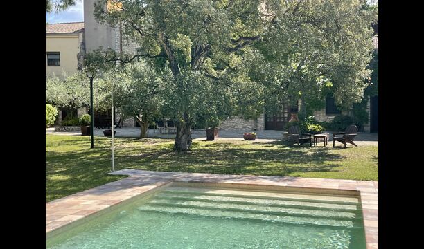 Stay in this beautiful and historical mansion with its big private garden with swimming pool. From the village street, you enter the big hall and on the other side, you will find the surprisingly peaceful garden with terrace en direct connection with the kitchen, the swimming pool and a lot of shady corners provided by the palms and other trees.