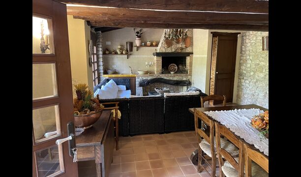 The ground floor has a big living room with TV, then the well-equipped kitchen and then a very large dining room with the terrace just outside, so you can eat in our out as you prefer. There is also a toilet.O