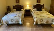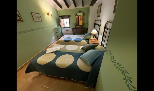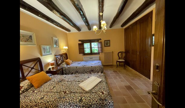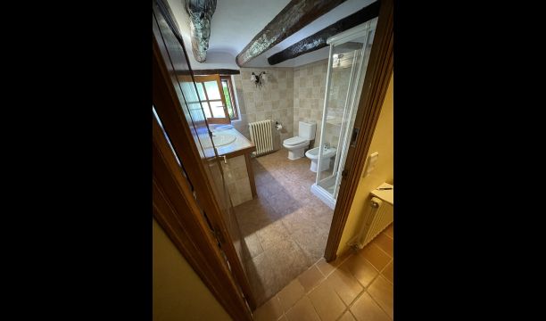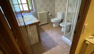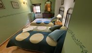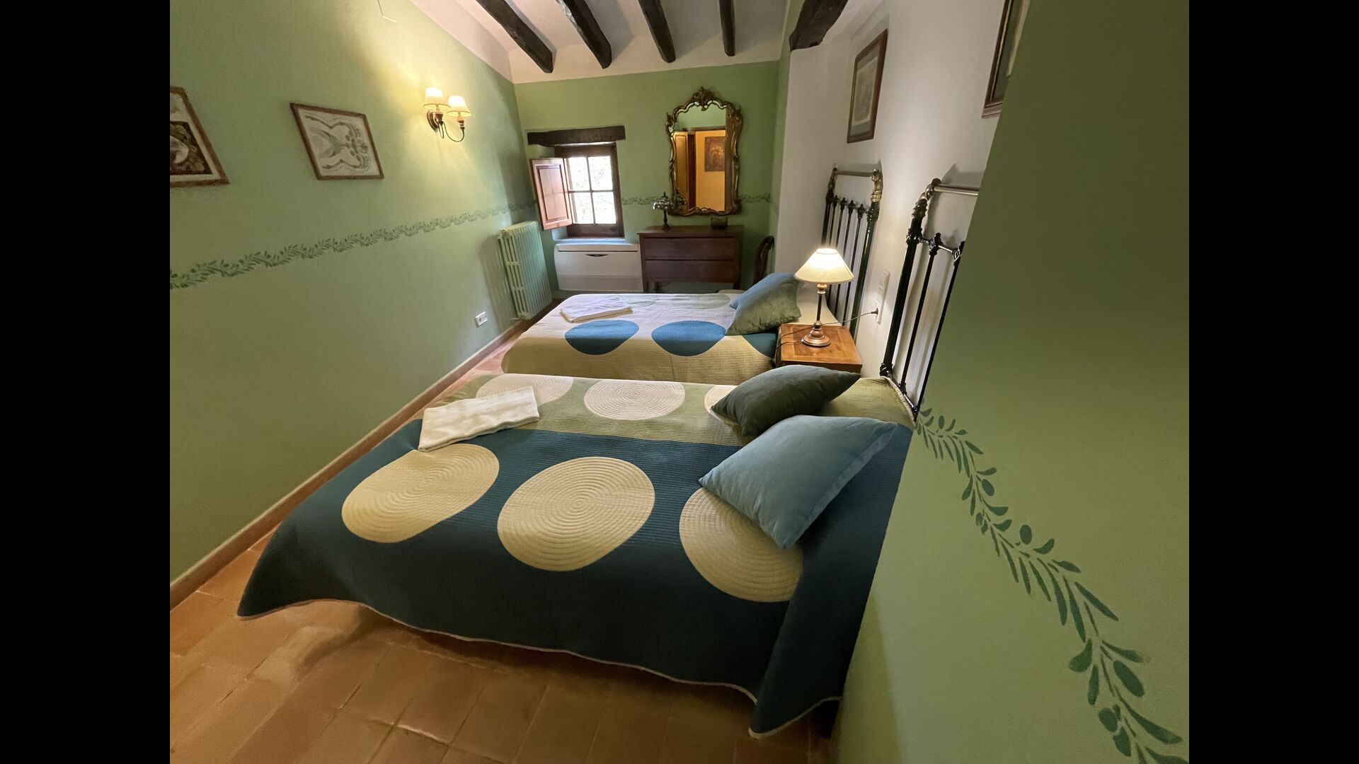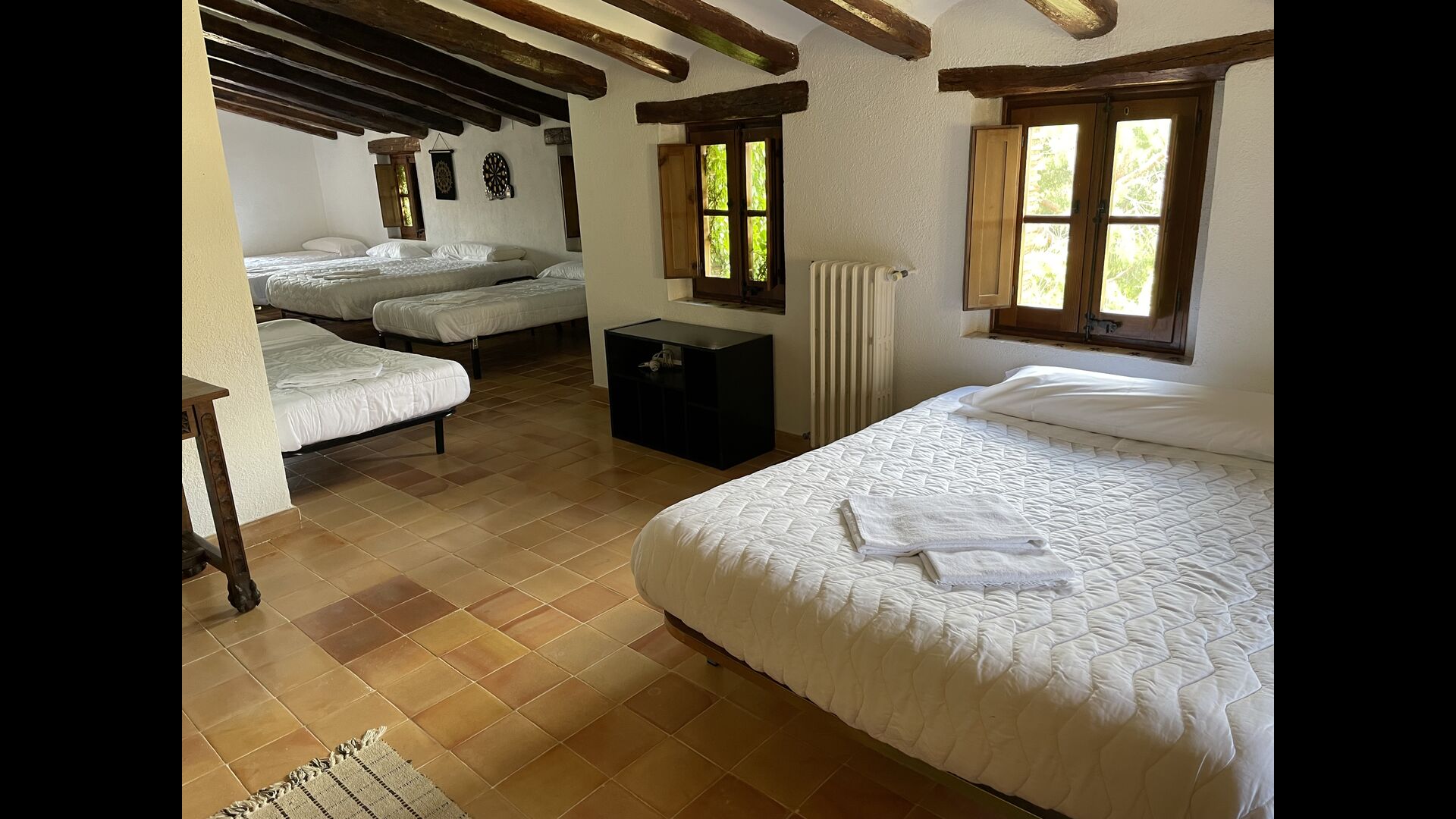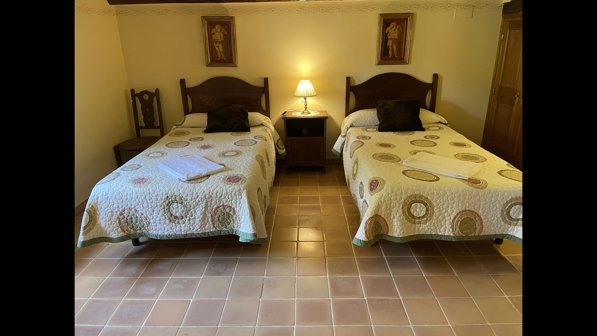On the first floor, you find a double room with two single beds (and room for one extra bed) and another bedroom with a double bed. There is a shared bathroom with shower between the two rooms.