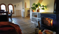 The 1. floor: The apartment on the first floor has two double bedrooms, one with bath, a single room, a separate bathroom, a fireplace room and exit to the balcony with the most beautiful view over the village, castle and the countryside. There is a kitchen with dining room and access to the garden by a staircase (and a slide for the smallest). All rooms are decorated in authentic style with beautiful tiles, where each room has its own pattern.