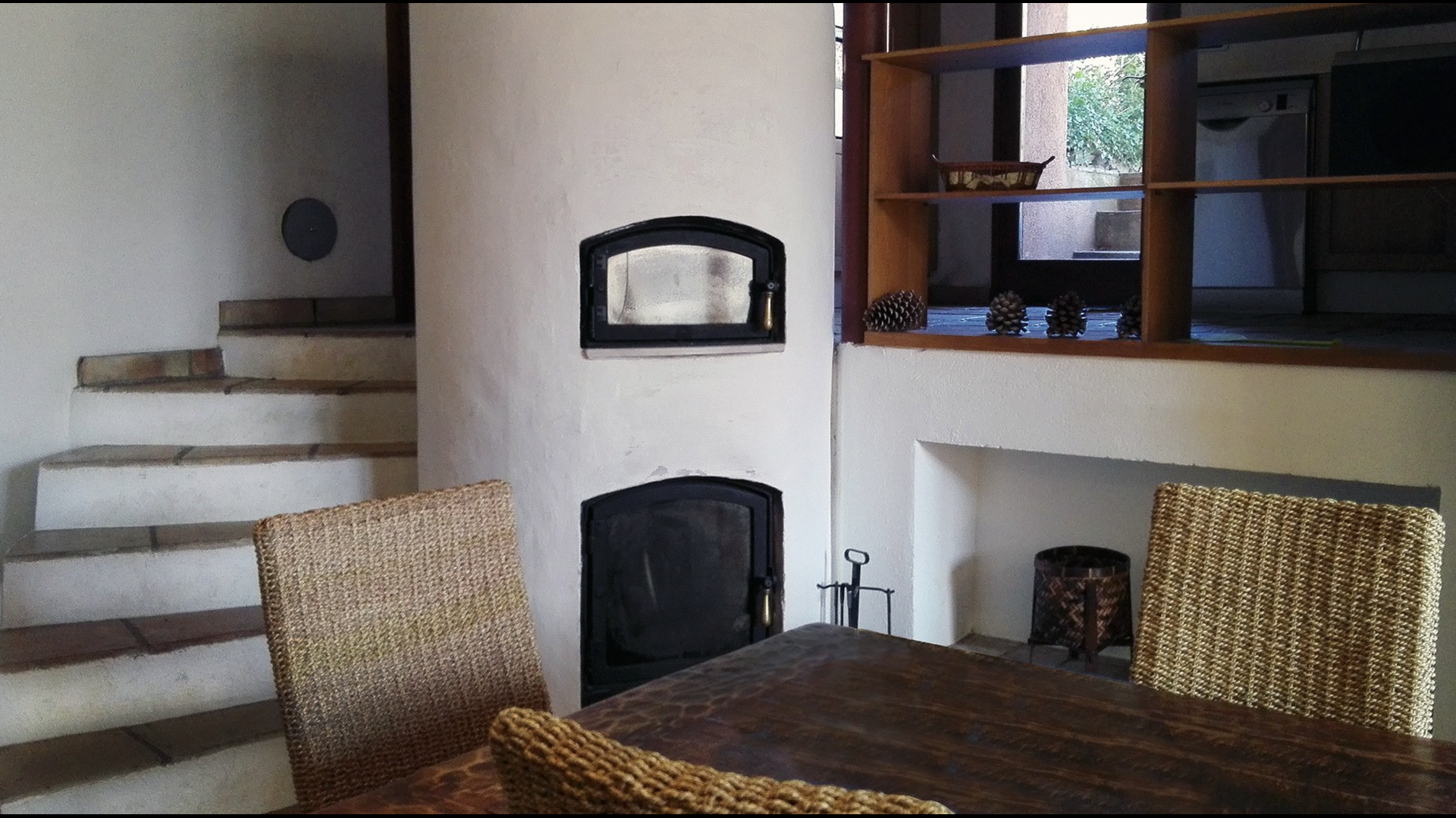 The Ground floor has two double bedrooms, a bathroom and a large dining room with seating for everyone. The house has a big oven for wood, which is built so it can heat the whole house in winter. There is also a modern and stylish open kitchen with direct access to the garden, so you can choose to eat outside.