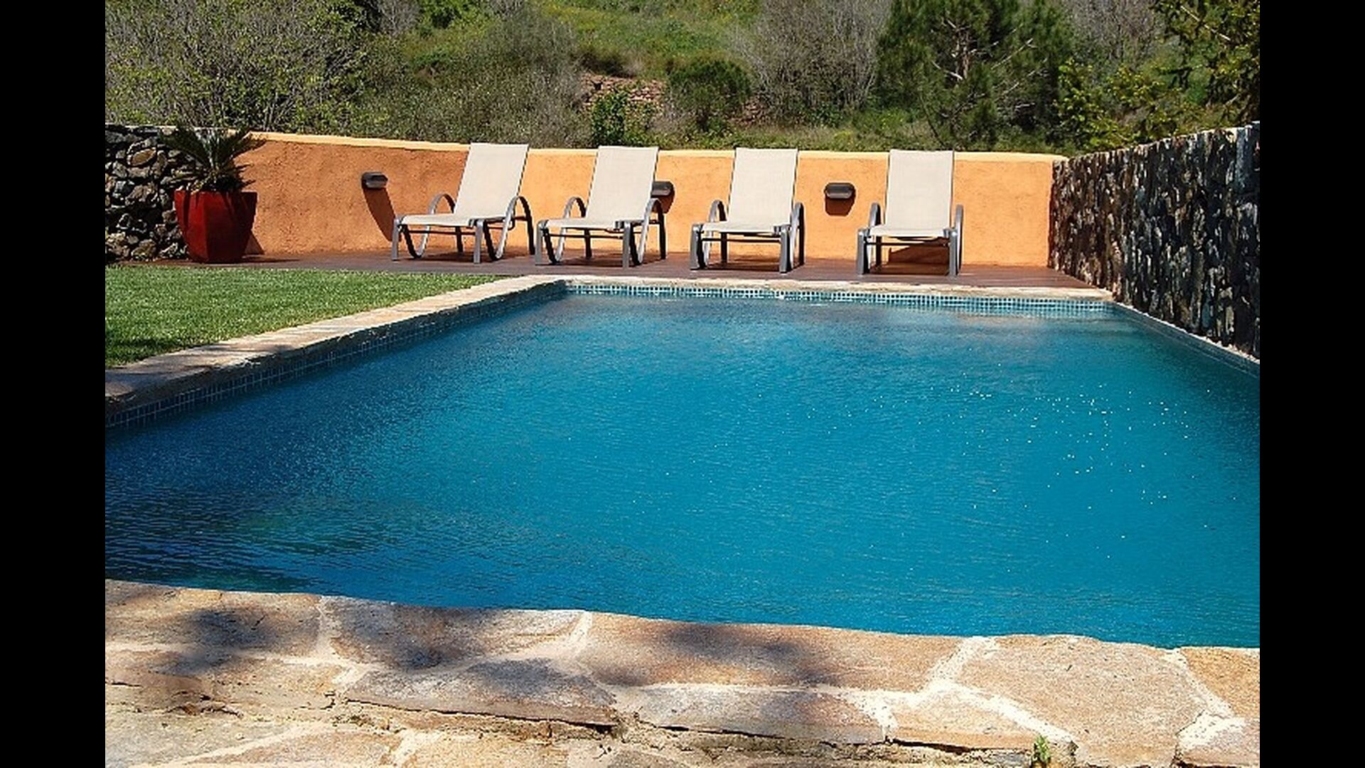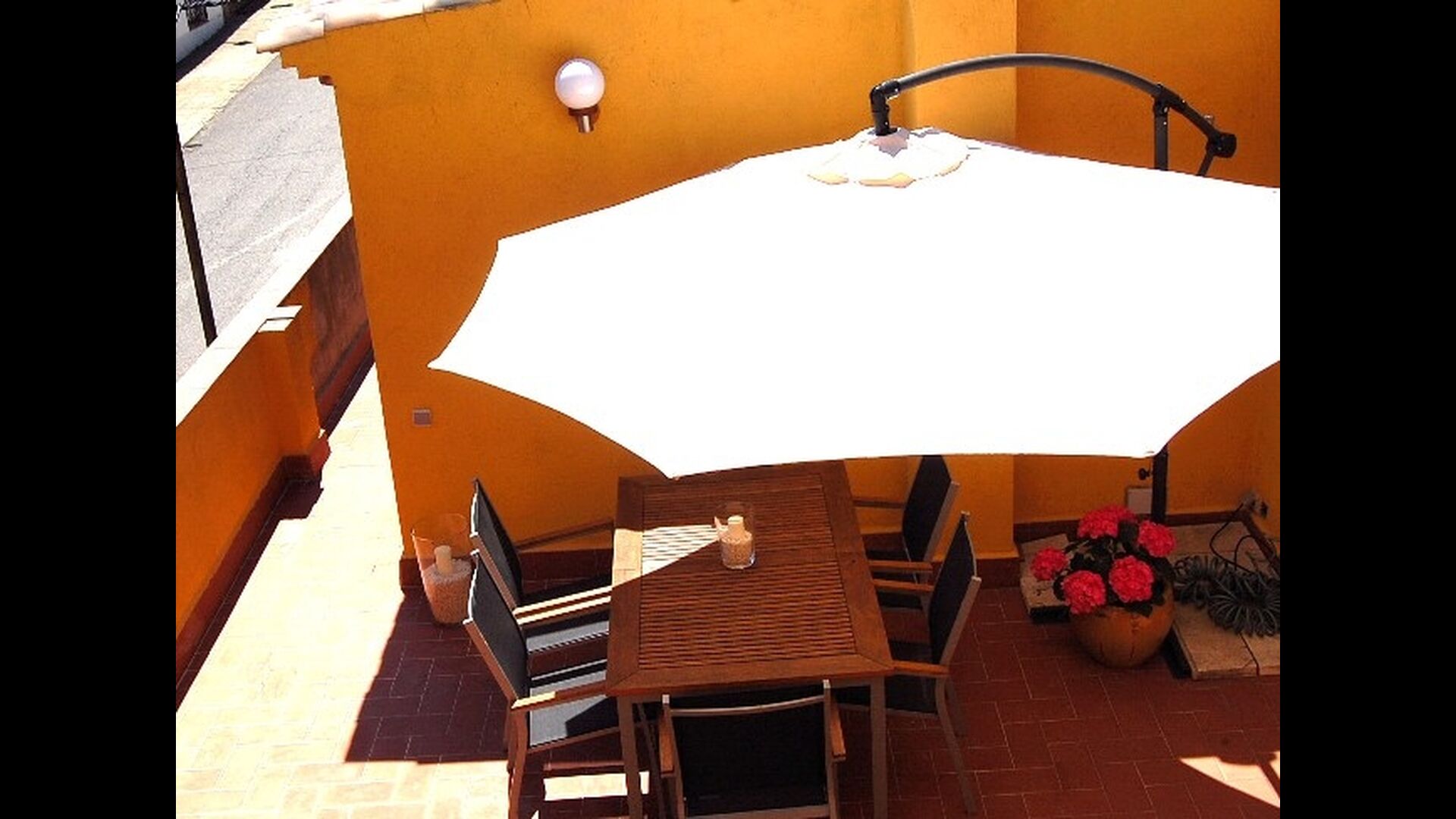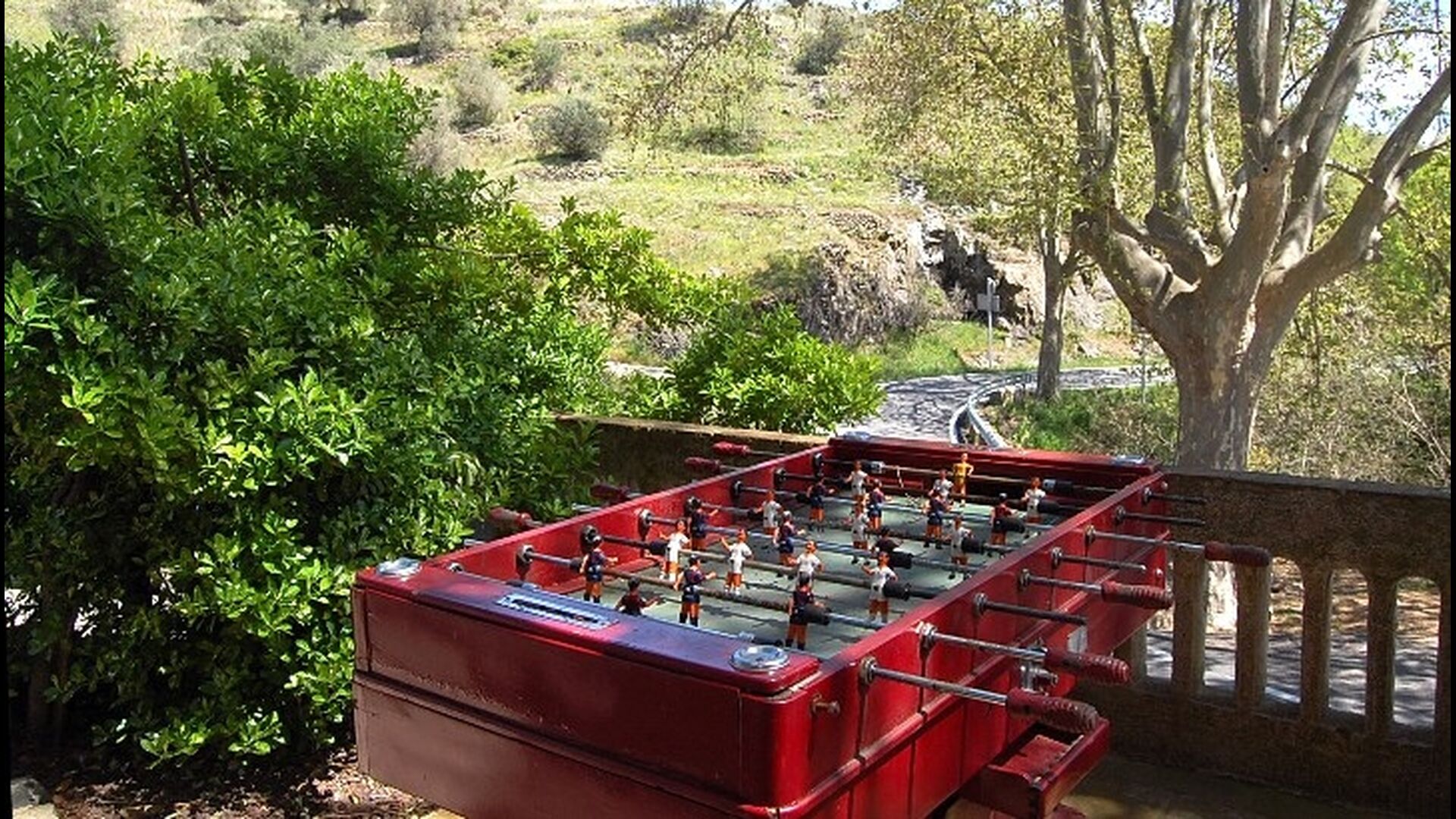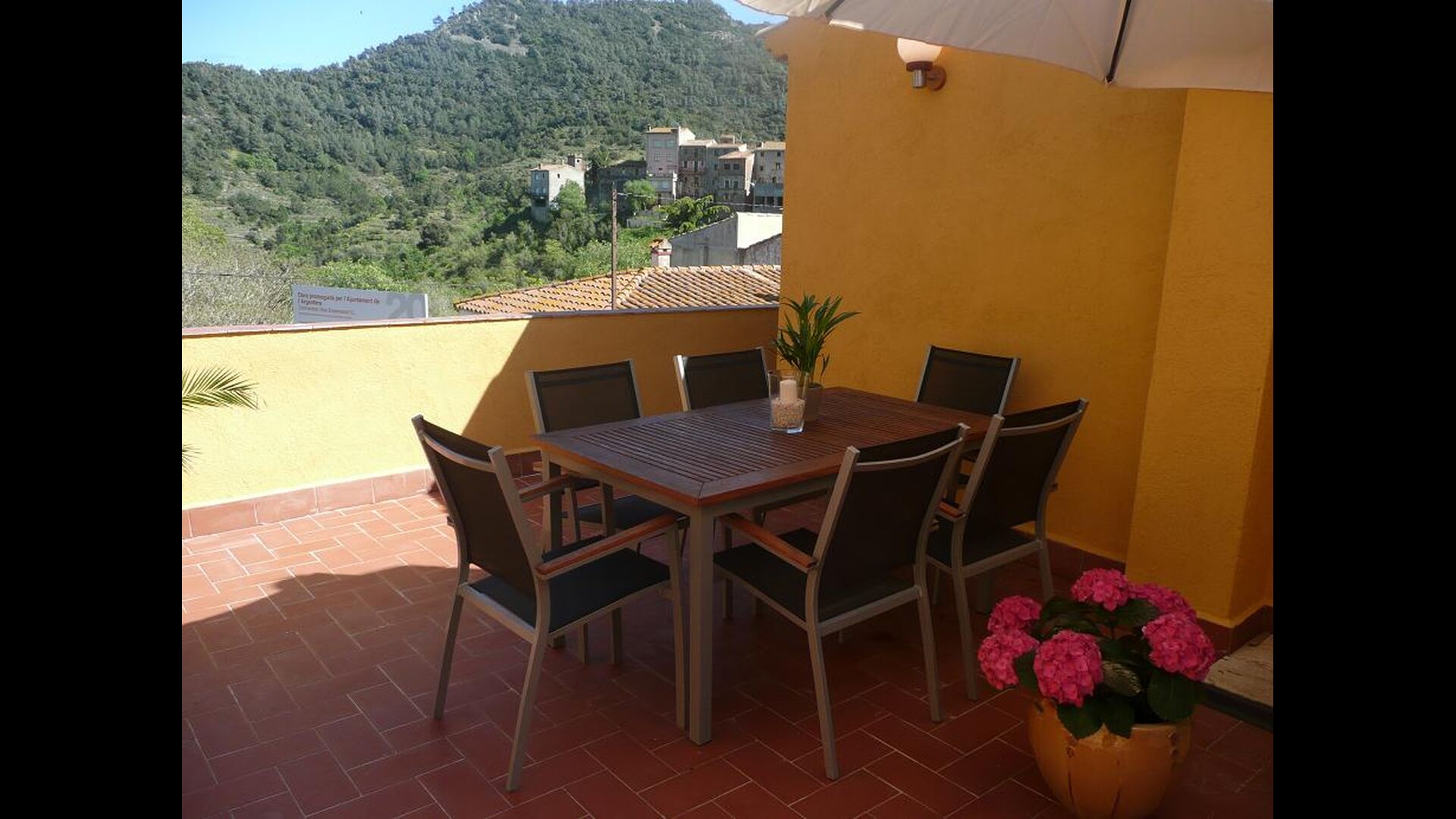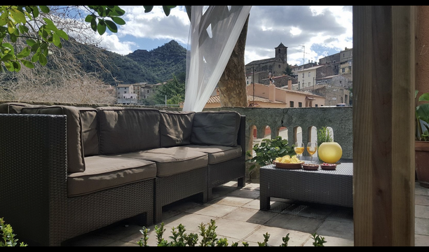 Although the house is a townhouse, it is situated as the last house in the village. Therefore, the house offers plenty of opportunities to spend the holidays outside in the beautiful Catalan summer. At the top of the house, you have the large roof terrace with patio furniture. On the levels between the ground floor and the first floor, there are two terraces, one in the sun and one in the shade with the option for outdoor eating, as well as a barbecue area. There are also a couple of pine trees which provide shade and where you can enjoy life in the hammock. For children there are swings and a slide. Below, there is the garden with a swimming pool where you can cool down and children can play. There is also a table football. The house has a WIFI-Internet connection available free of charge.