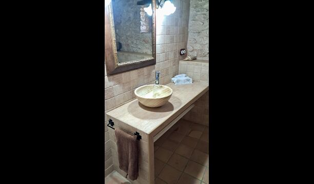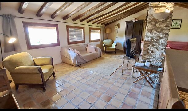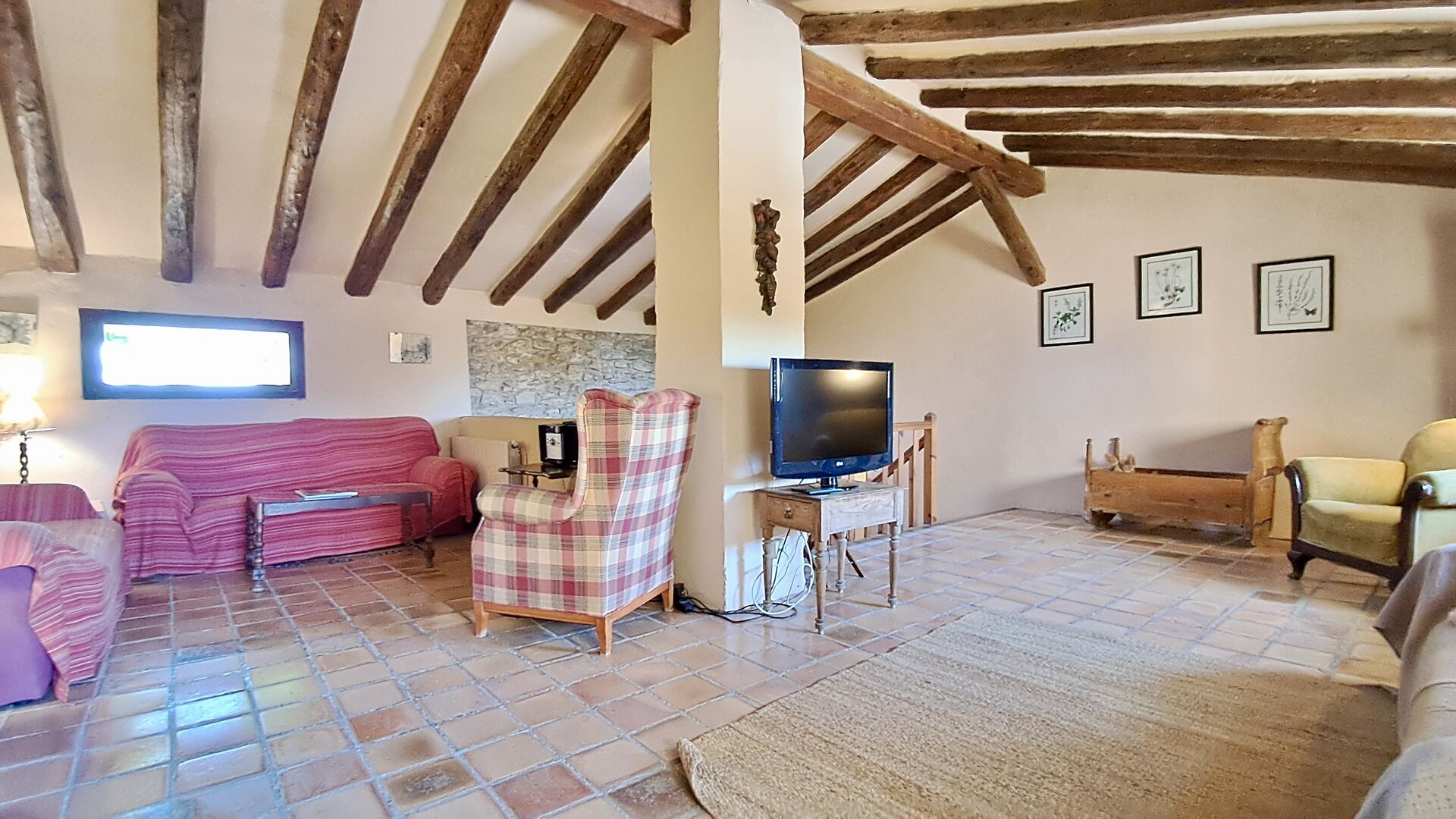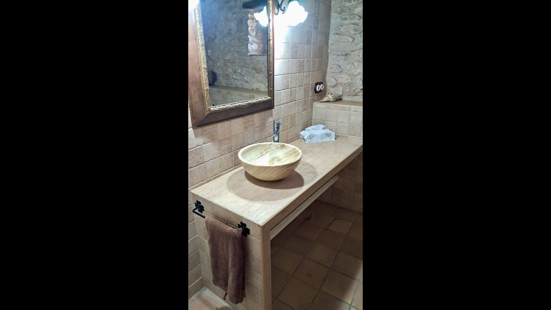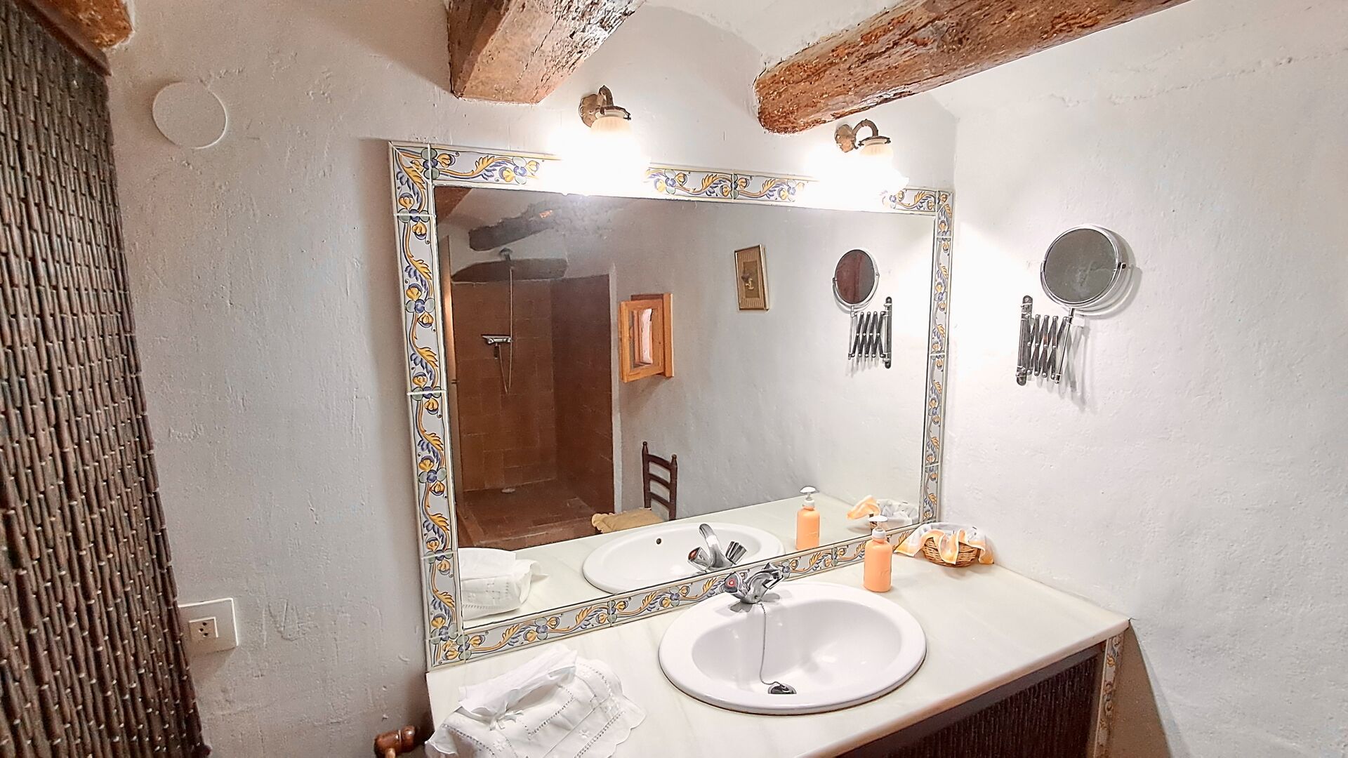 The house has an enclosed classic Catalan patio, with a few tables and there is also a large covered terrace with BBQ. That it is covered will be of great benefit on those hot summer days when a little shade is welcome. An older sink with beautiful tiles on the terrace is also preserved, which again creates a unique and authentic Catalan atmosphere. On the second floor is also another terrace and in the home there are a few French terraces.