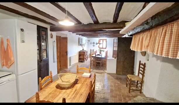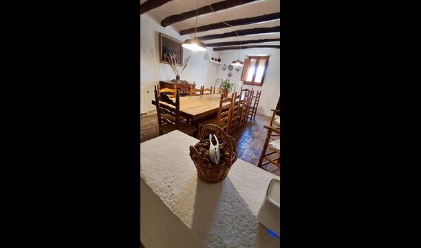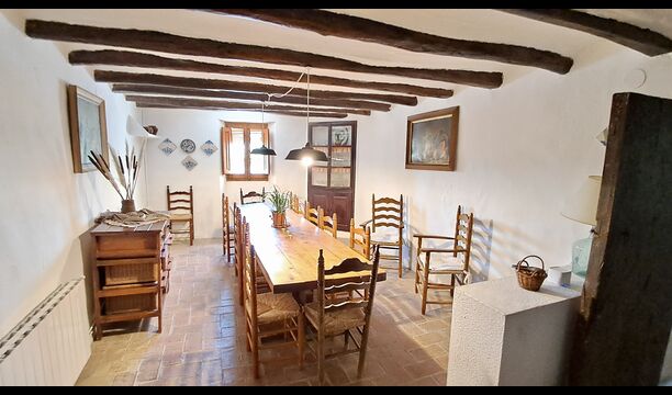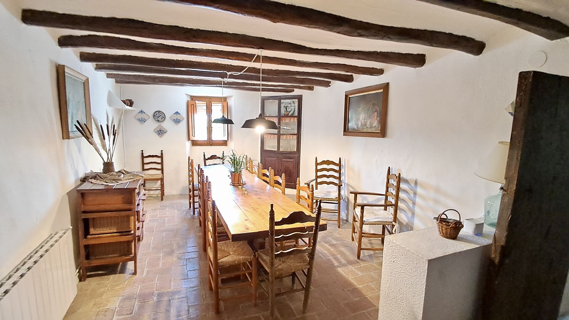 The kitchen is equipped with all modern amenities such as dishwasher, microwave, coffee maker, etc. The kitchen is again restored to the authentic style . The dining room is connected to the kitchen. Casa Mas del Pi has three floors and the kitchen is to be found on the ground floor so it's handy when you want to eat outdoors.