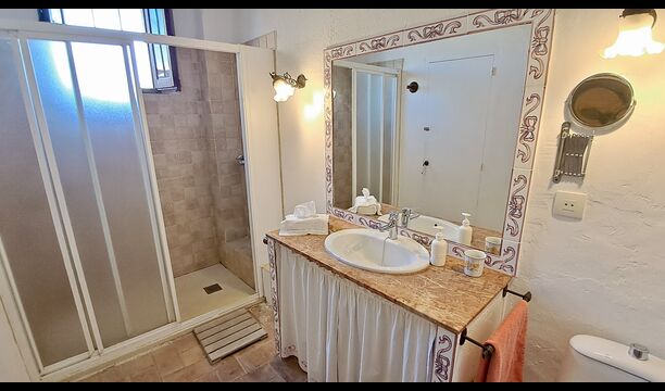 Casa del Pi has a spacious and traditional living room and 5 large bedrooms. All rooms are very unique and again here are every detail is taken care of. The size of the rooms is ideal when you are away as a large group because there is space and great atmosphere if you wish to pull back a little now and then. There are also 3 beautiful bathrooms and a guest toilet in the house.