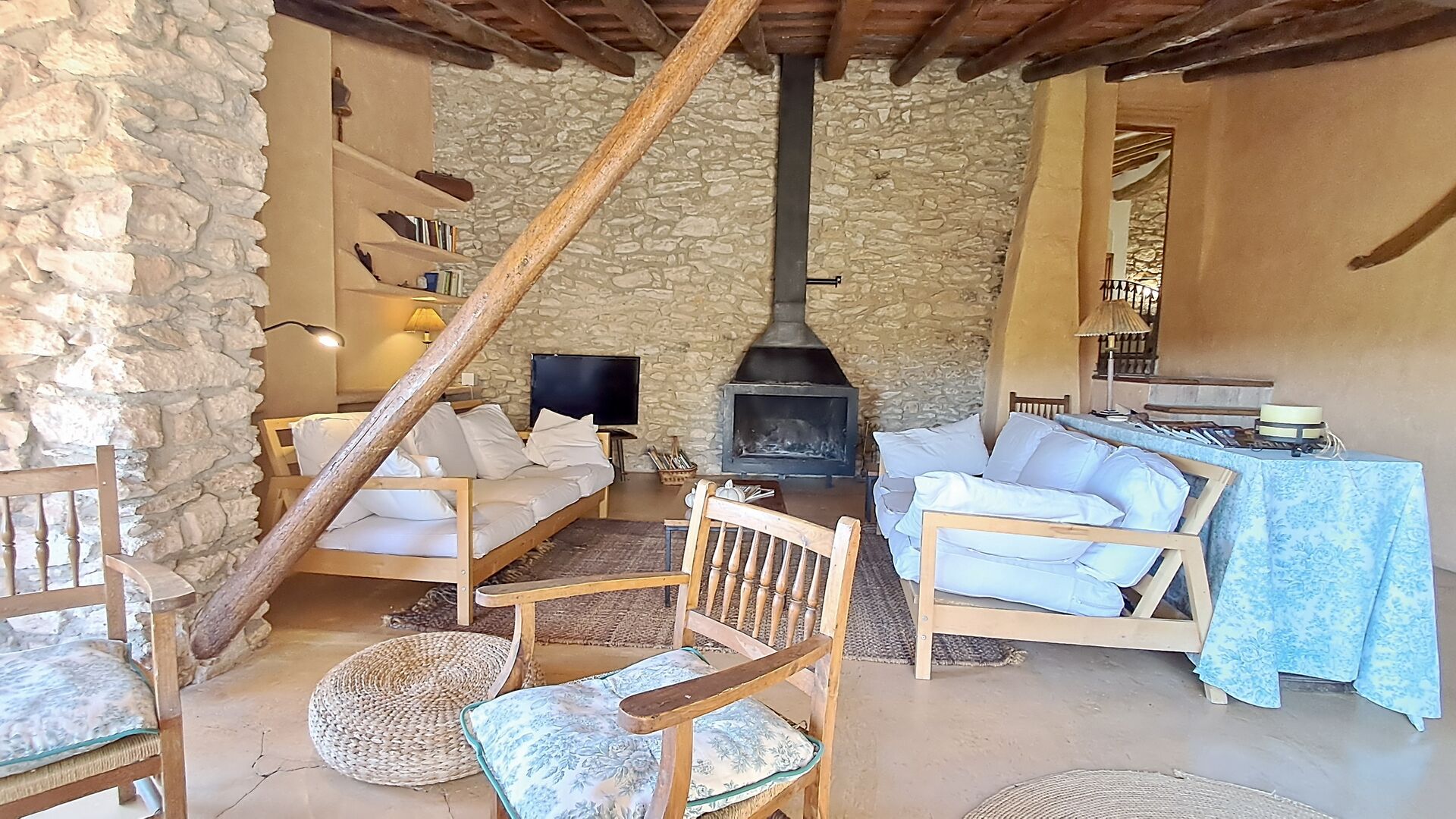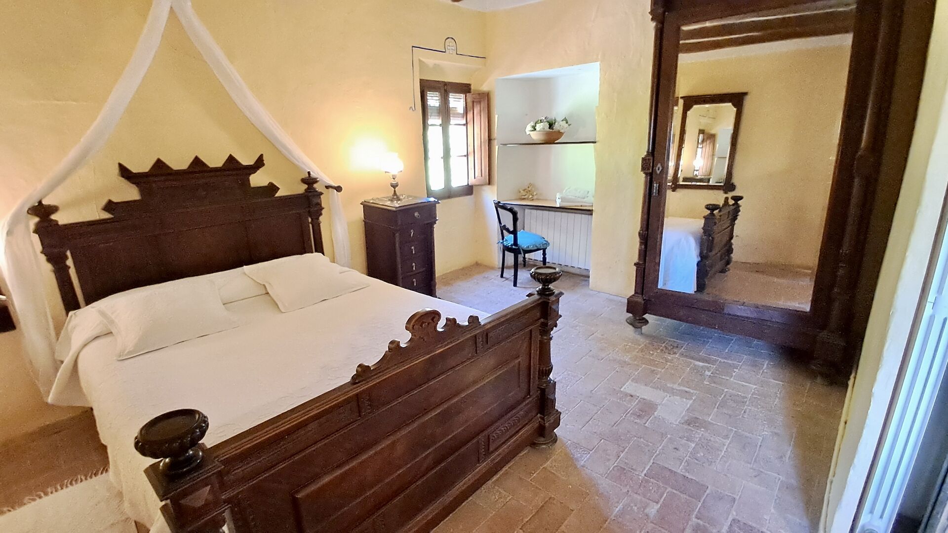 The house has a size of 300 m2 and is in many ways a comfortable place to spend your vacation. The furniture is of high quality and the ceilings are very high. Even though the house has been restored, the history still shines through, which is to sense during your stay. There are many small details and constructions such as ceiling beams. Across the street (no cars) from the front entrance, you find the spacious shared pool area with a big swimming pool of 10 x 4,5 meters, shady area and sun loungers.