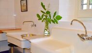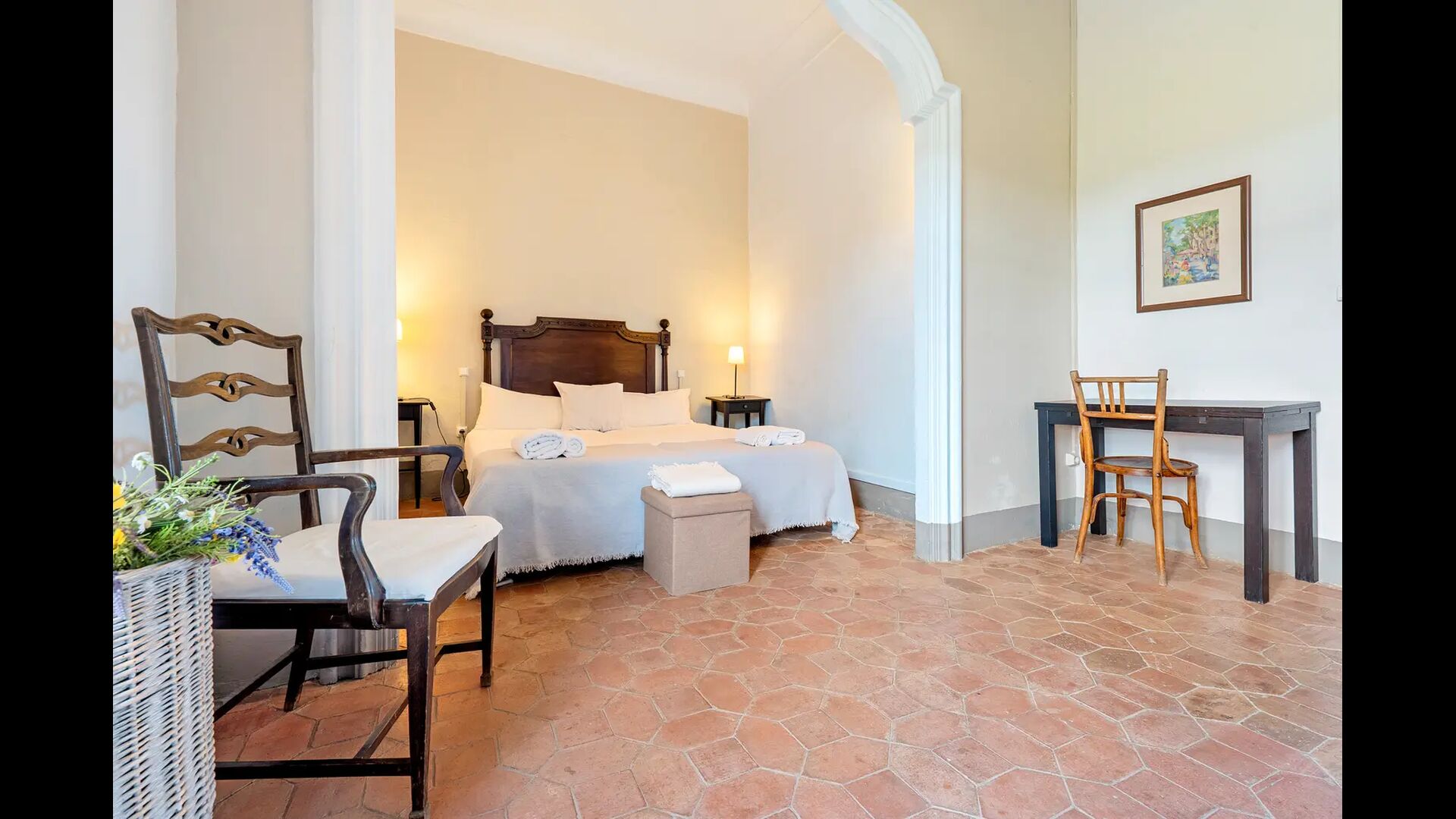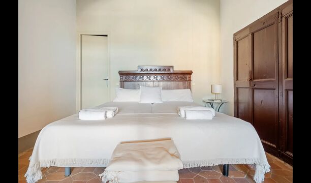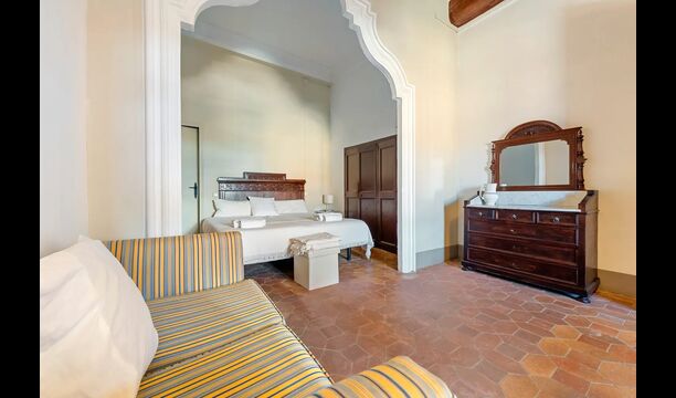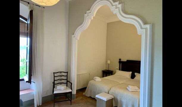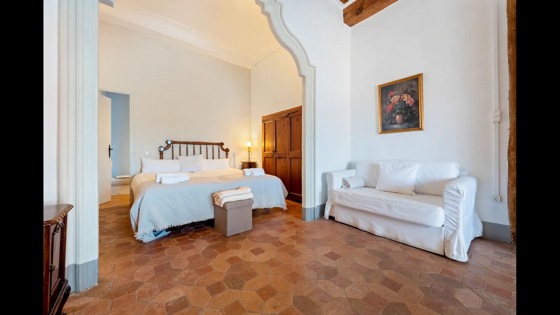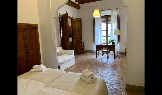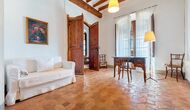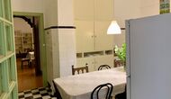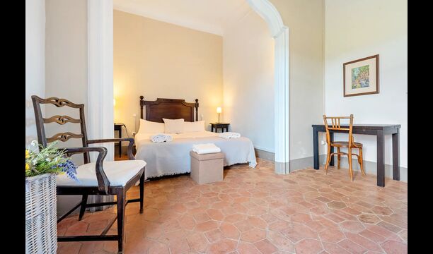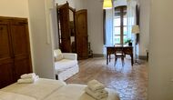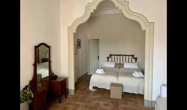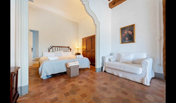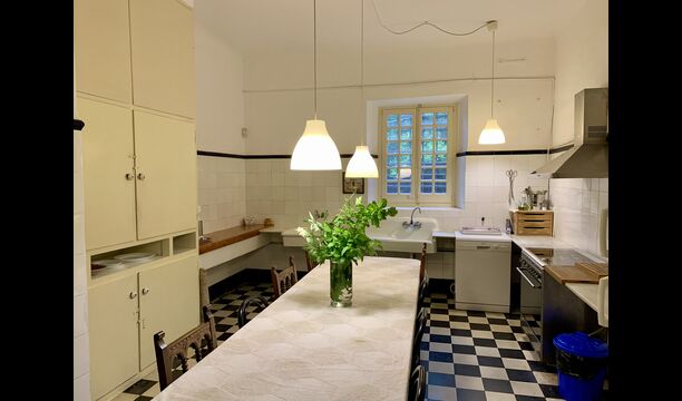 On the first and second floors are two sitting areas, a kitchen and in total 6 double rooms. Like the rest of the house the bedrooms are very spacious and the are two very large suites. These have both a large double bed, a sofa and a writing desk and direct access to a balcony with view over the monastery yard. Furthermore there are 4 other double rooms – all lavishly fitted out in the classical style. For these bedrooms there are 5 fine bathrooms: 4 with a shower and one with a bathtub.