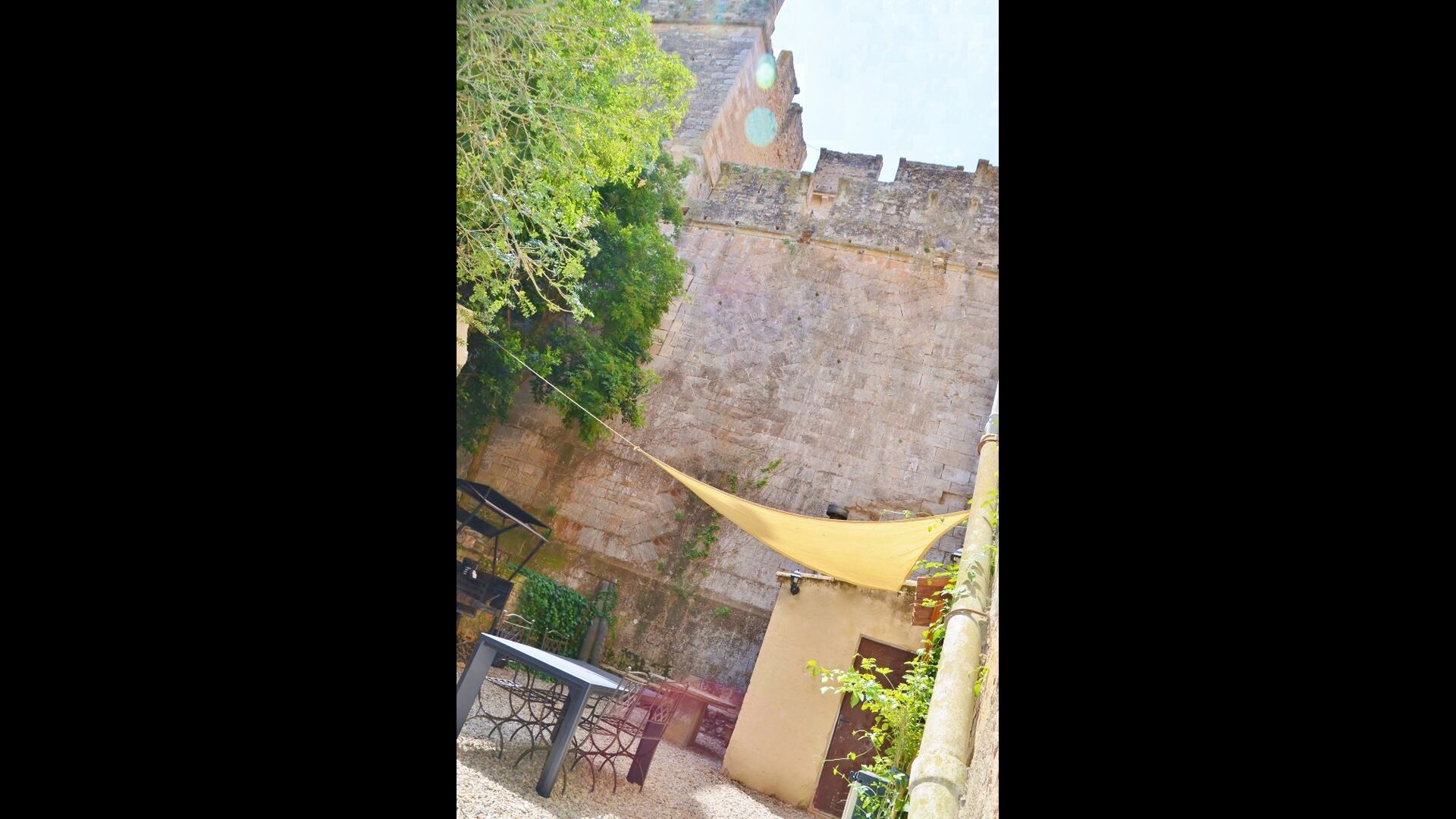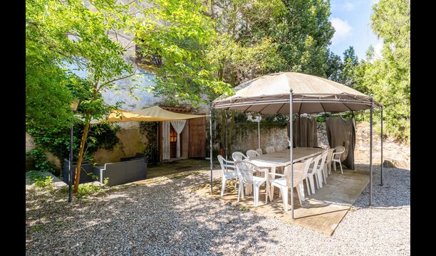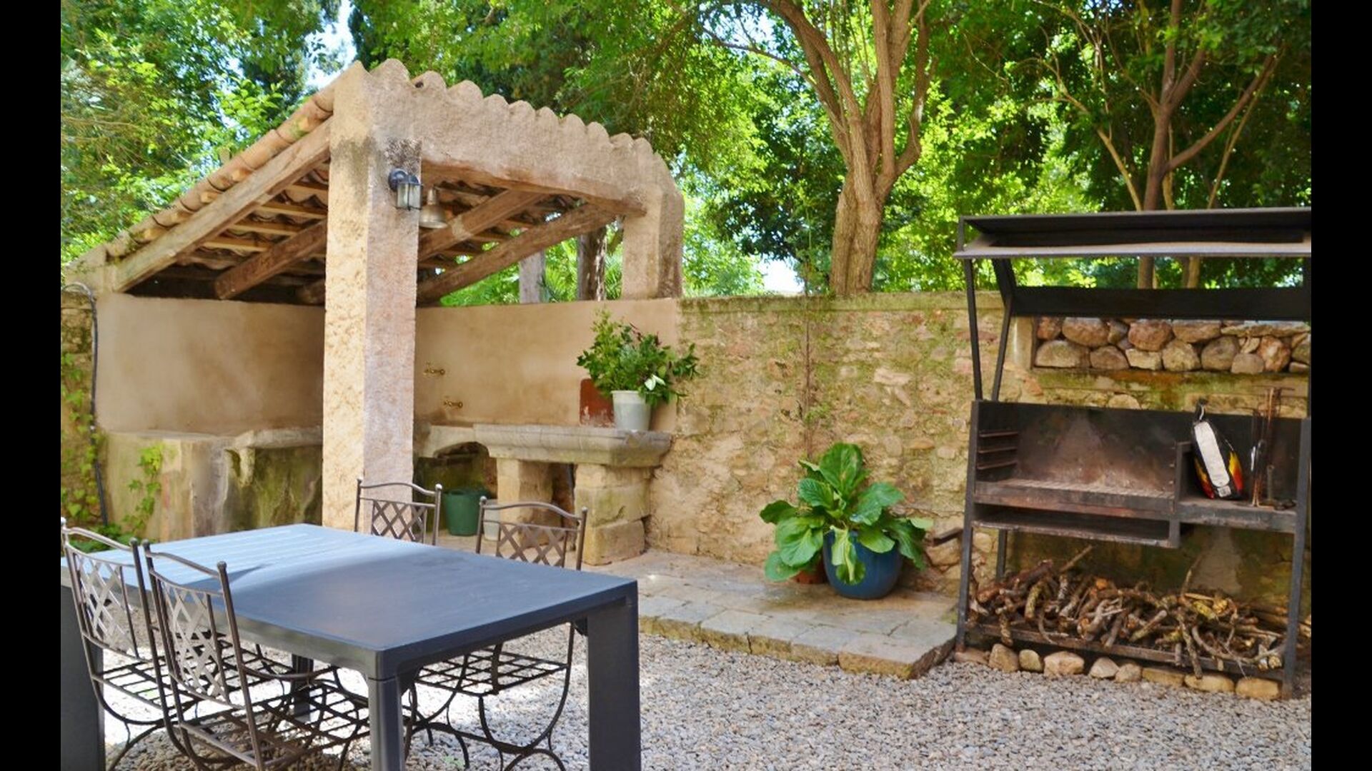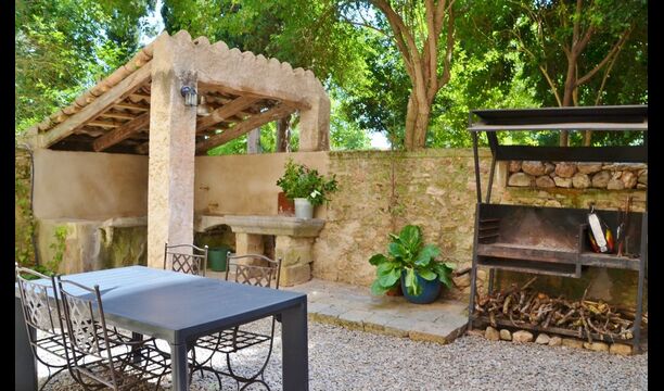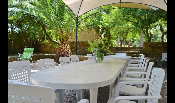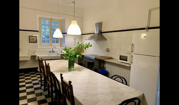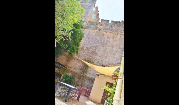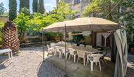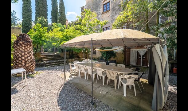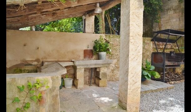 The house has a very large patio of 3000 m2, which is completely private, and only for use by the guests. It is very long and stretches along the walls of the monastery. At the exit from the house you find a covered dining area, and next to this a cooking area with a big BBQ-grill and outdoor sink.
