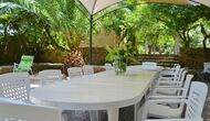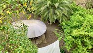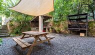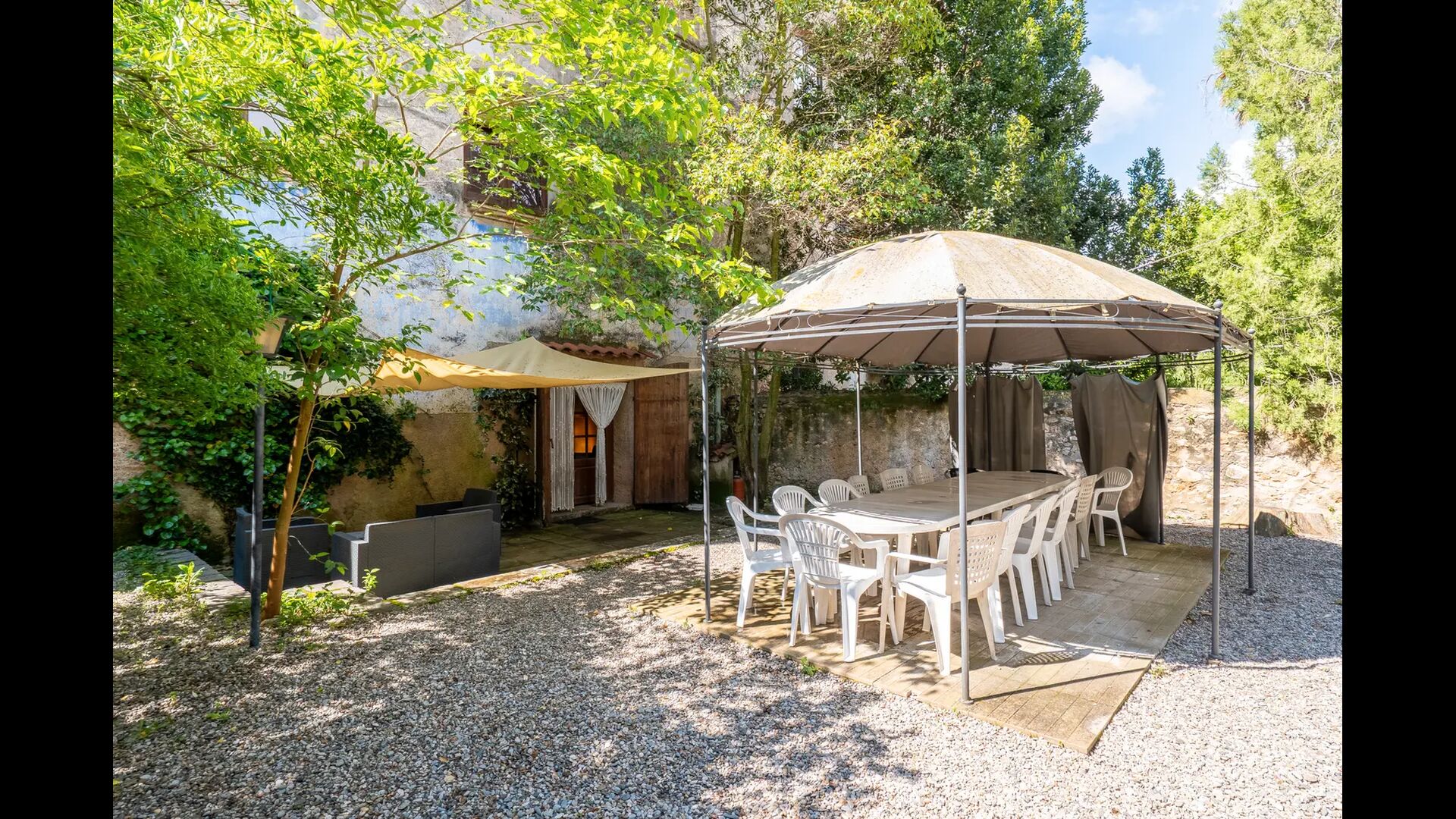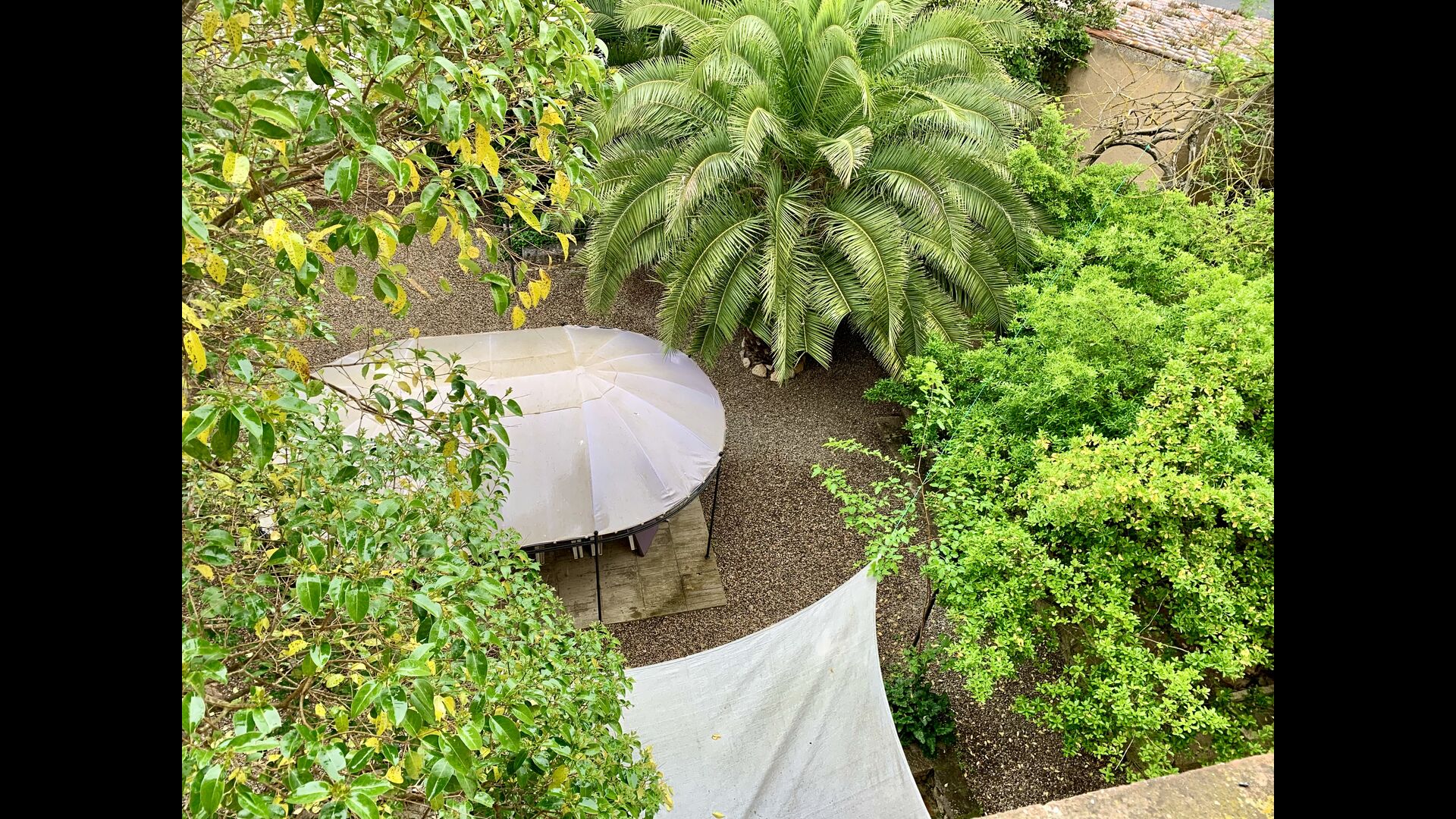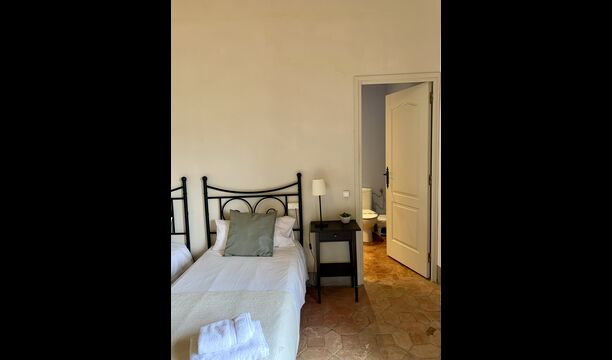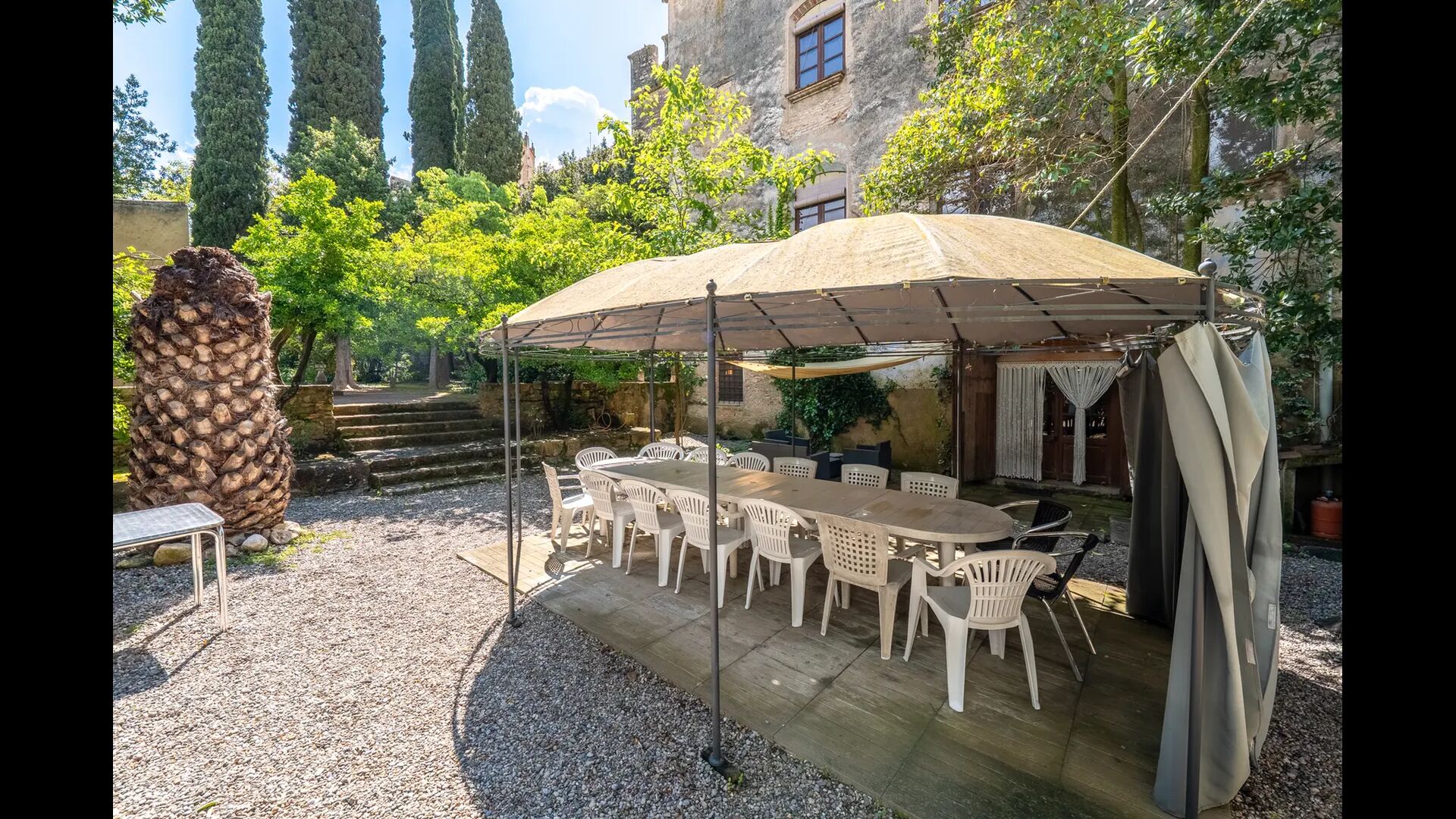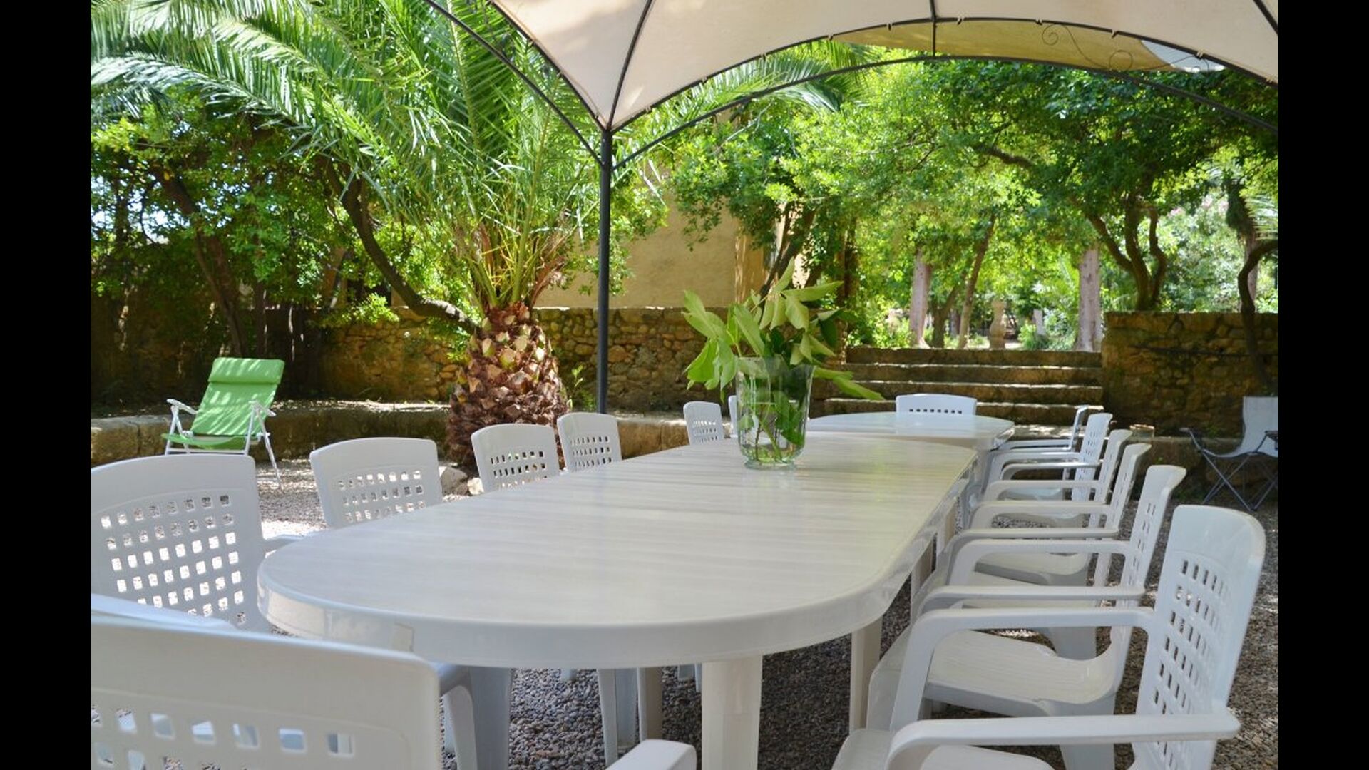 The house has a very large patio of 3000 m2, which is completely private, and only for use by the guests. It is very long and stretches along the walls of the monastery. At the exit from the house you find a covered dining area, and next to this a cooking area with a big BBQ-grill and outdoor sink.