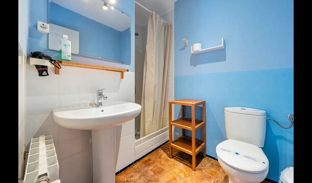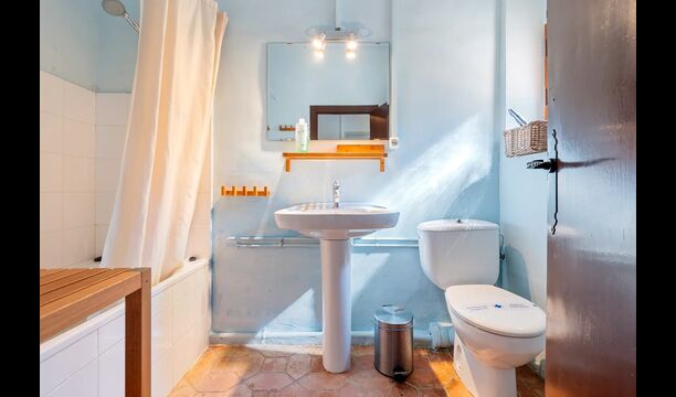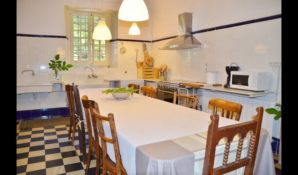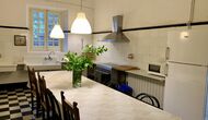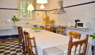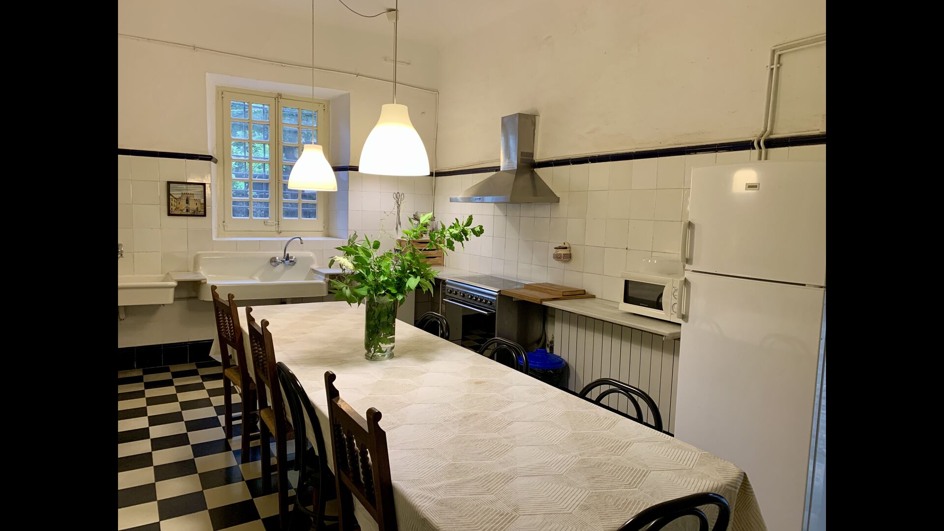 When entering La Masia del Monestir you are met by one of the three sitting rooms of the house: A large room with a long rustic dining table, behind which there is a delightful sofa area with TV. This room has access to the patio with outdoor furniture, dining area and cooking area. There is also a door into a large kitchen, which is well equipped with the necessary kitchen tools. On the ground floor there is a toilet as well.