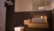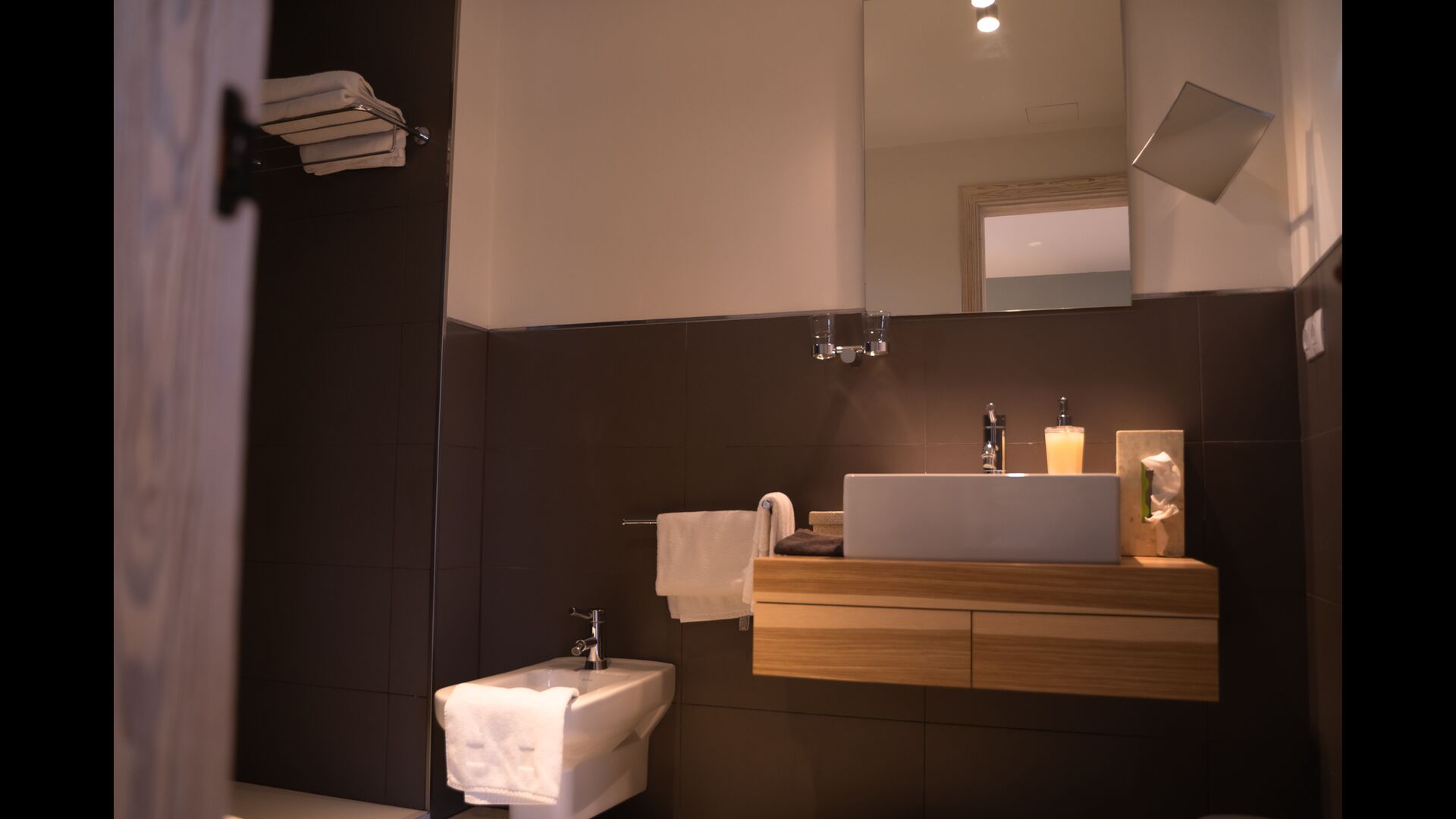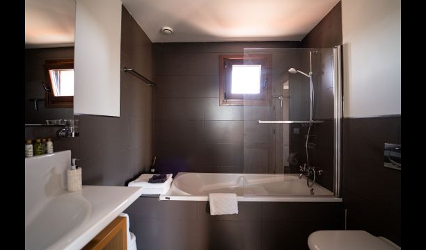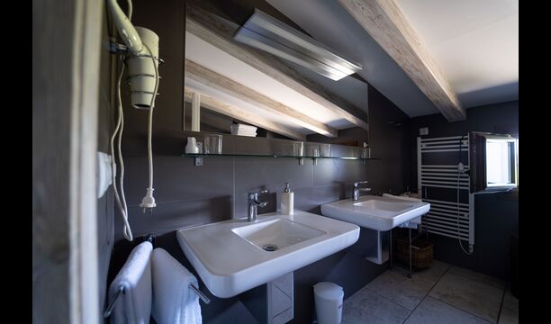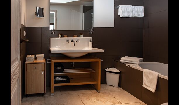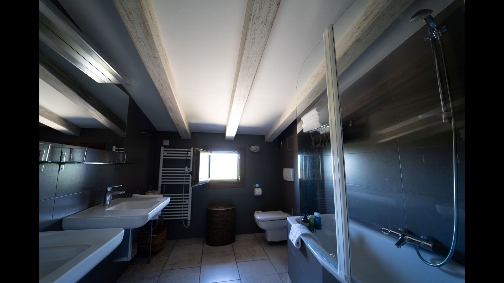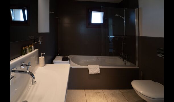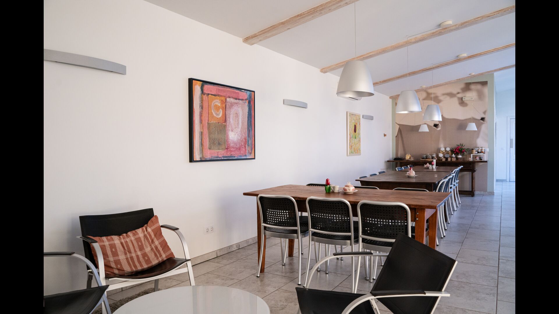 As the house in the off-season also works as a hotel/BB, all rooms are hotel standard. Three of them are suites with private sitting area, and one space is a two-bedroom family-apartment for four people, which has its own kitchen. The family-apartment has a large bathroom with a bath and two washbasins.