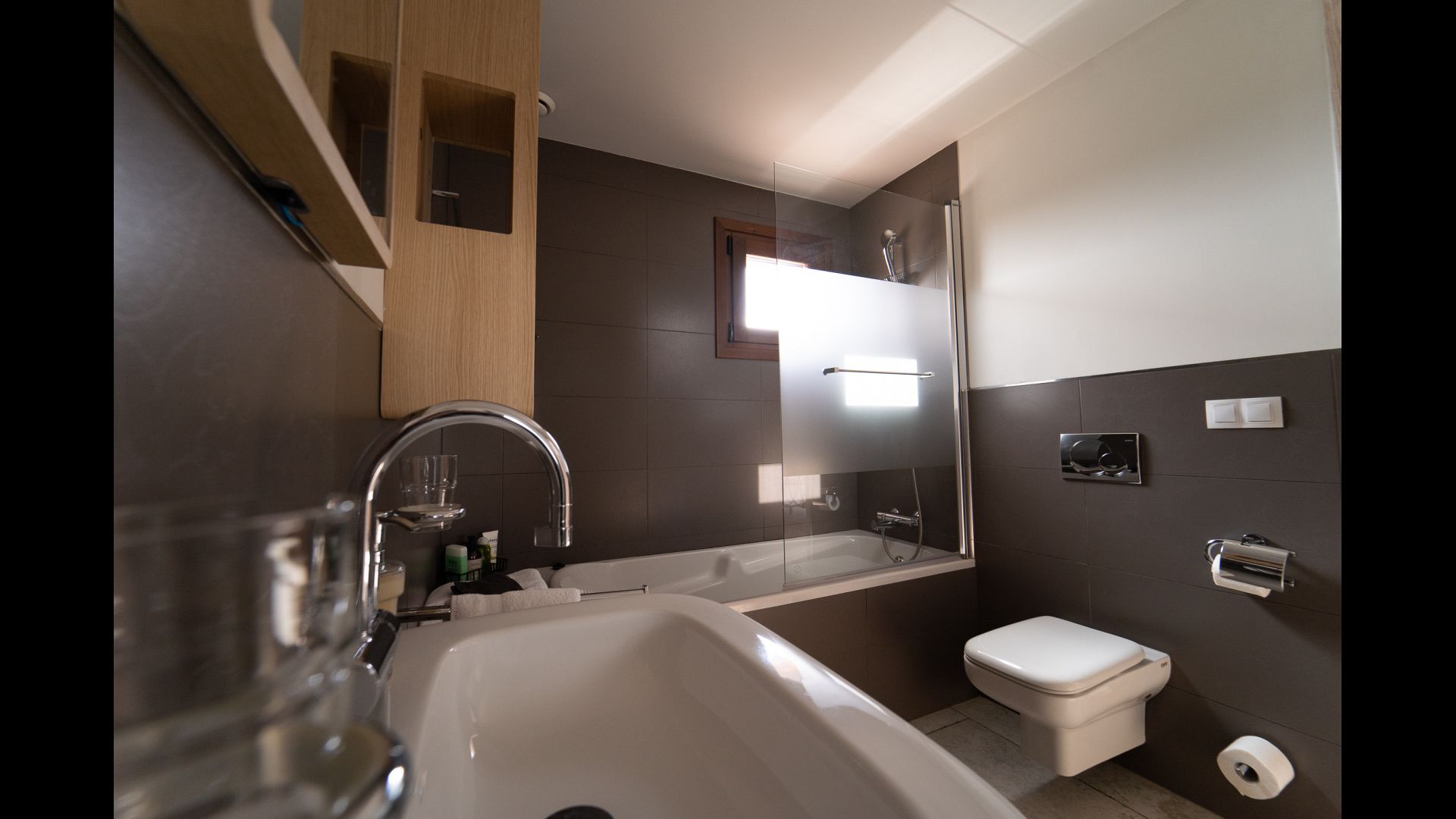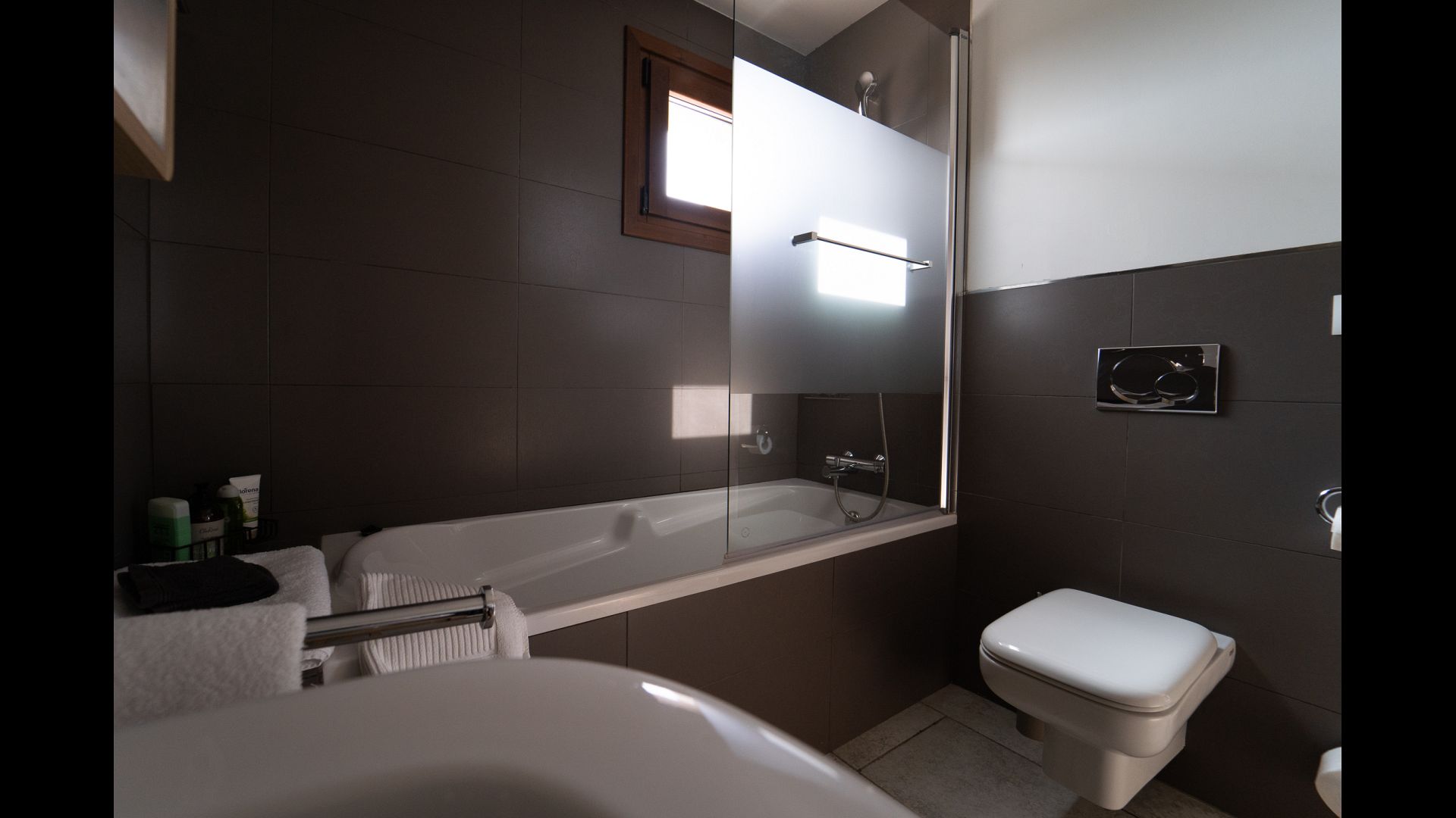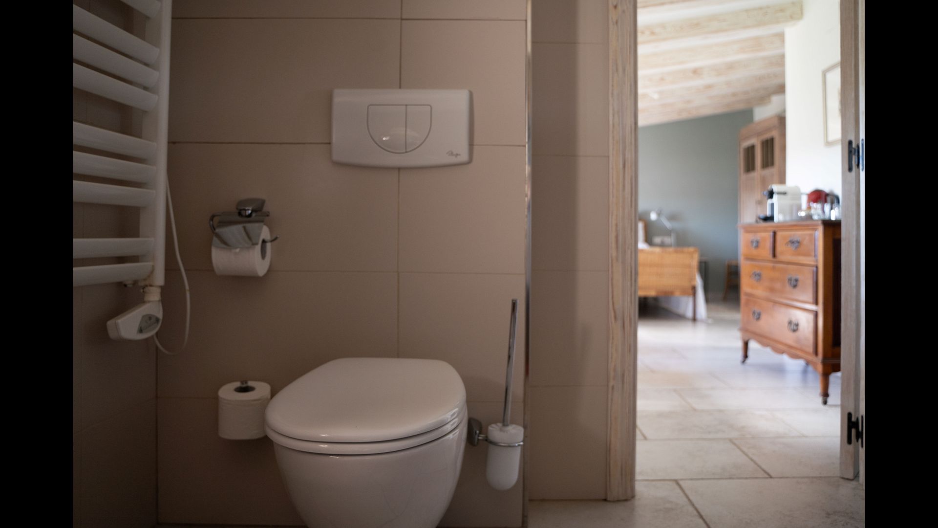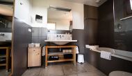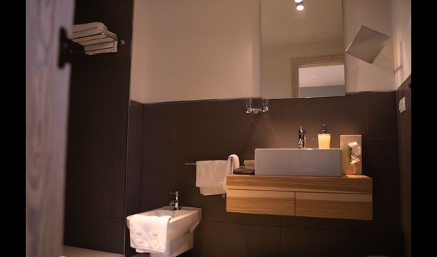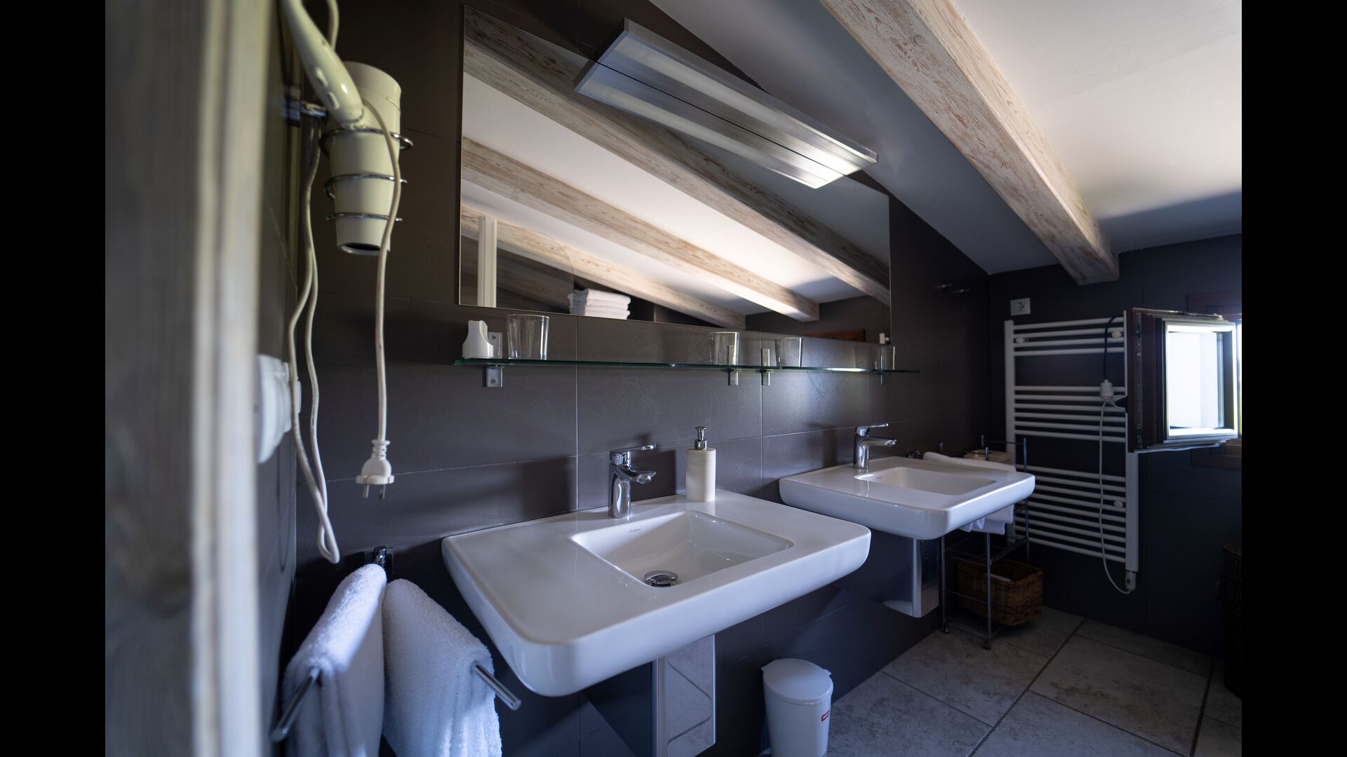 As the house in the off-season also works as a hotel/BB, all rooms are hotel standard. Three of them are suites with private sitting area, and one space is a two-bedroom family-apartment for four people, which has its own kitchen. The family-apartment has a large bathroom with a bath and two washbasins.
