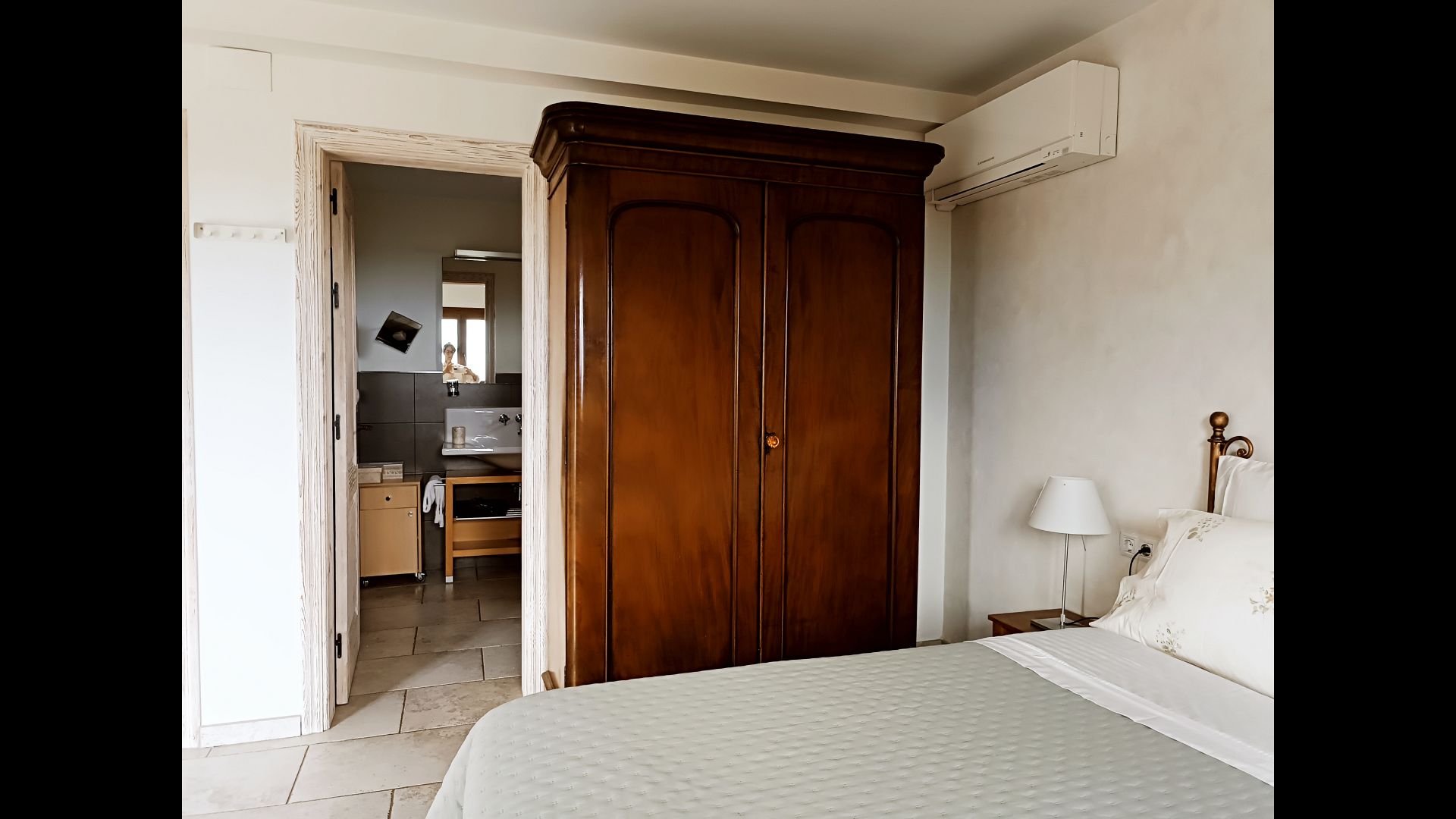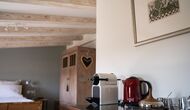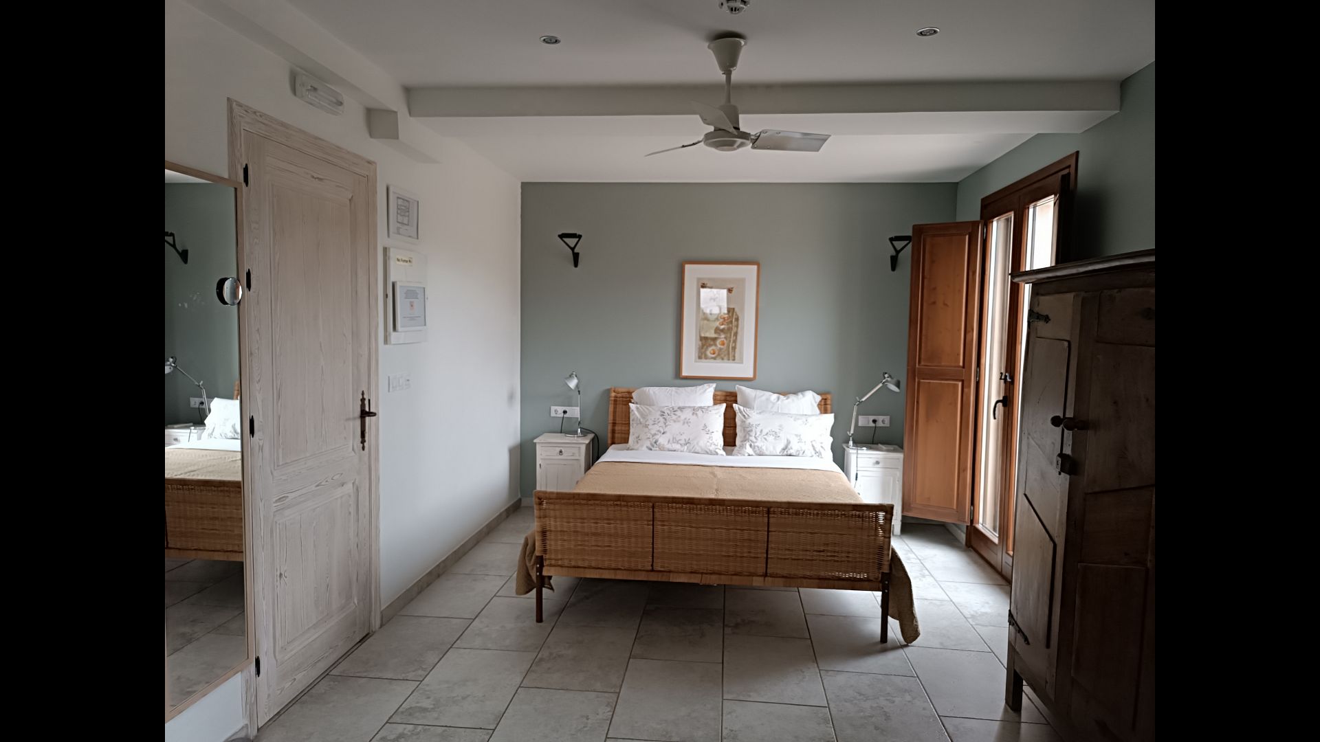 This spacious and very beautiful superior room sits on the west side of the house. It has stunning mountain views. In summer, this room is, together with room 4, our coolest room. The room is airy and light and very cozy.