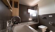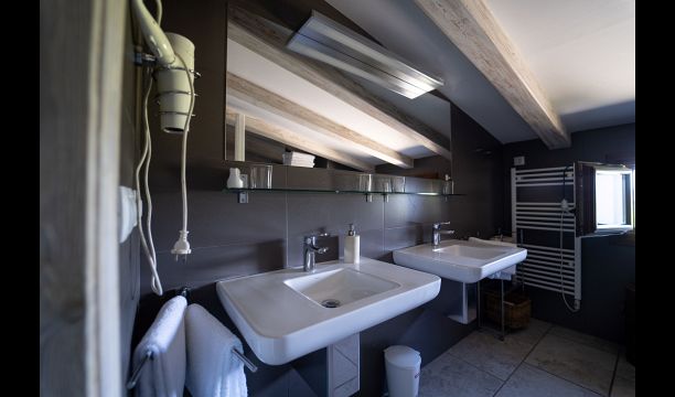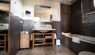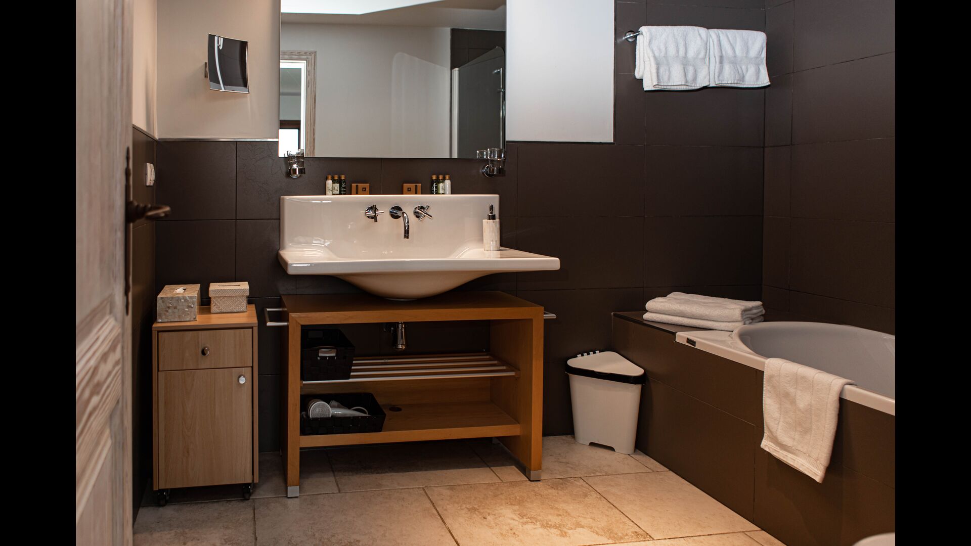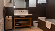 The private en suite bathroom comes with a bath, double sink, toilet, hairdryer, magnifying mirror, and free toiletries. The room has a double bed of 1.60 x 2.00 m and a sofa bed of 1.60 x 2.00 m. Because of its size of 23m2 and bed configuration (double bed and double sofa bed), it is suitable for up to 4 people.