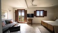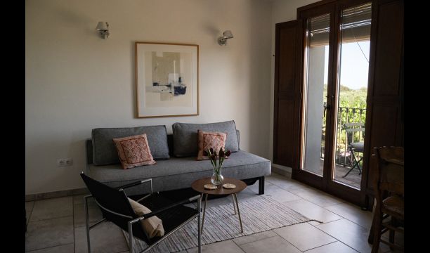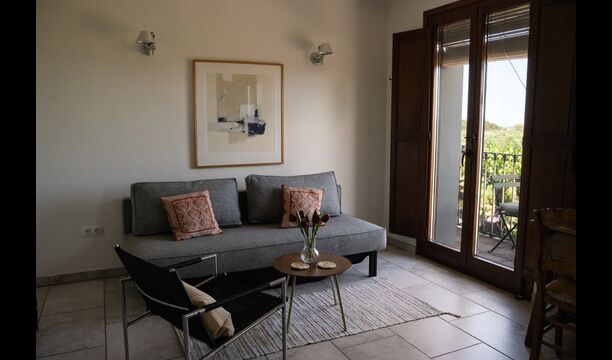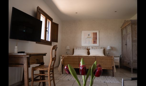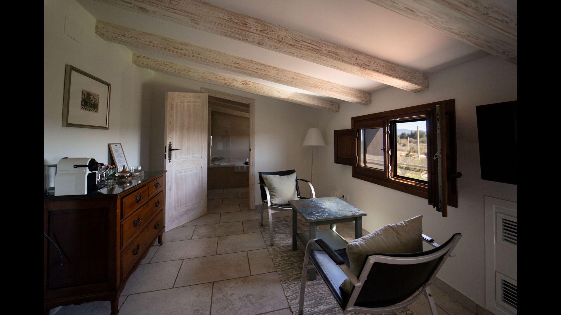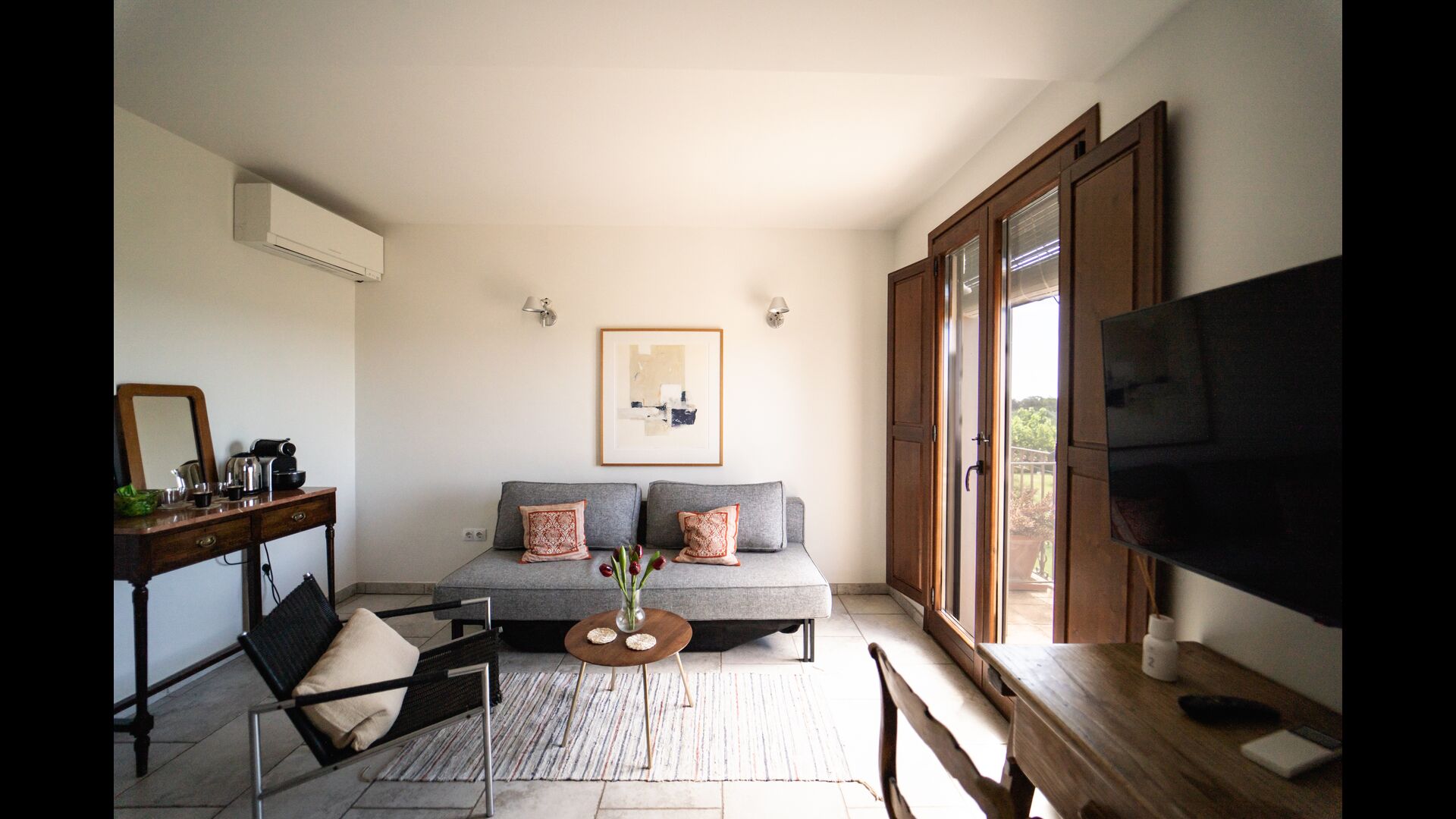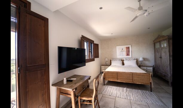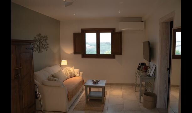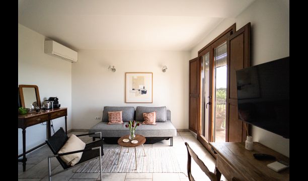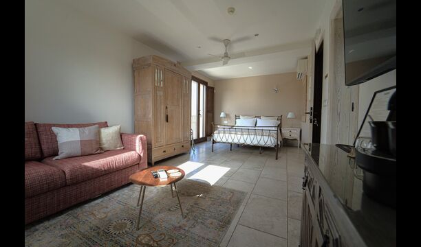 All double rooms offer views of either the Mediterranean Sea in the distance, the mountains with the sunset or the olive groves. They are all equipped with air condition, satellite TV, underfloor heating, Wi-Fi, Nespresso coffee machine and a private bathroom. The furnishing in each room is a fine blend of vintage and modern, creating an extremely tasteful environment.