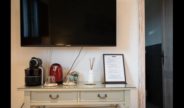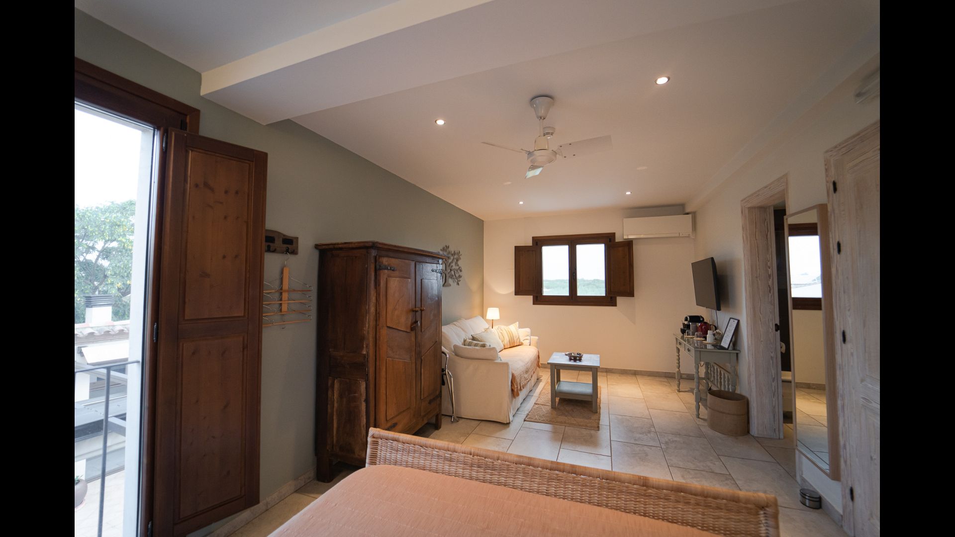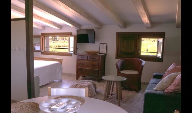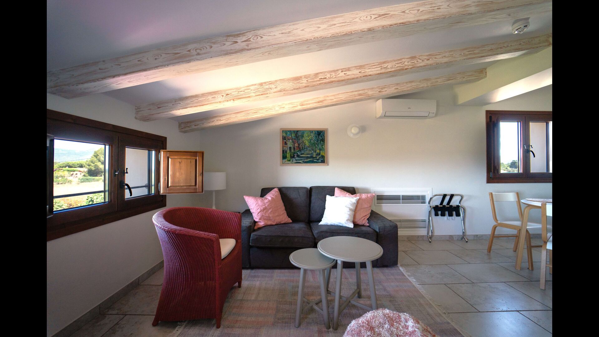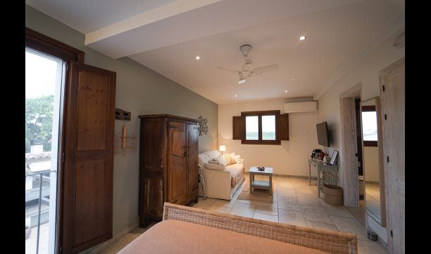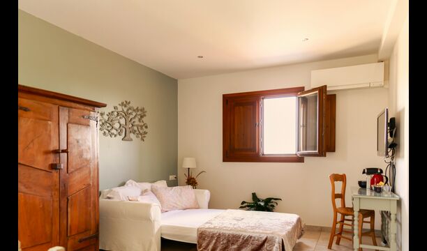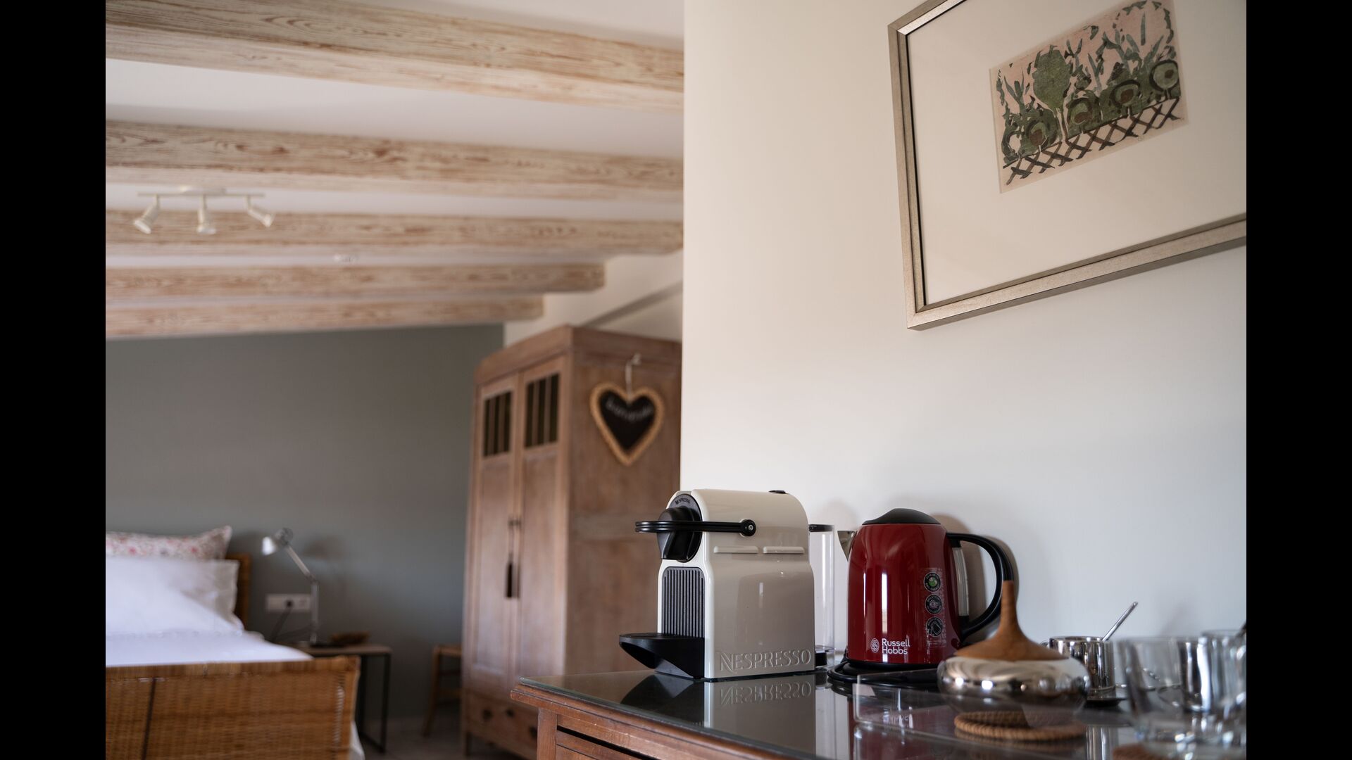 All double rooms offer views of either the Mediterranean Sea in the distance, the mountains with the sunset or the olive groves. They are all equipped with air condition, satellite TV, underfloor heating, Wi-Fi, Nespresso coffee machine and a private bathroom. The furnishing in each room is a fine blend of vintage and modern, creating an extremely tasteful environment.