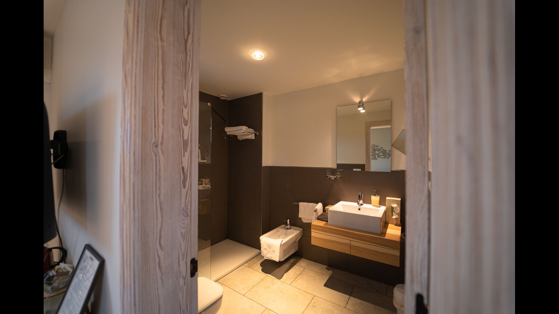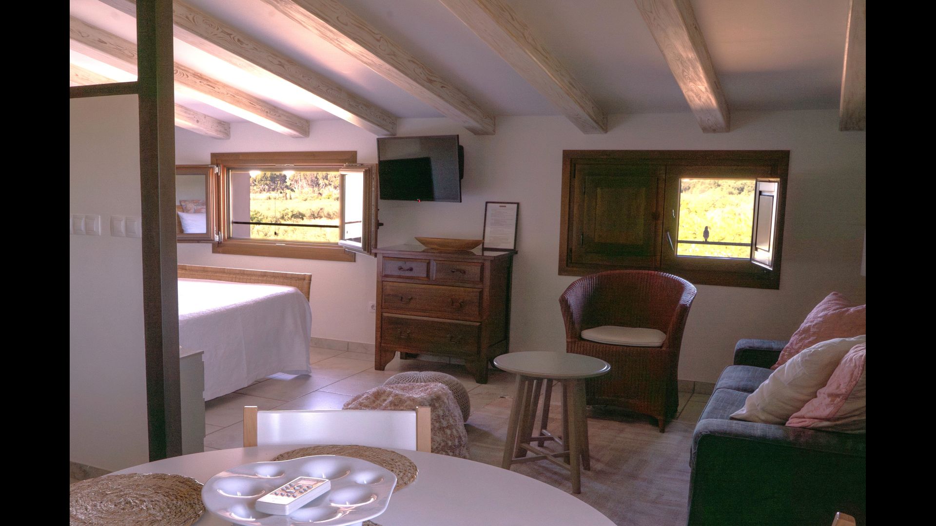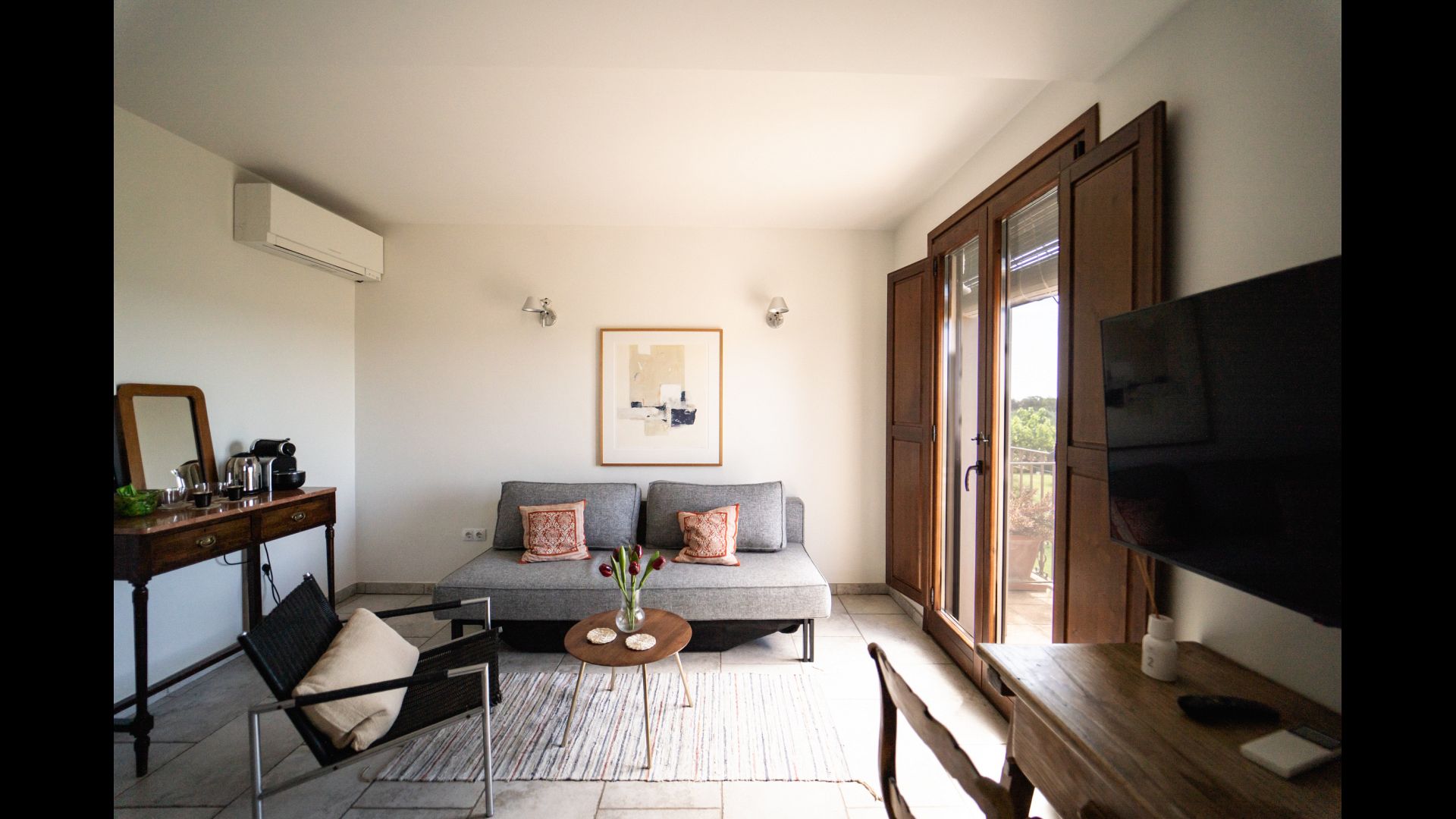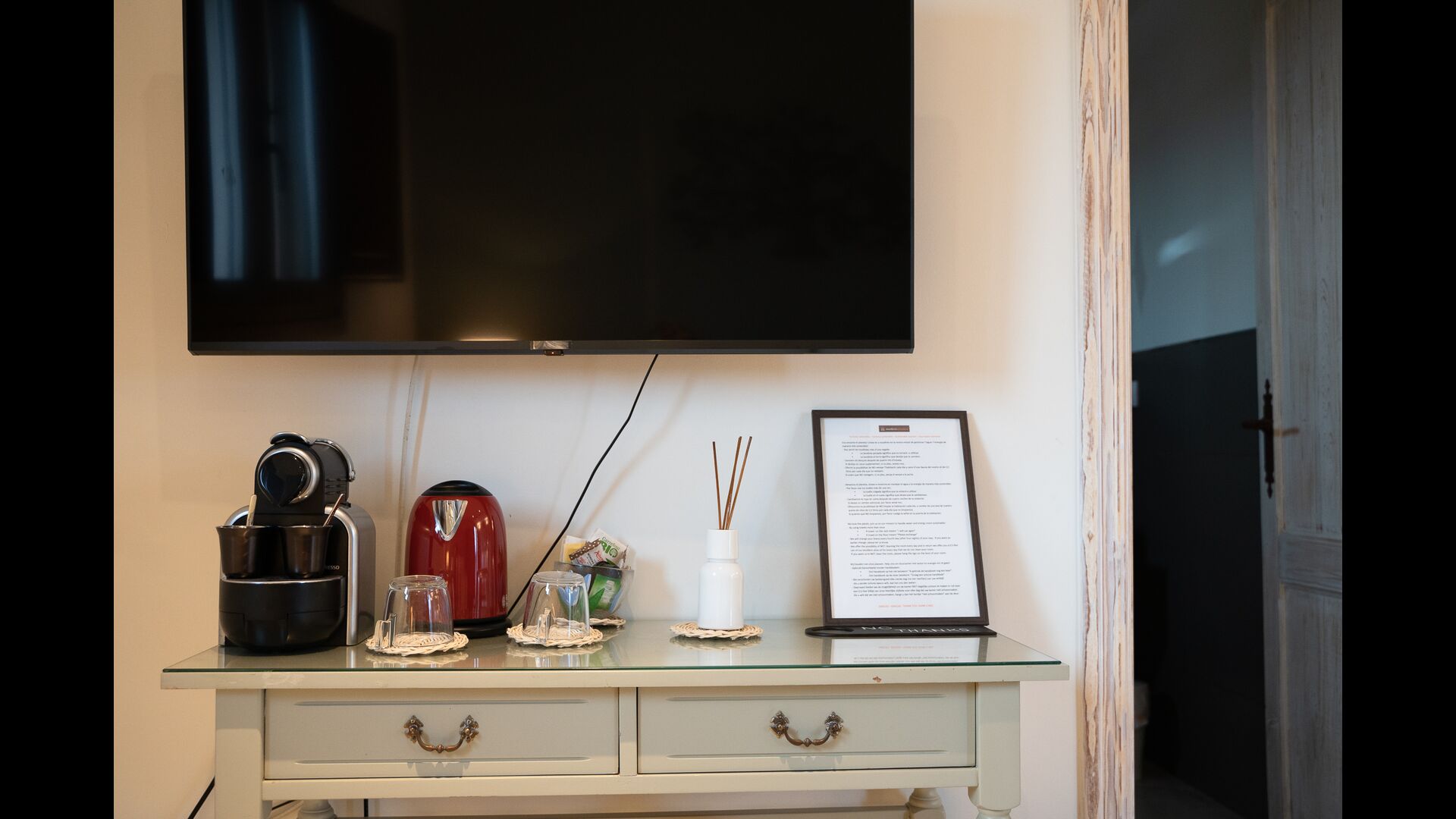 All double rooms offer views of either the Mediterranean Sea in the distance, the mountains with the sunset or the olive groves. They are all equipped with air condition, satellite TV, underfloor heating, Wi-Fi, Nespresso coffee machine and a private bathroom. The furnishing in each room is a fine blend of vintage and modern, creating an extremely tasteful environment.