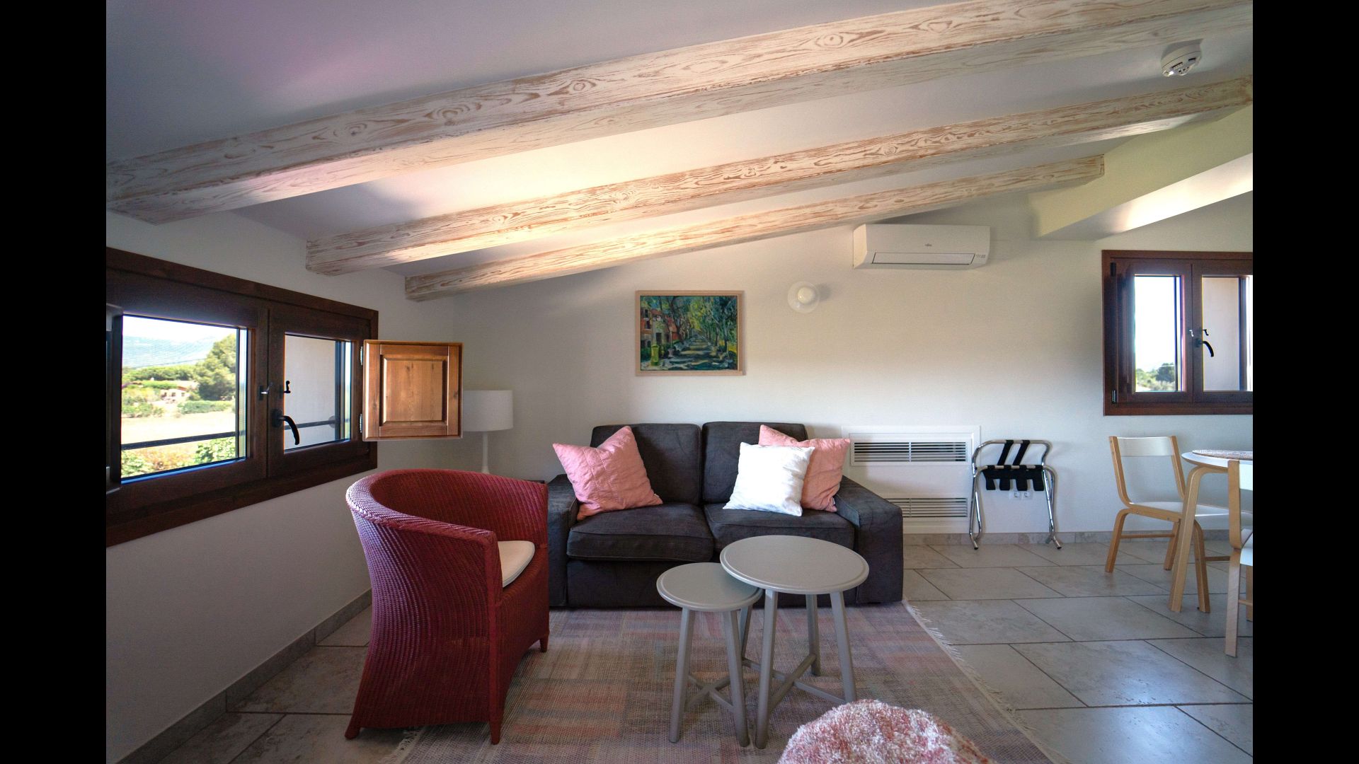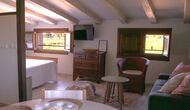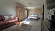 You find Bedroom 6 and Bedroom 7 in a bright two-room apartment of 53m2 on the second floor of the house. It has stunning views of the mountains and the sunset and is West oriented. The apartment has a seating area, a satellite TV, a fully-equipped kitchen with a 4-ring electric stove, microwave and fridge, a Nespresso coffee machine and kettle, and a dining table with 4
