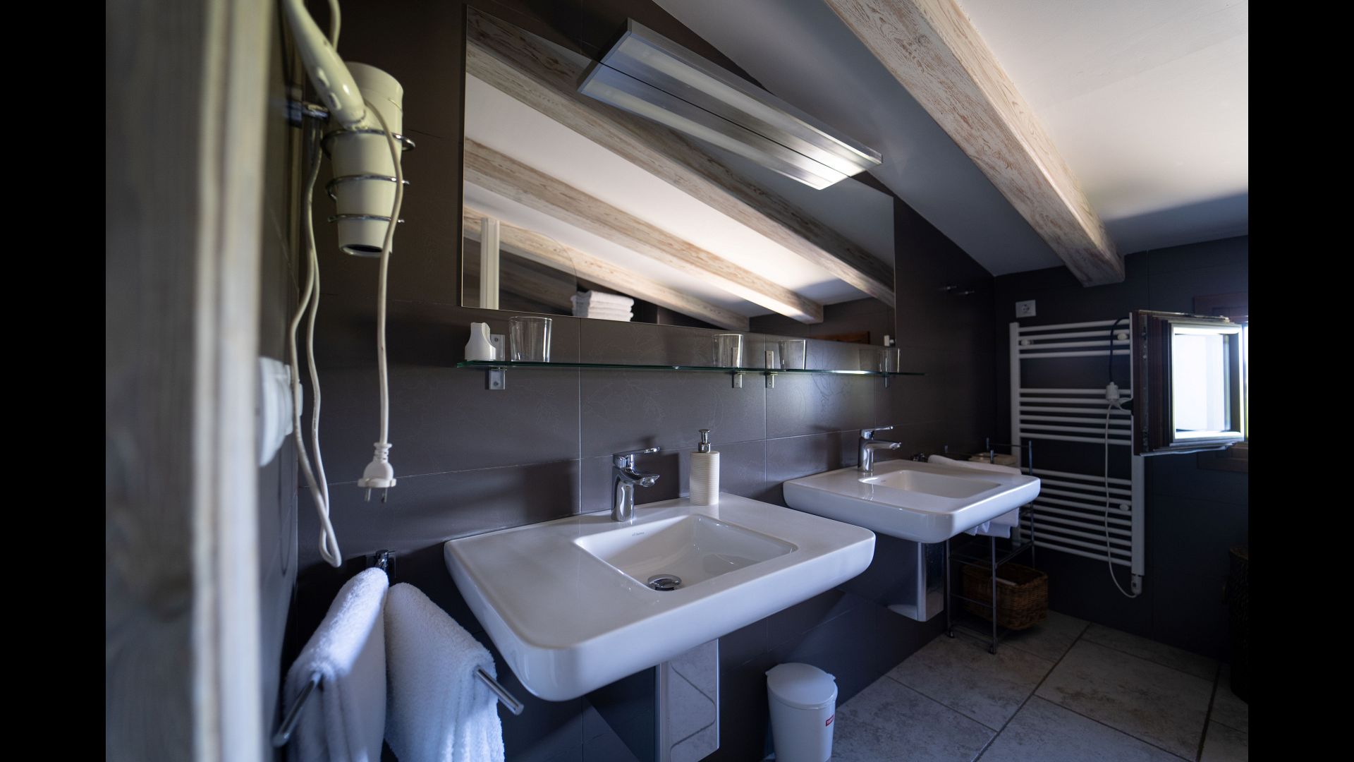 They share a bathroom, which is equipped with a bath, toilet, two sinks, a toilet, hairdryer, magnifying mirror, and free toiletries. Accessible via the stairs.