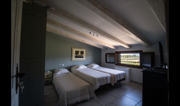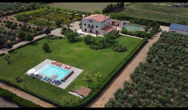 Masía Montbello is located on a 165.000m2 terrain with thousands of olive and fruit trees. The owners produce their own excellent olive oil. From the 2000m2 ornamental garden with a huge pool you have unique views of the mountains that rise in the background. And from the house you even can see the sea in the distance. Its peacefulness, tranquility, space and positive energy is unique and makes it a priceless accommodation.
