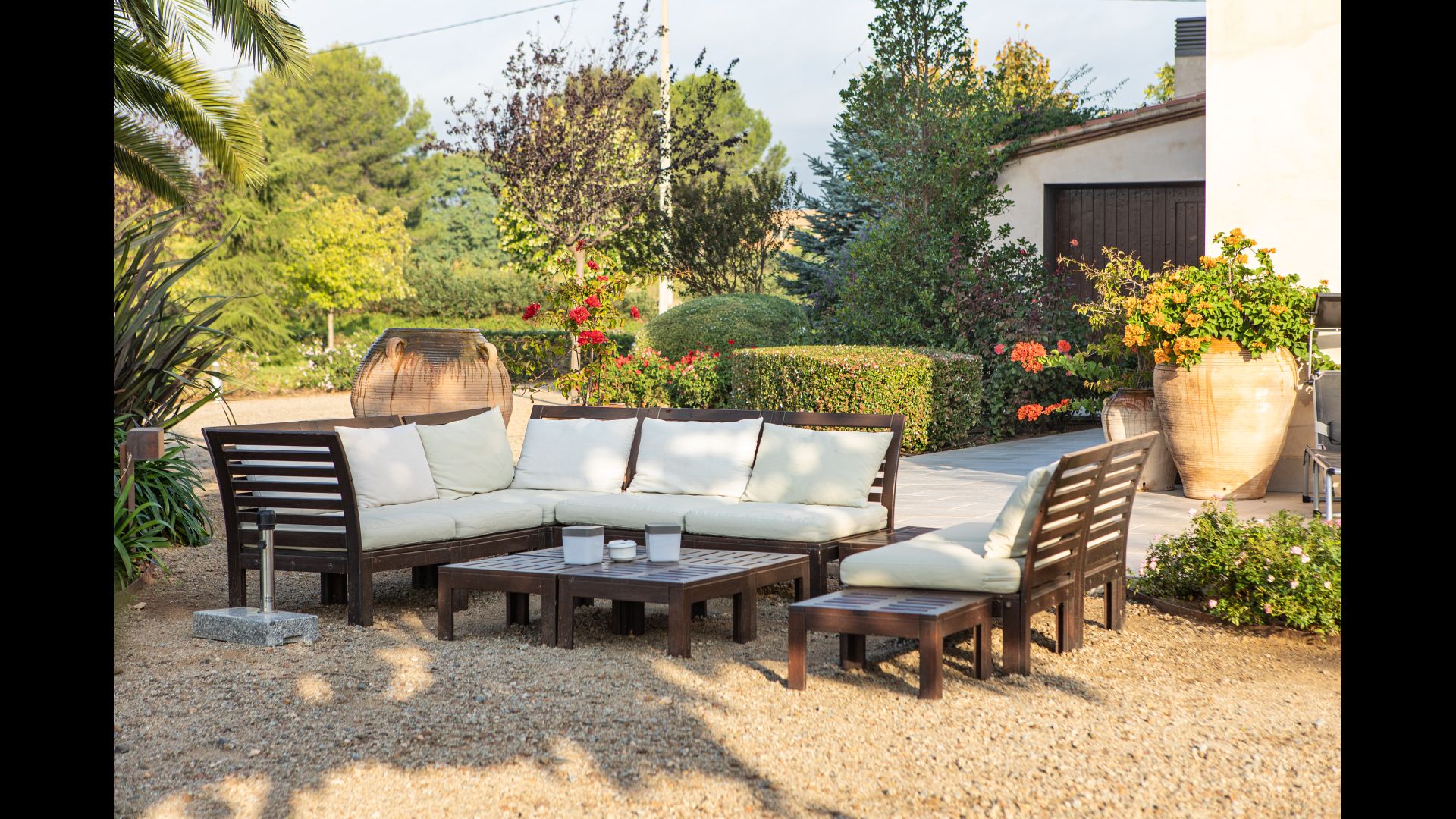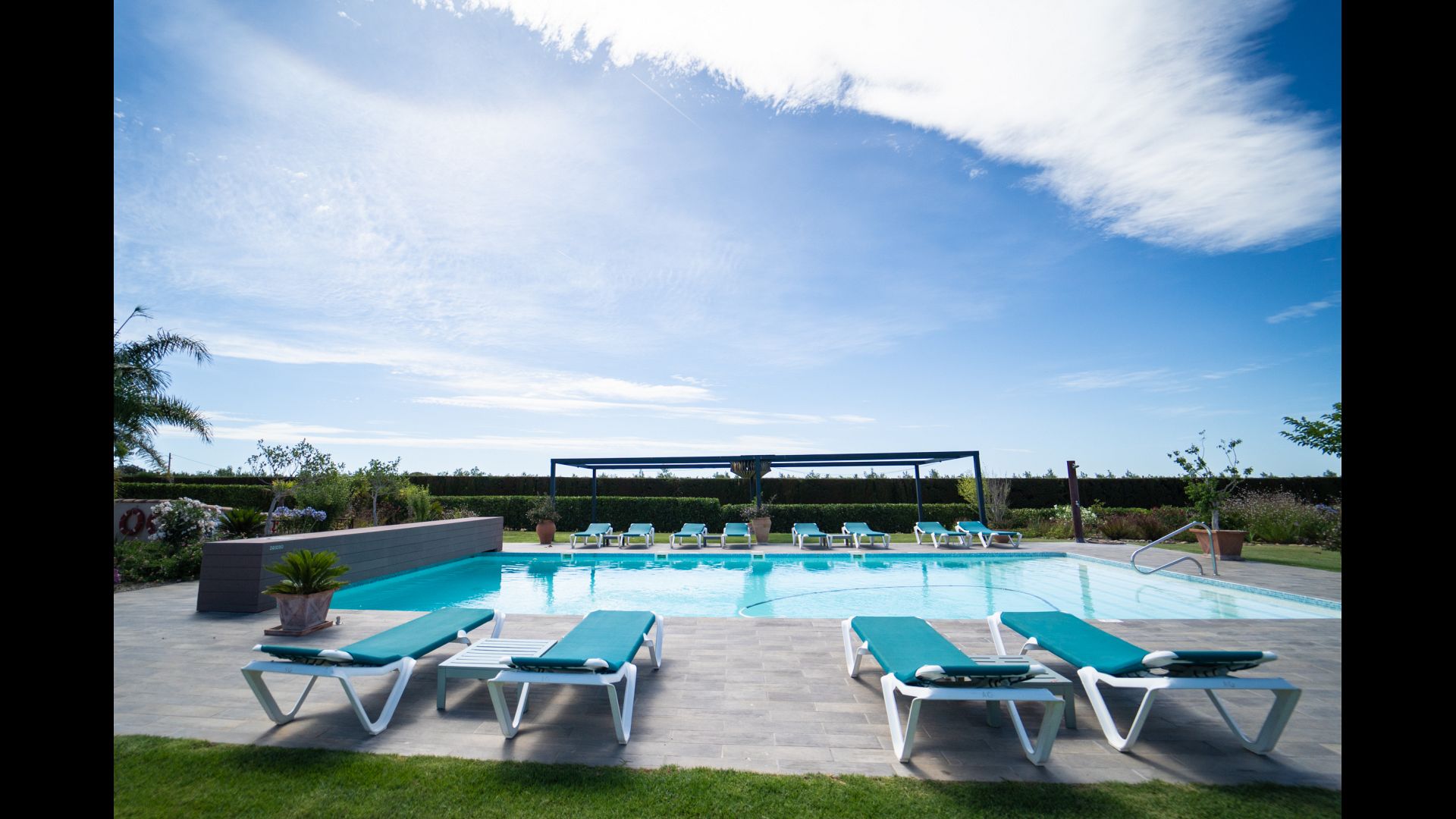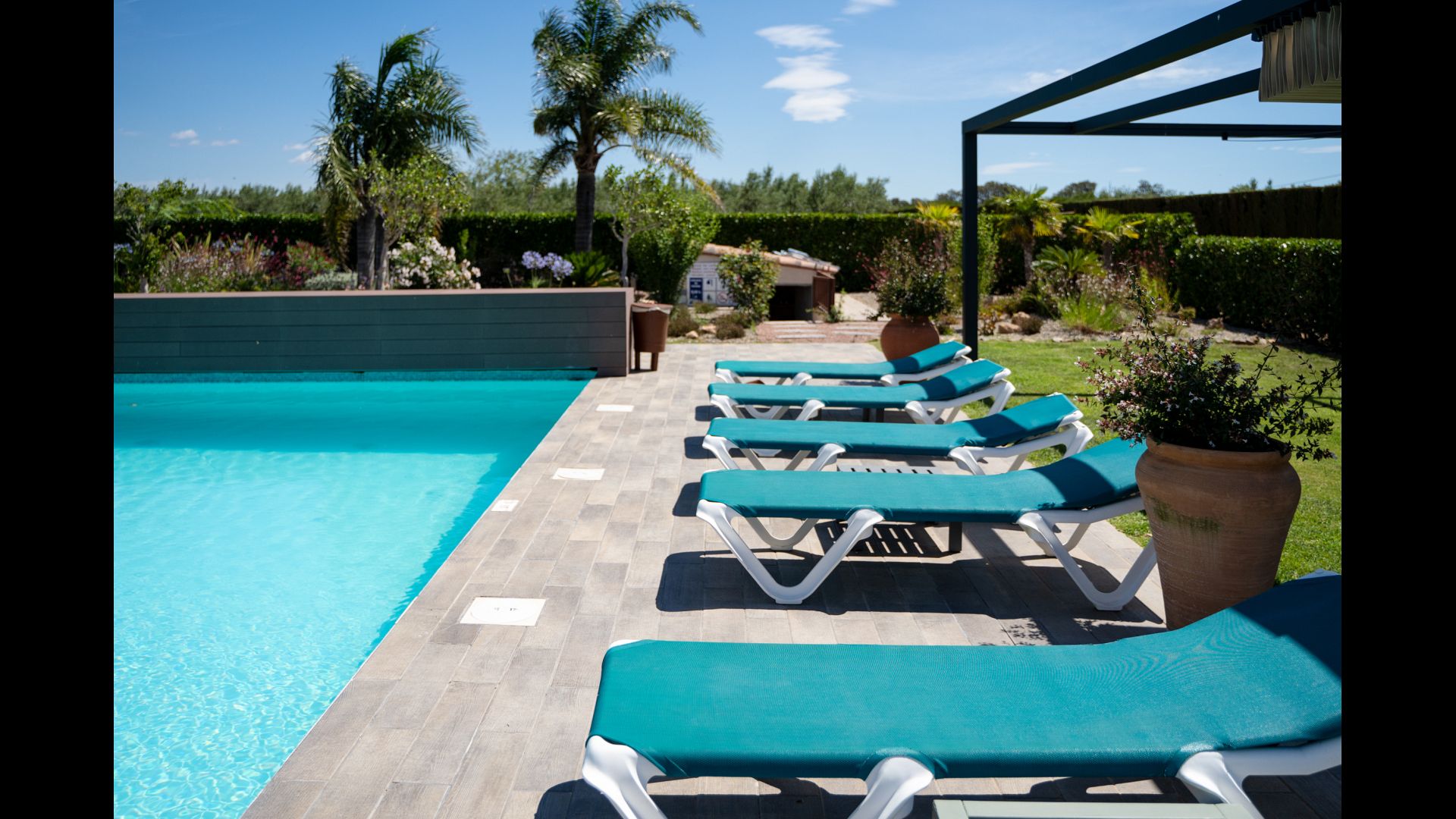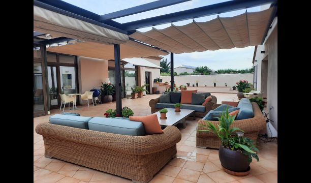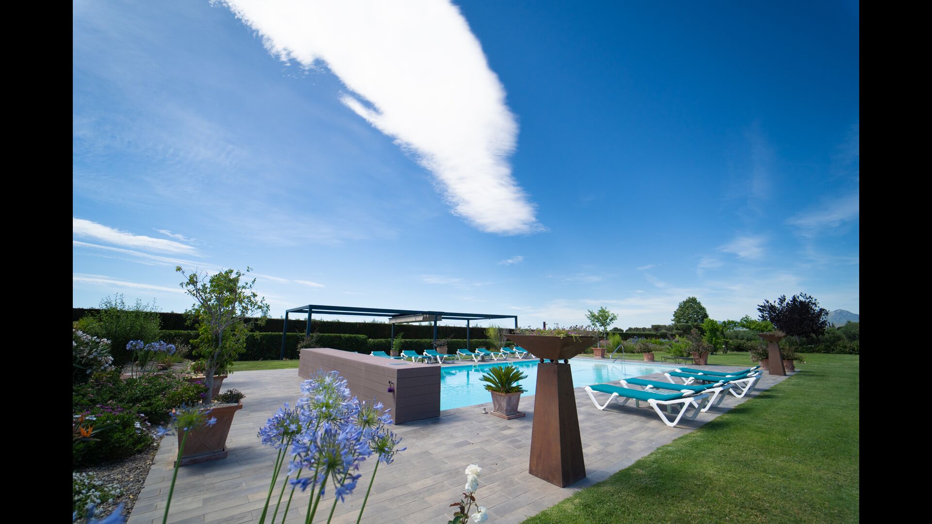 Enjoy the house as a relaxing base with a big garden with private swimming pool, several terrace areas, and 3 suites, 2 double rooms and an apartment with two bedrooms.