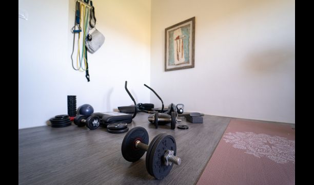 In Masía Montbello there is also a small gym, a library with a wide selection of coffee table books, free Wi-Fi in all rooms and common areas, washing machine, dryer and ironing facilities. Separate from the house there is a playroom with a table tennis table, board games, a football table and toys for the kids. Next to the playroom is a safe trampoline, embedded in the ground.