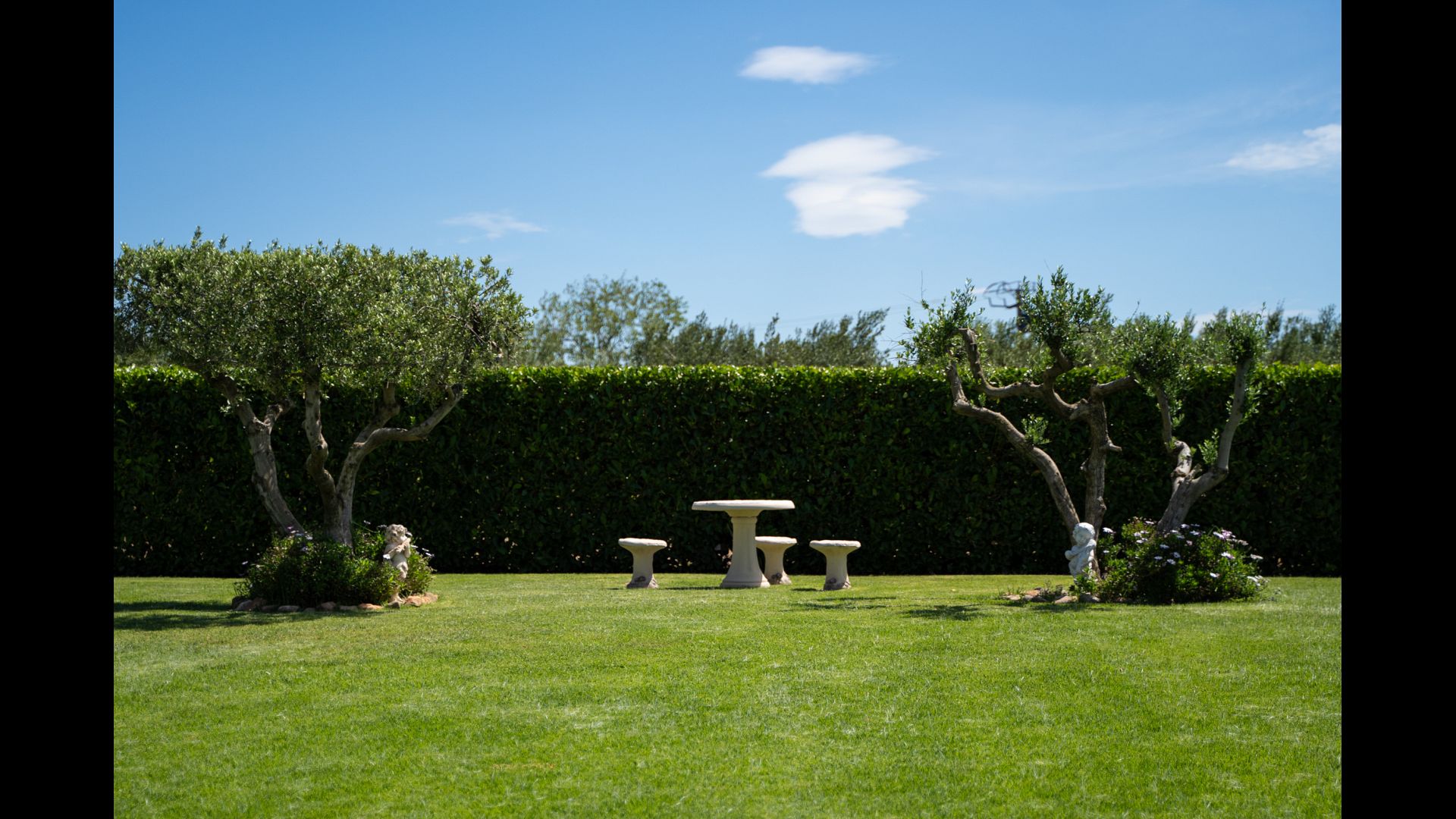 The house is part of a working olive farm, and the huge ornamental garden, the chicken, 2 ducks and the cats, as well as the large number of plants in pots, require daily attention. This means that during your stay you will encounter the gardener, the pool boy or girl and the maintenance worker.