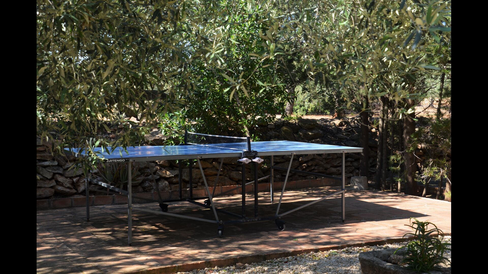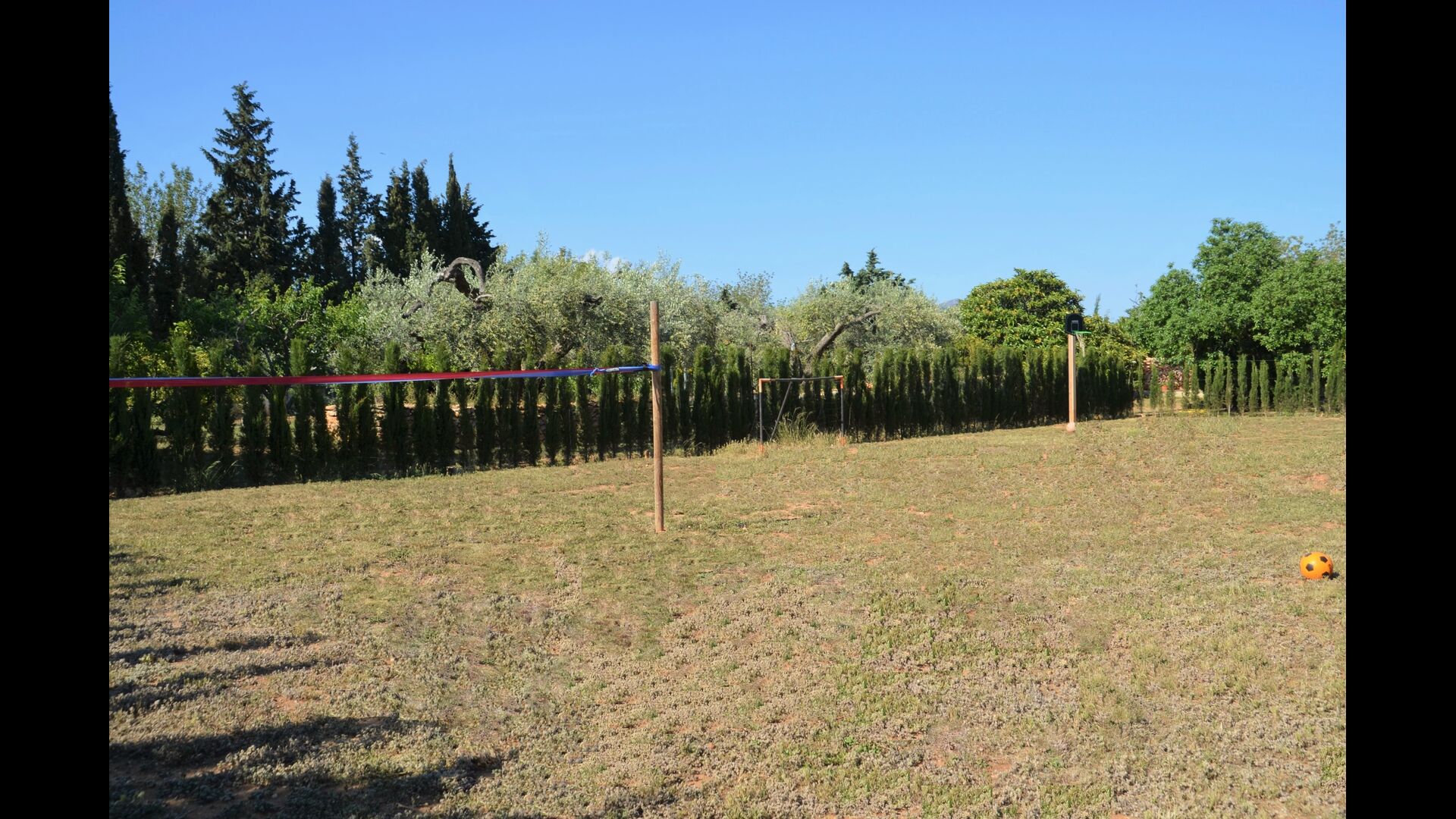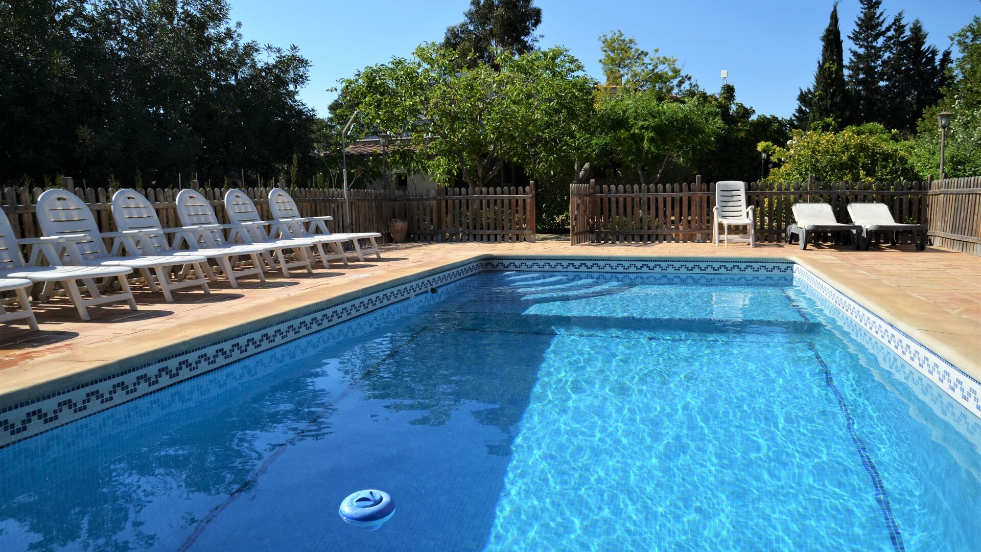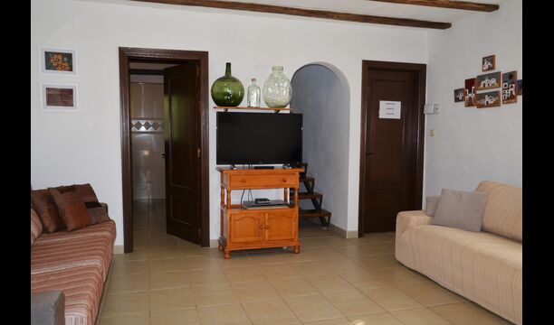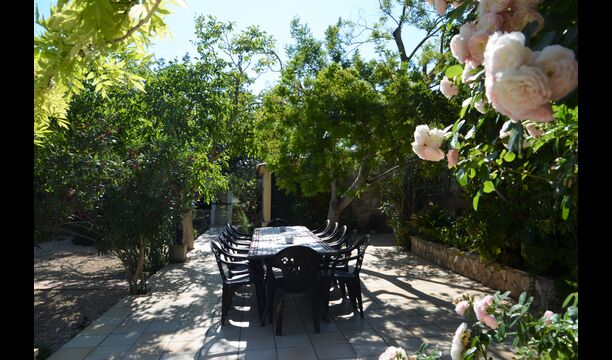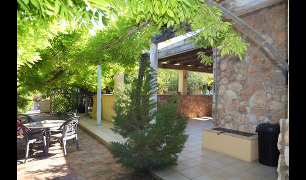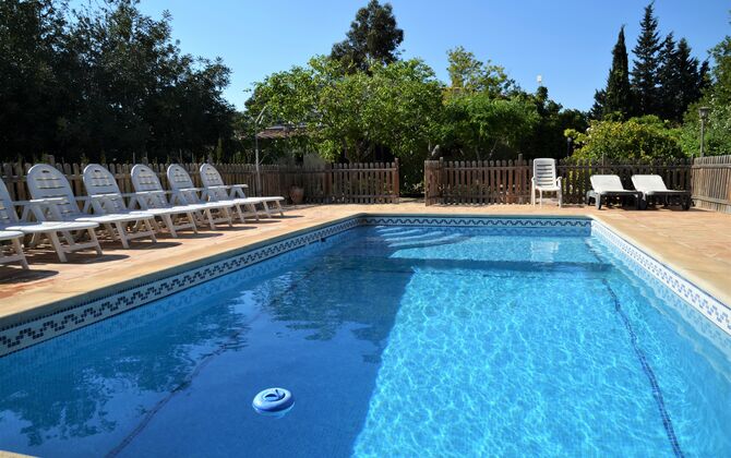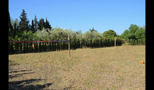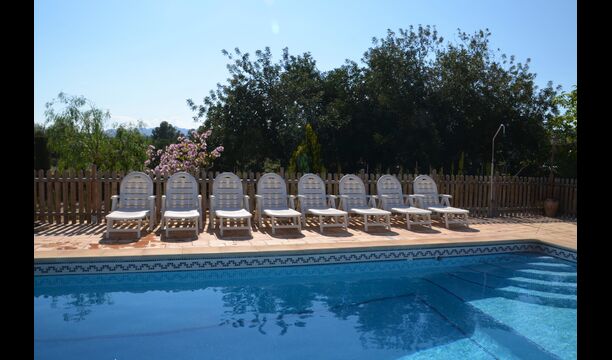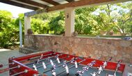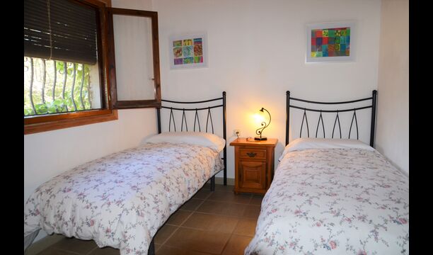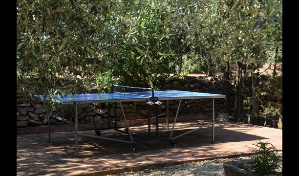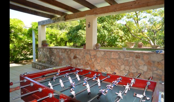 The outdoor area of Cal de Flaras is quite unique. The house has a fenced, 8x4 meter private swimming pool with a great pool area with sun loungers, parasols, showers, etc. There is furthermore a lot of other activities, including a large swing set, table tennis, table football, bicycles, as well as a badminton- and football field, which the house shares with the neighbouring holiday home. In addition, you will find some neat fruit trees as well as a terrace with dining table and BBQ grill in the large, beautiful garden. To put it short: You will probably not run out of things to do here.