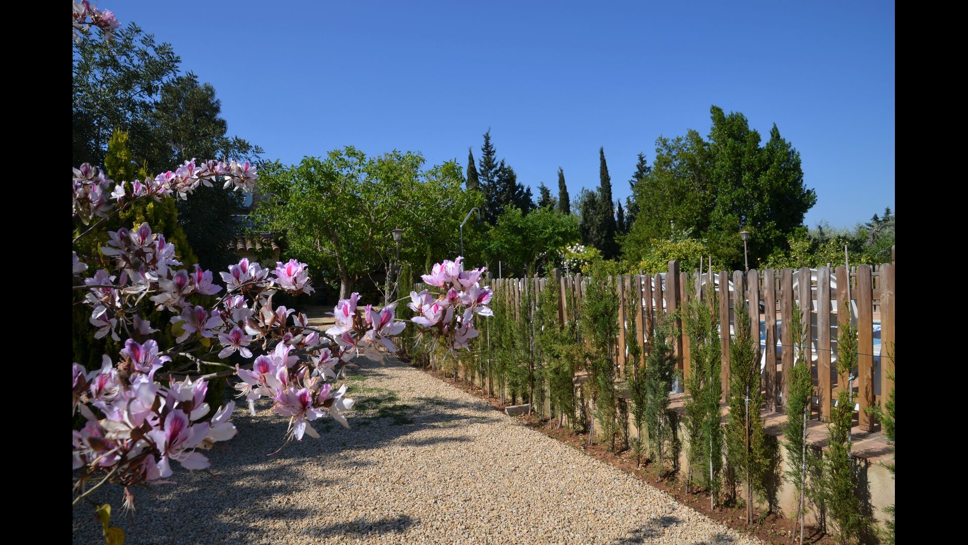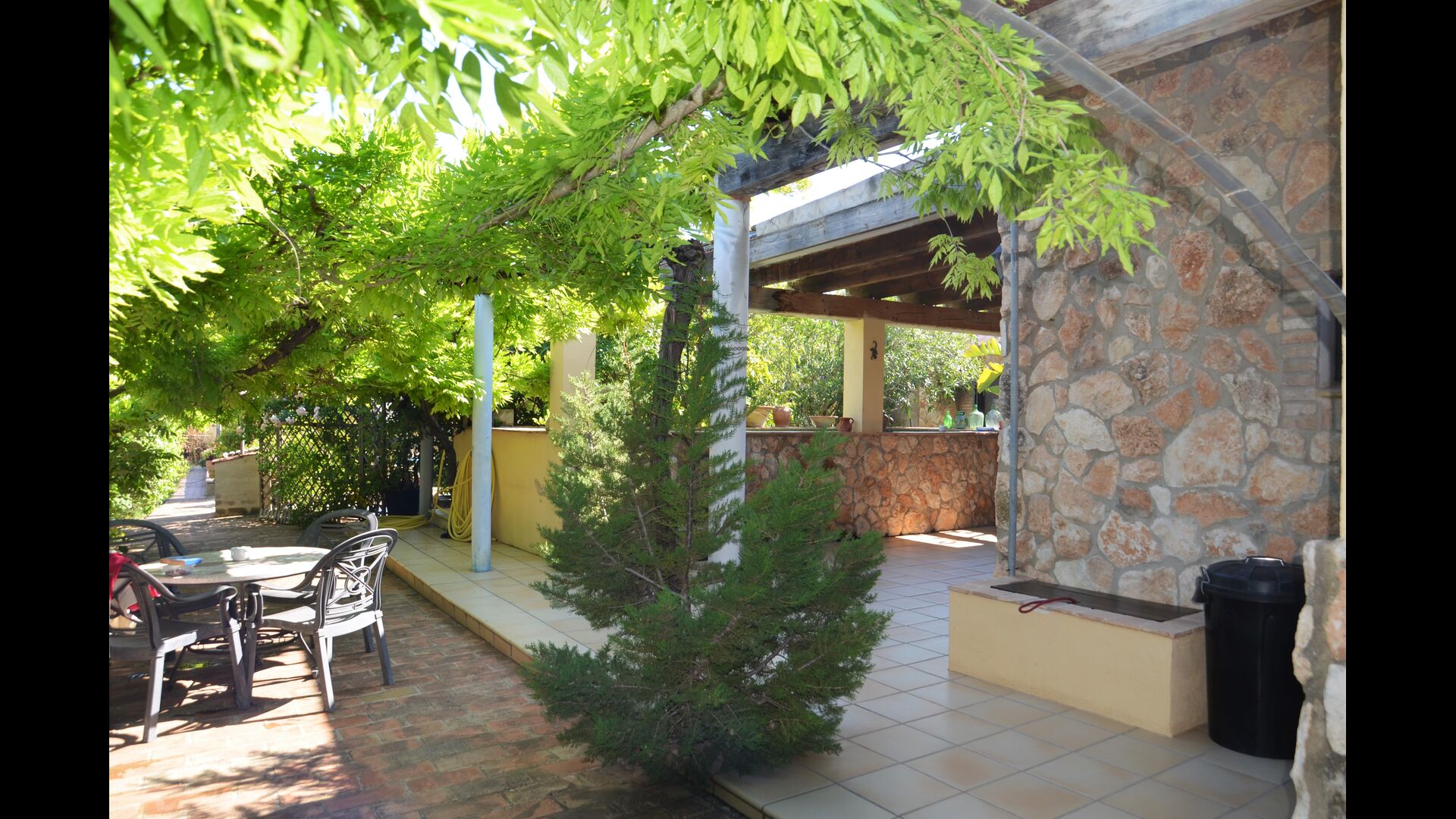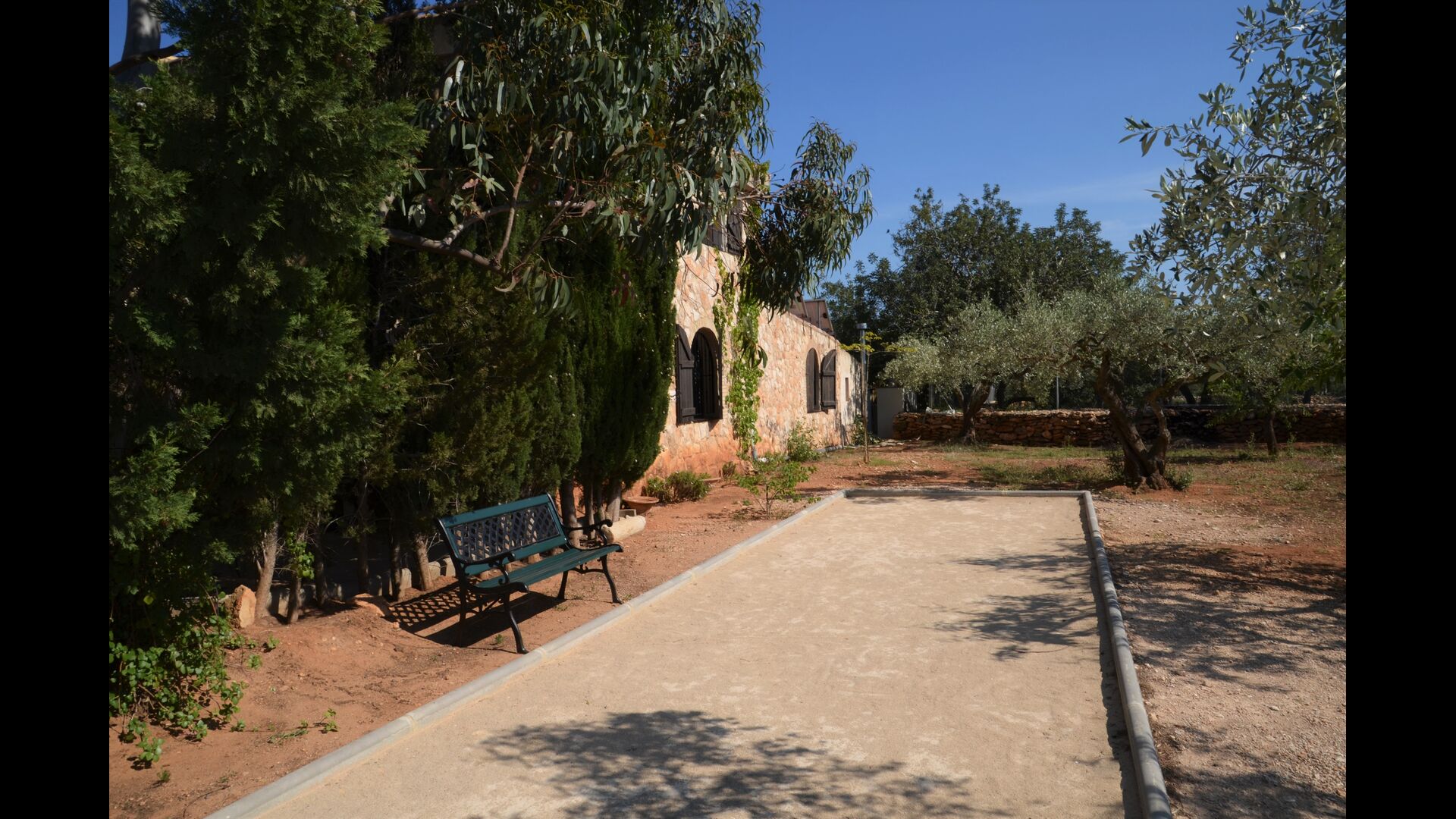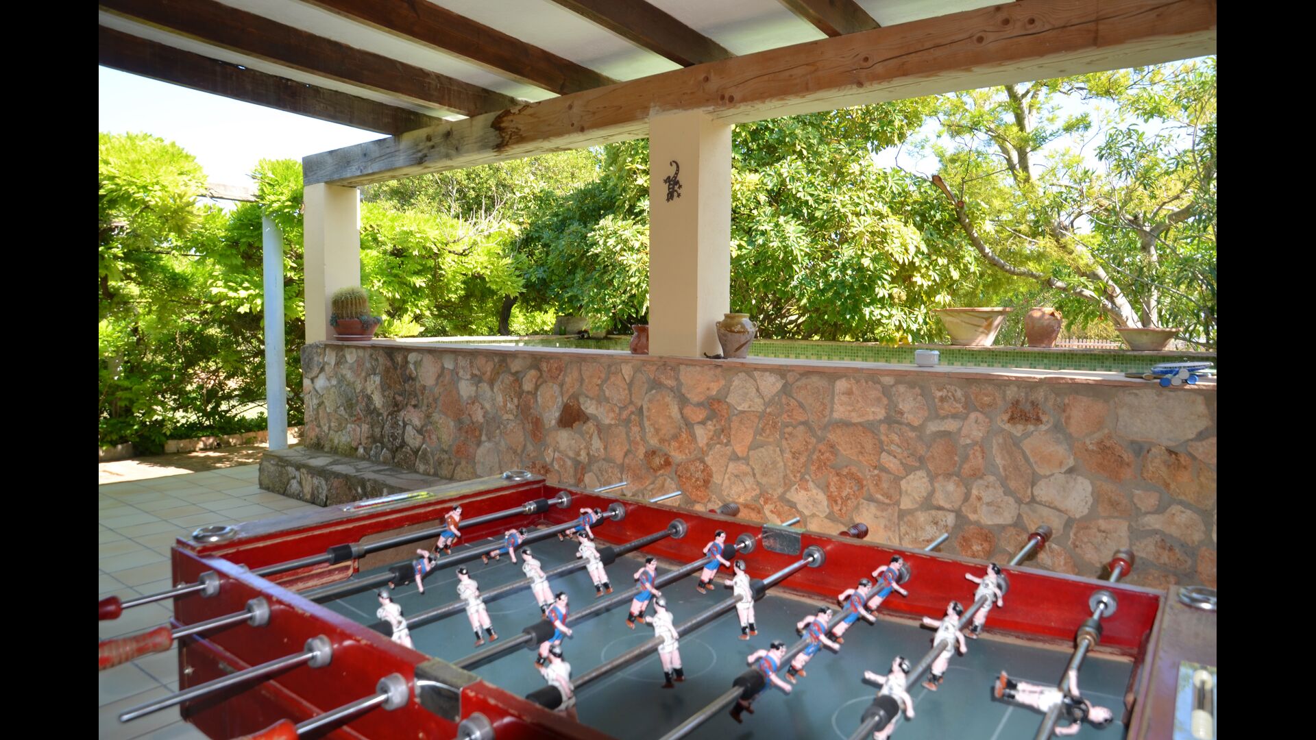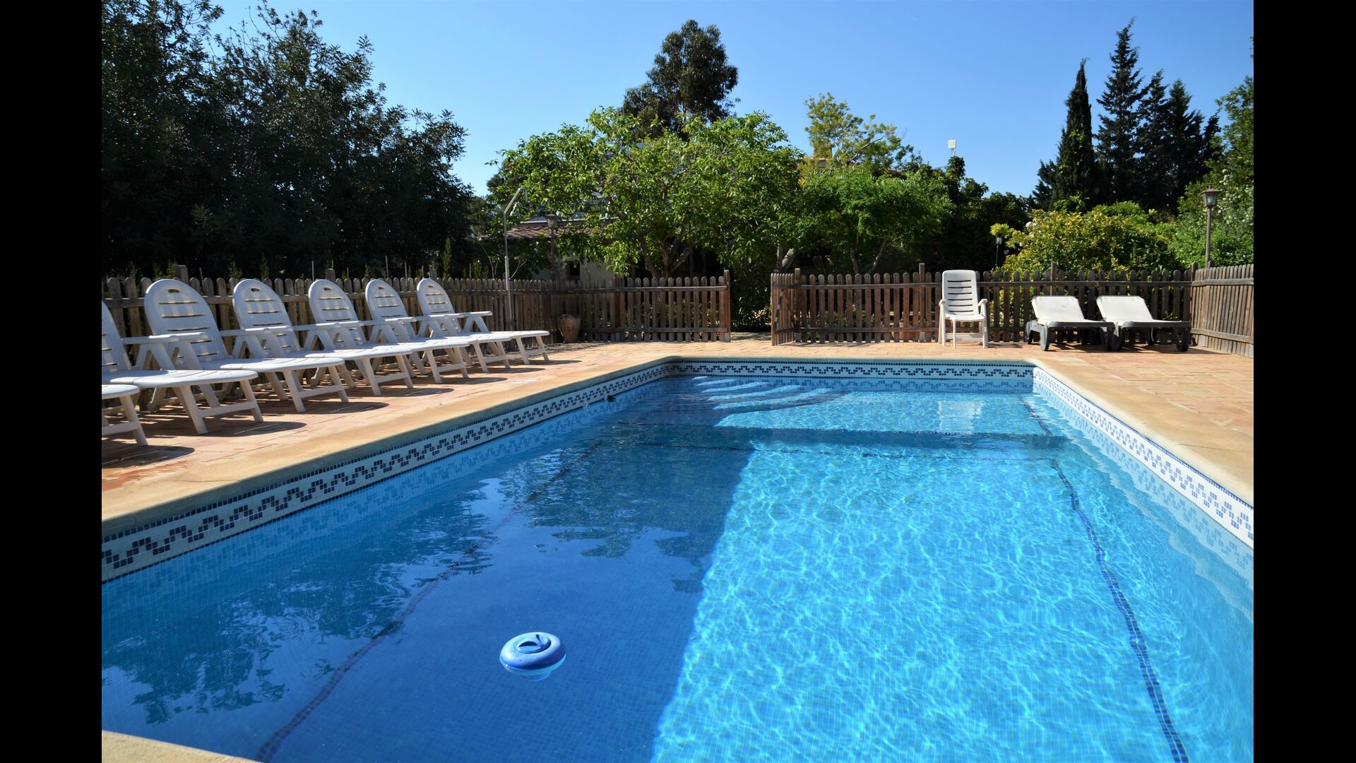 The outdoor area of Cal de Flaras is quite unique. The house has a fenced, 8x4 meter private swimming pool with a great pool area with sun loungers, parasols, showers, etc. There is furthermore a lot of other activities, including a large swing set, table tennis, table football, bicycles, as well as a badminton- and football field, which the house shares with the neighbouring holiday home. In addition, you will find some neat fruit trees as well as a terrace with dining table and BBQ grill in the large, beautiful garden. To put it short: You will probably not run out of things to do here.