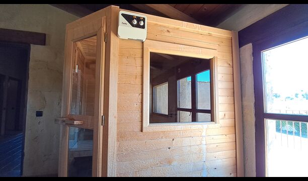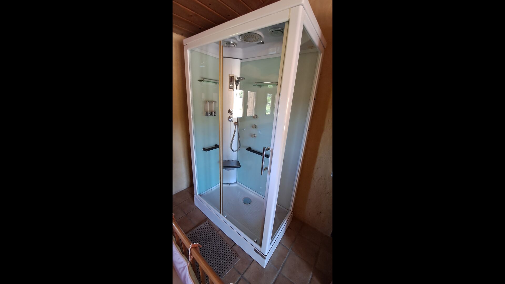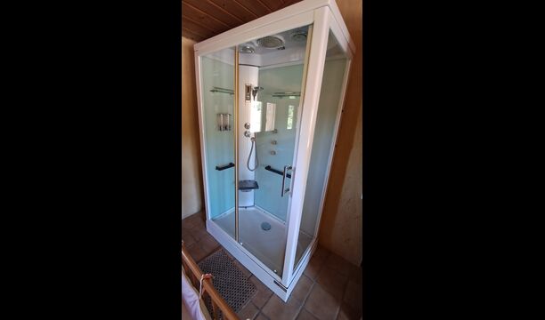The holiday home has a small spa area with massage shower, whirlpool and sauna. This is open against supplement.