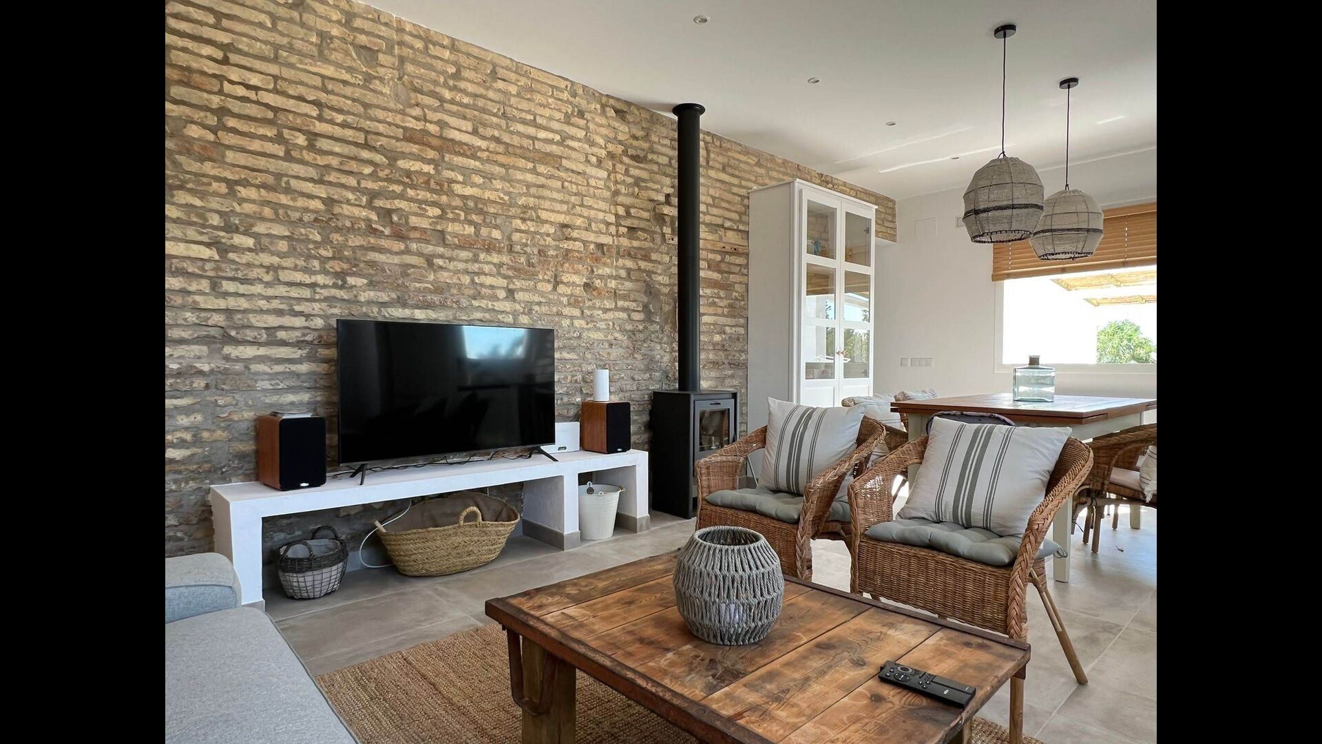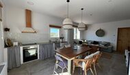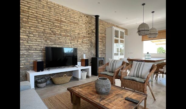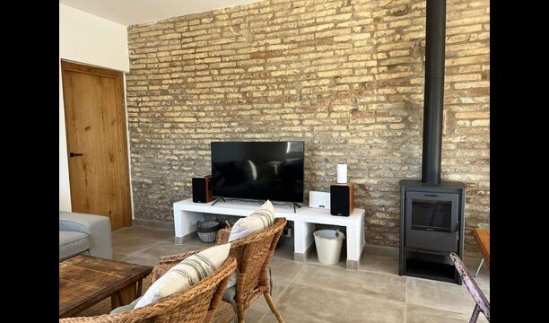 On the ground floor, you will find one of the two living rooms - bright, spacious and very cozy, the room also has an integrated kitchen with a wooden stove, and well-sized dinner table. The living room also an excellent sofa, a large sofa table, comfortable chairs, a flatscreen TV and two speakers, replicating a home-cinema effect. The kitchen comes with all utilities that are expected of a modern holiday home.