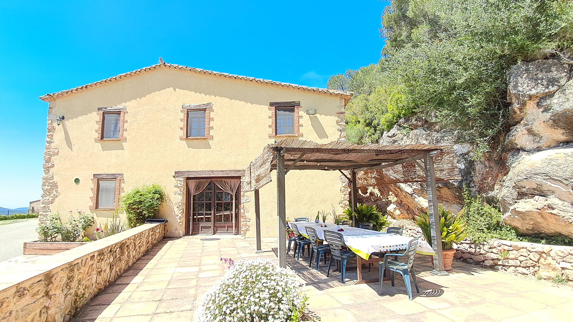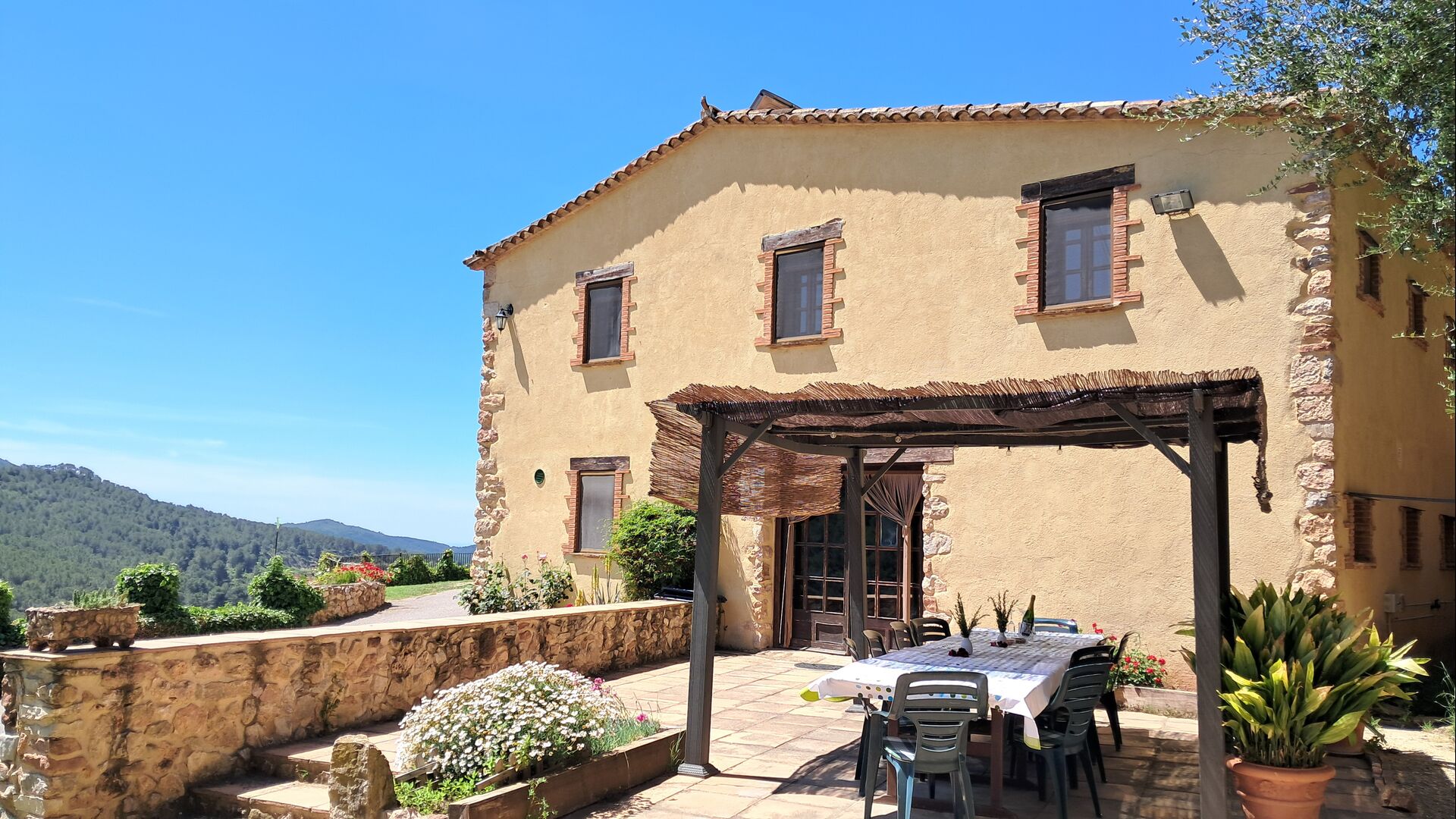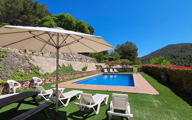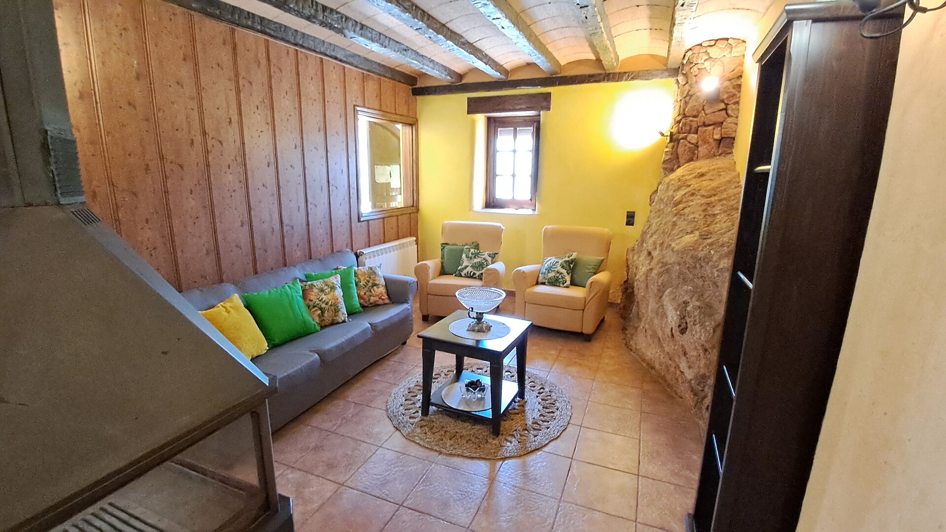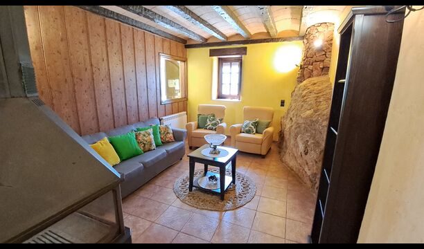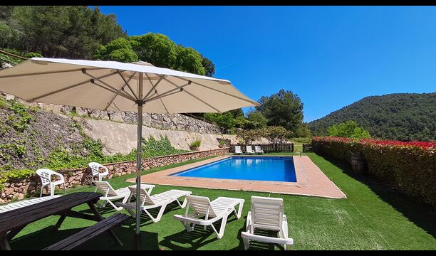 The house has been completely renovated and modernized to the smallest detail, respecting the original structure of the typical Catalan farmhouse. It has now a capacity of up to 11+2 persons. The house is perfectly structured, with the lower floor being a very spacious common room with an excellent modern kitchen, a dining area with dining table and a sofa area with TV, DVD and fireplace. On this floor there is one bedroom with a single bed and a bunk bed and one bathroom. There is also direct access to the terrace with barbecue in the garden, which is very convenient, when you want to dine outside in the warm Catalan summers.