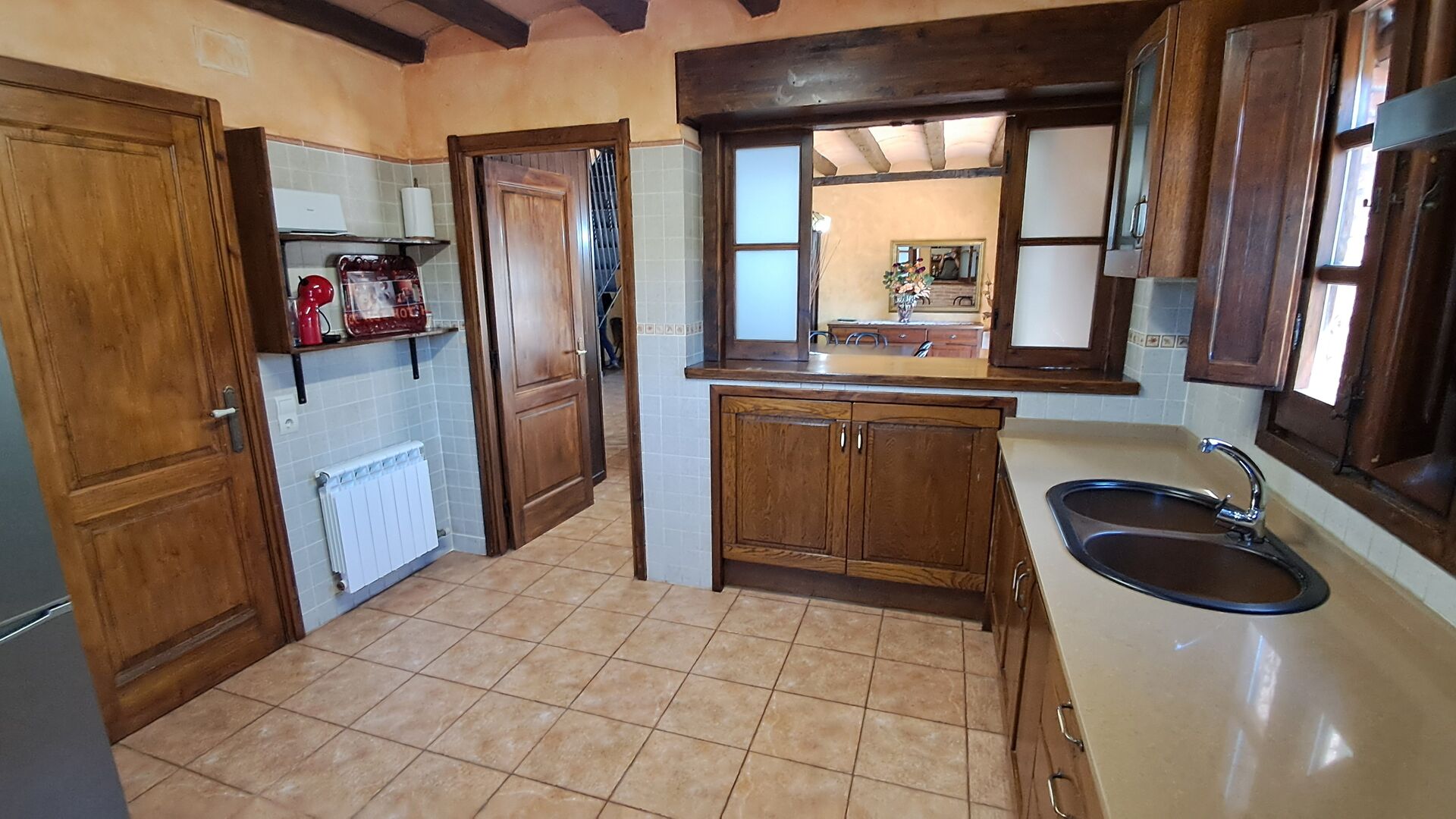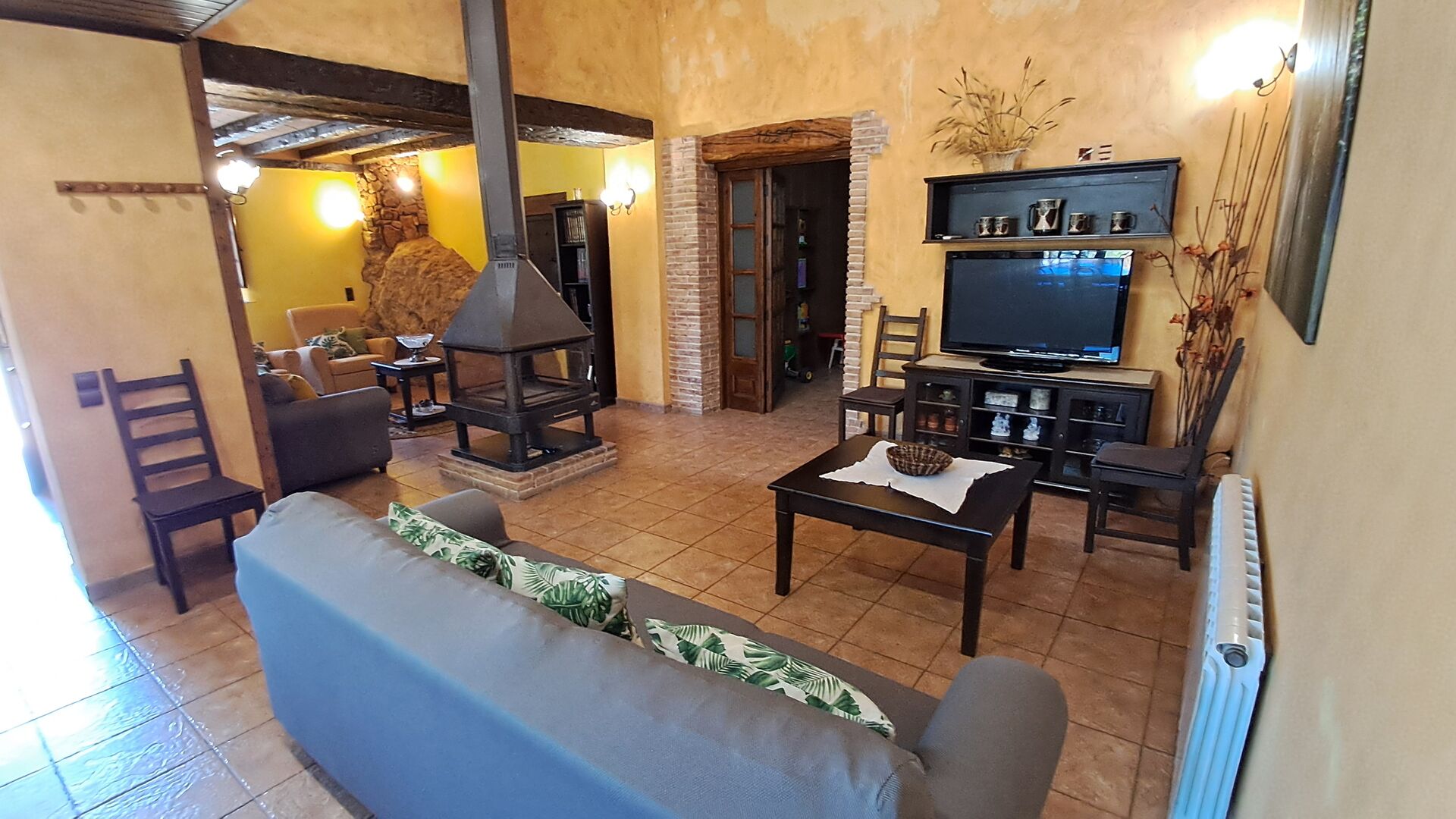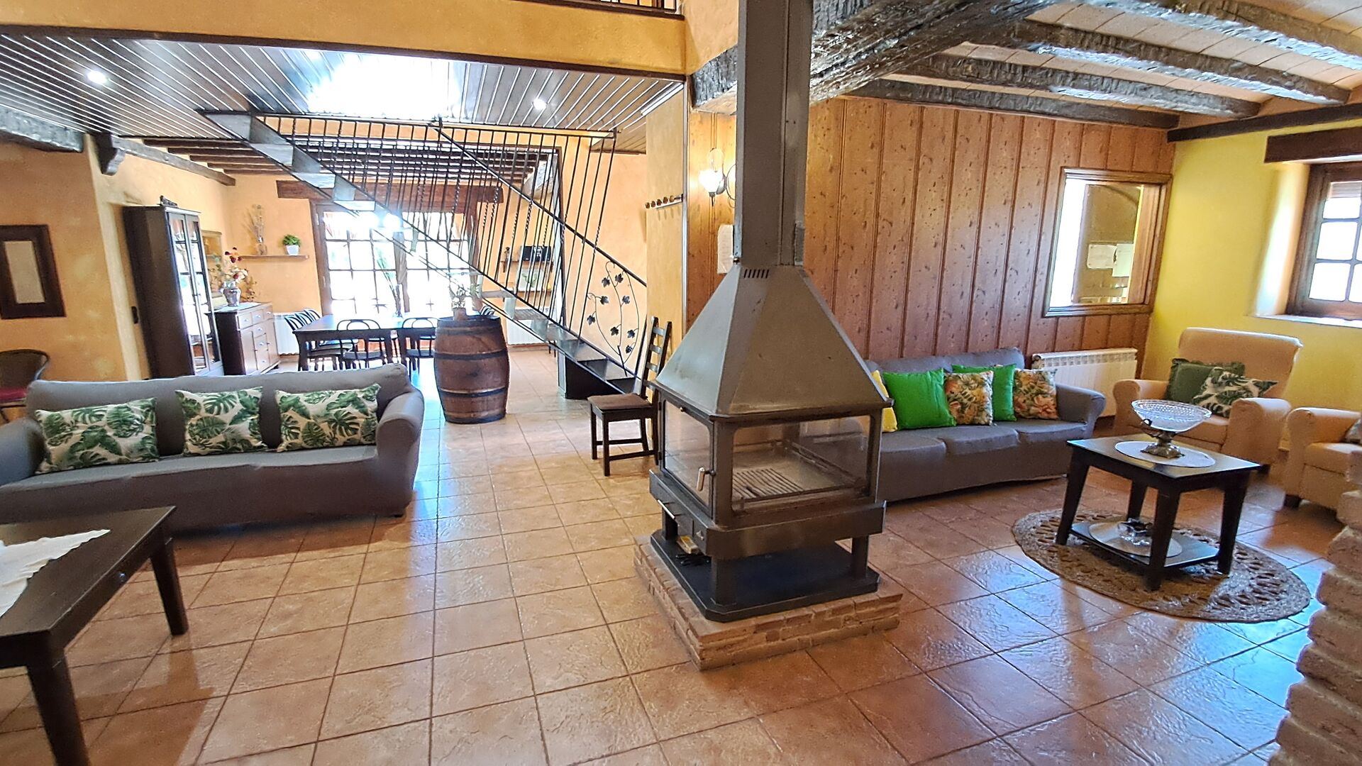 The house has been completely renovated and modernized to the smallest detail, respecting the original structure of the typical Catalan farmhouse. It has now a capacity of up to 11+2 persons. The house is perfectly structured, with the lower floor being a very spacious common room with an excellent modern kitchen, a dining area with dining table and a sofa area with TV, DVD and fireplace. On this floor there is one bedroom with a single bed and a bunk bed and one bathroom. There is also direct access to the terrace with barbecue in the garden, which is very convenient, when you want to dine outside in the warm Catalan summers.