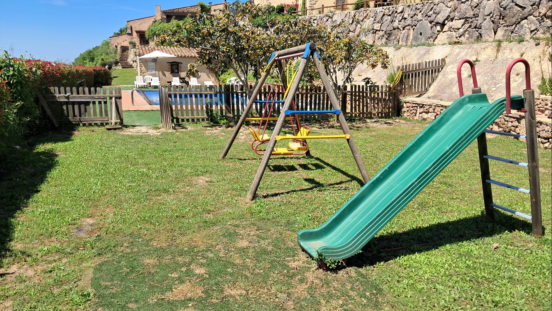 The children with love the place with its many activities, for instance table football and the swimming pool of course. As the total property covers 6000m2, there is plenty of space to play, and if they feel like it, they can visit the animals on the owners’ farm 1 km. away.