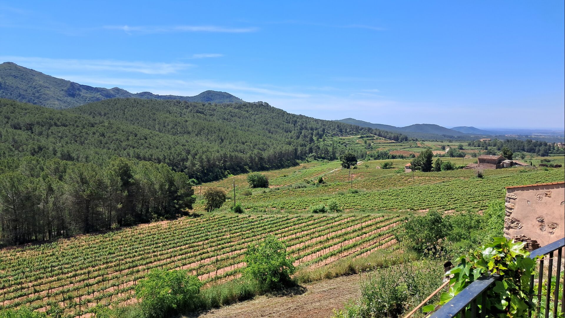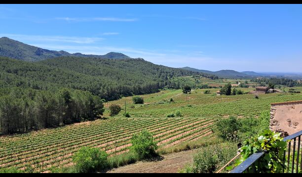 After some kilometres on the quiet road through the Tuscany-style landscape with vineyards as far as the eye can see, Can Puignoll emerges on a small hill top down a side road.