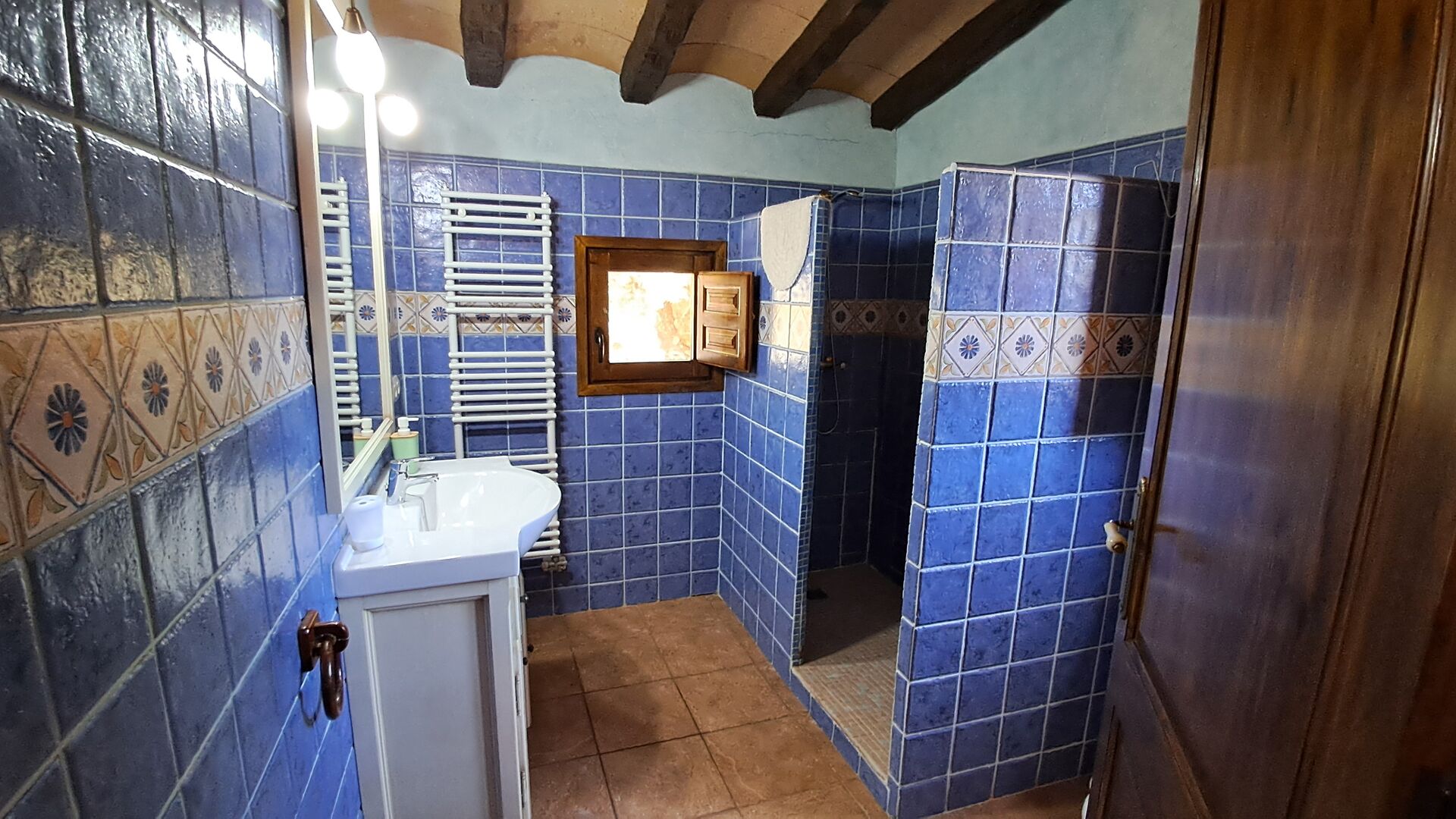 Upstairs, you find the four remaining bedrooms, all of a very high standard and with bathrooms ensuite. Three of the double bedrooms have double beds and the fourth room has two single beds. Two extra beds are possible against supplement.
