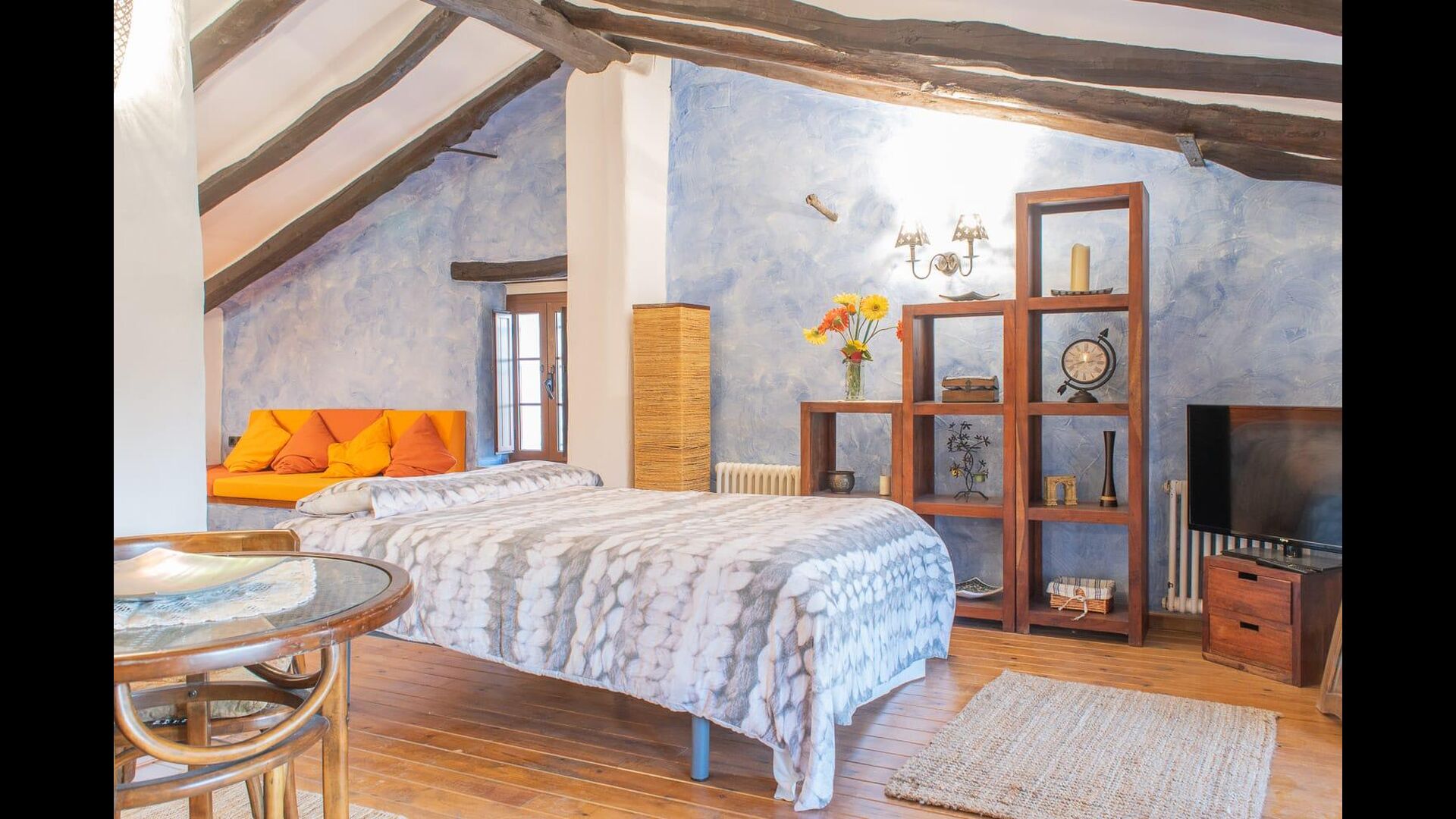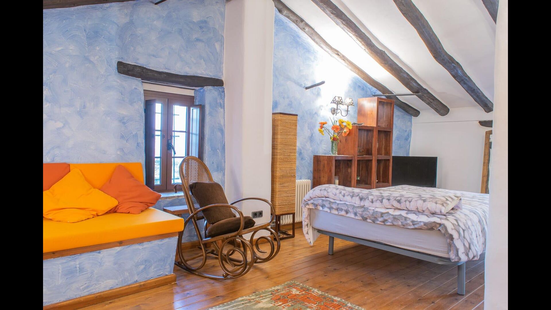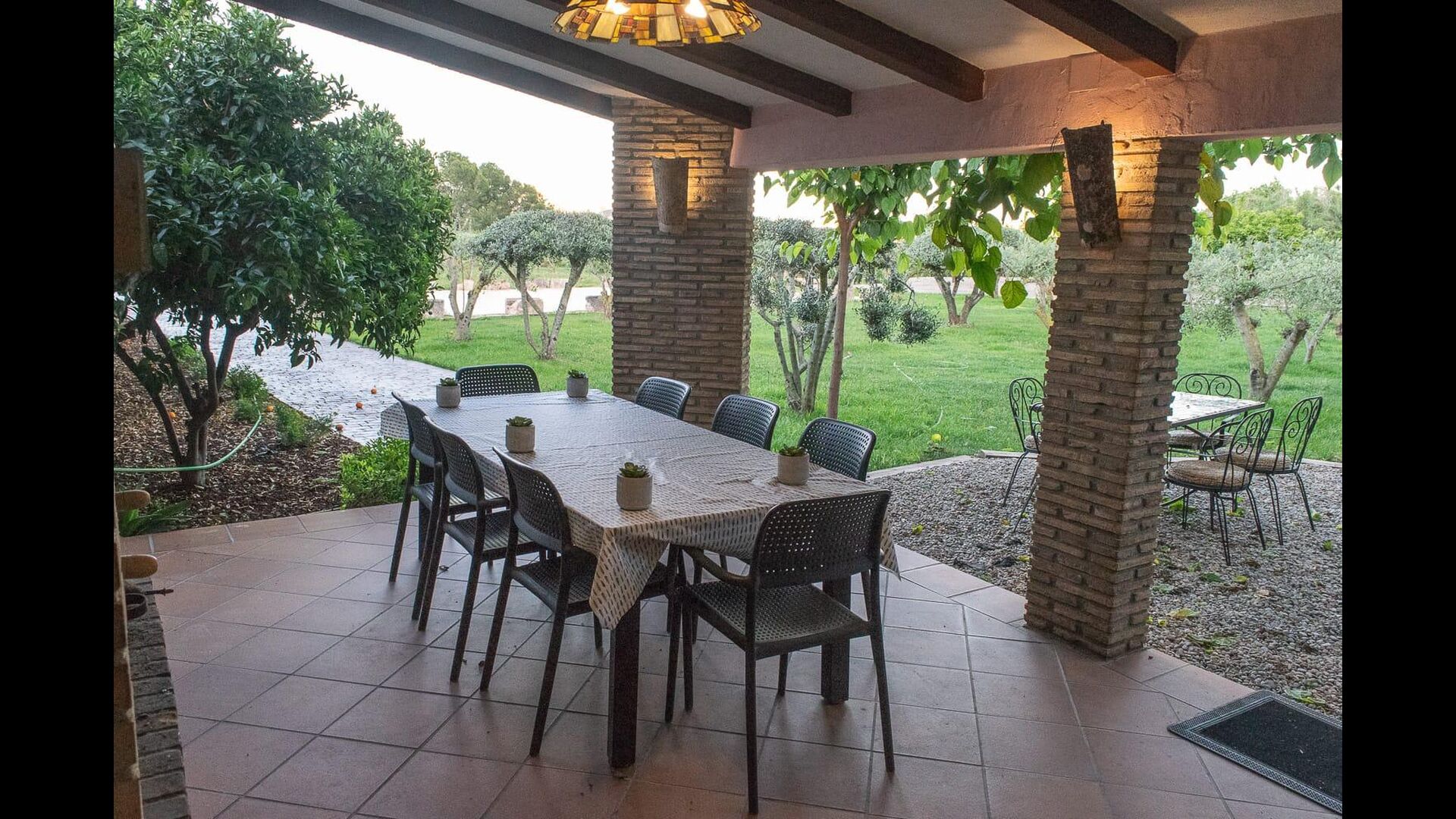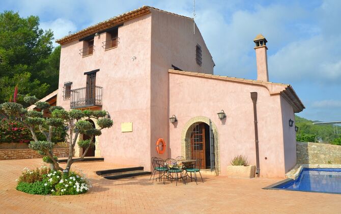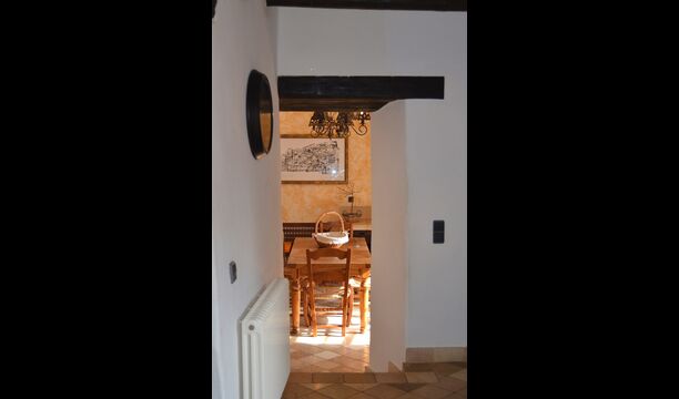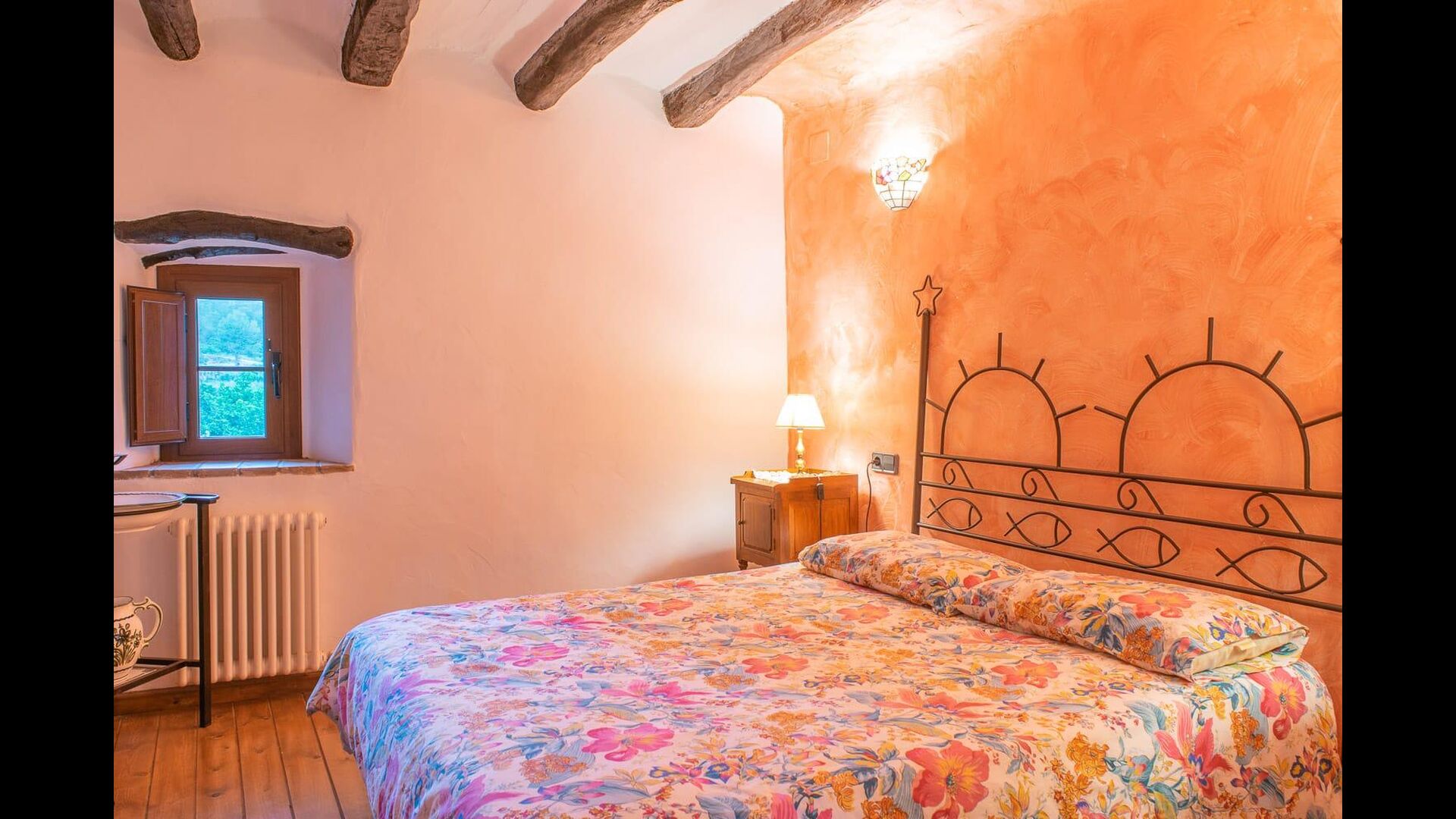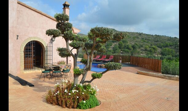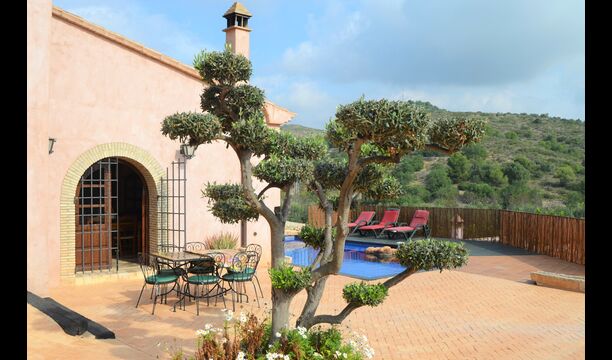 The holiday home is authentically constructed with a typical rural structure and several levels. On the ground floor you will find the well equipped kitchen along with two dining areas, one which also has a cozy corner with sofas and a TV. There is also a bathroom on the ground floor. The ground floor is connected with direct entrance to the outdoor terrace and pool area. Outside you will also find a great BBQ area where a gas grill has been installed. Here you can for instance cook a delicious paella and other delicious spanish dishes.