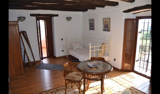 The bedrooms are located on the first and second floor. A middle room is equipped with a bed and can function as a single room if necessary. From here there is also access to a very nice terrace with a wonderful view of the Mediterranean in the distance. There are also two spacious double rooms on this floor, one of which has a double bed, while the other is equipped with two single beds.