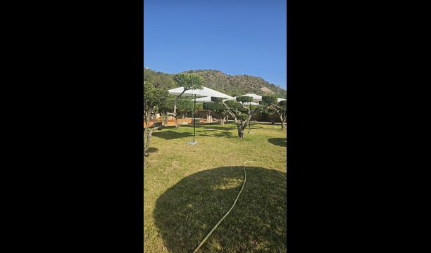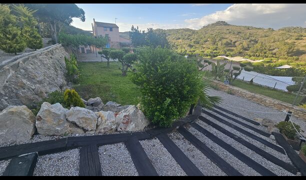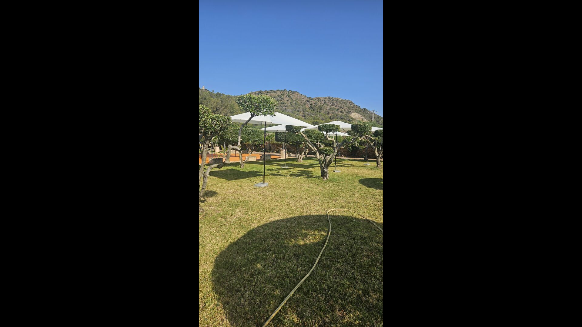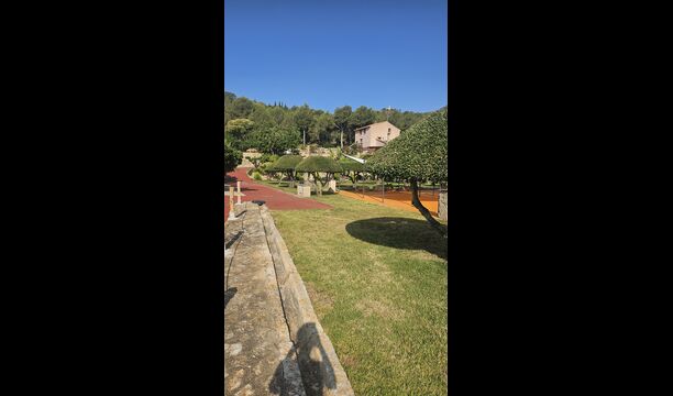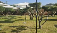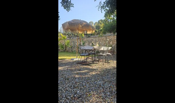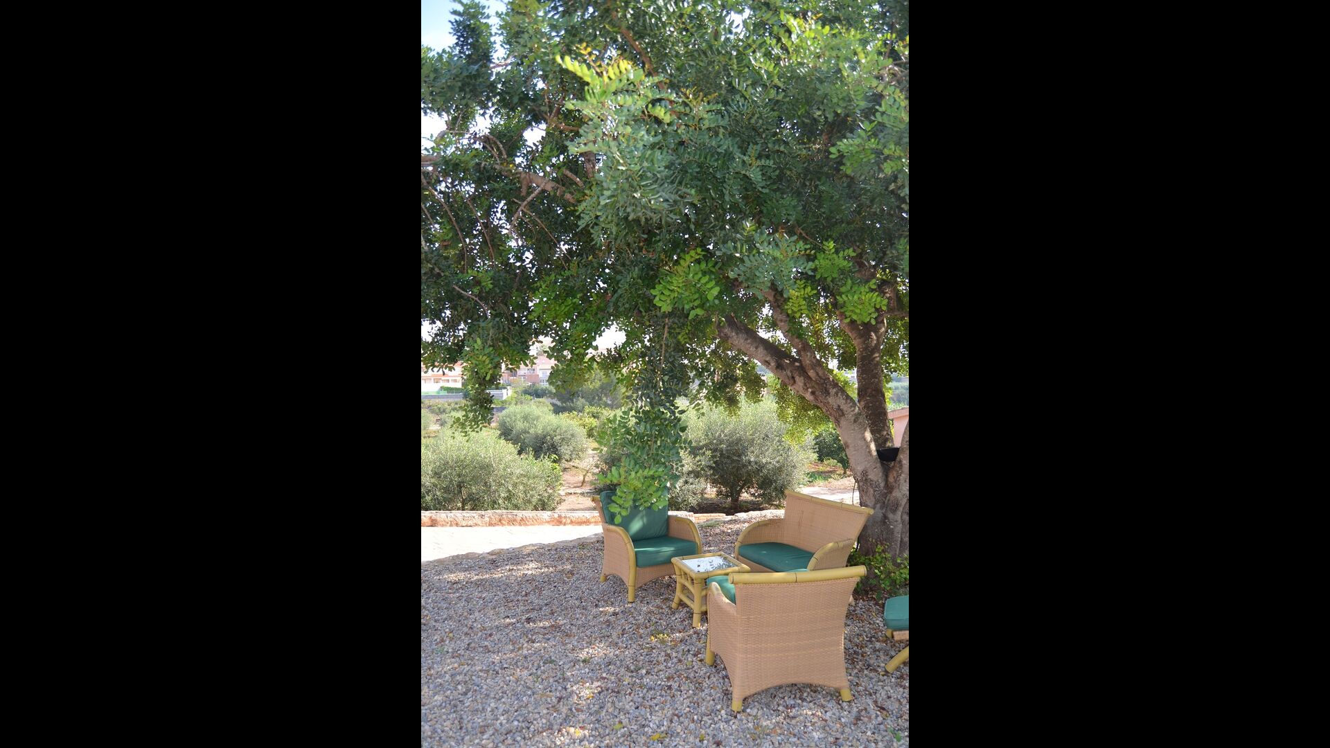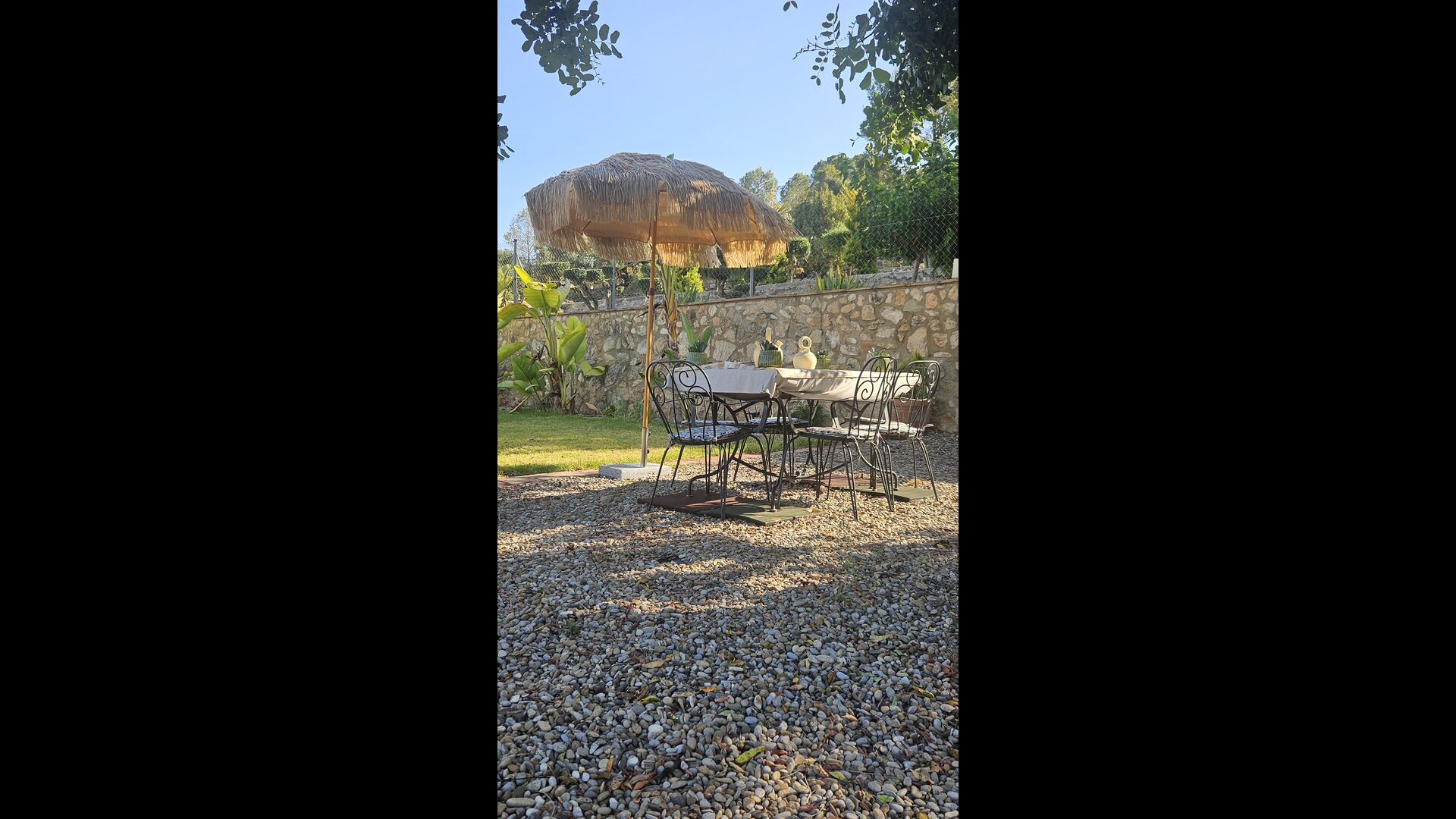 The house has a huge plot, and on a level below the house, pool and terrace you will find an additional terrace, nicely shaded and with an outdoor kitchen! In addition, there is the extra bathroom here. There is a view of the former olive grove, which has now been transformed into the most beautiful grove with orange trees and other fruit trees, which you can use as much as you like. The owner Tona has transformed it into a romantic setting for weddings, typically in the spring and after (and of course not when there are guests in the house :-) ) It is maintained by a local gardener a few times a week, and he also makes sure, that the pool is cleaned so that you can always swim. The grove has also attracted a few of the village's cuddly cats, who come by and bask in the sun, a hit with the children.